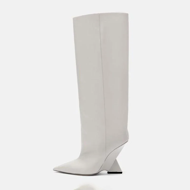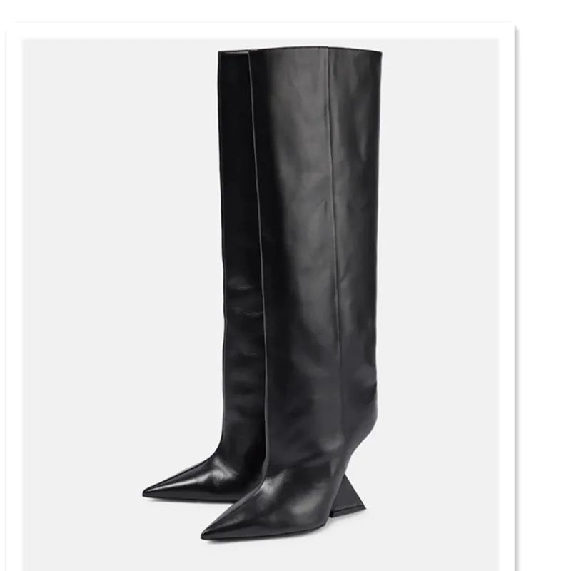 2024 Stivali alti al ginocchio delle nuove donne Moda Punta a punta Tacchi alti Stivali lunghi marroni Scarpe da donna con tacco eteromorfico