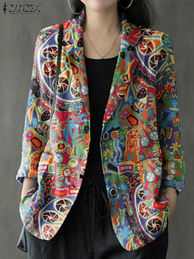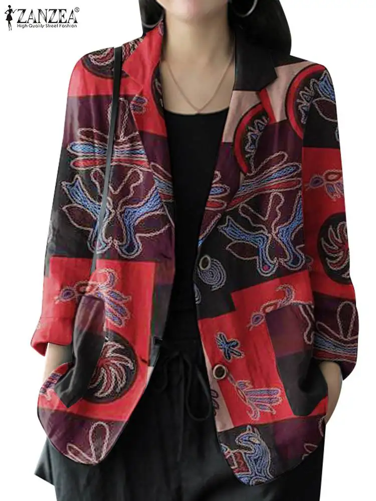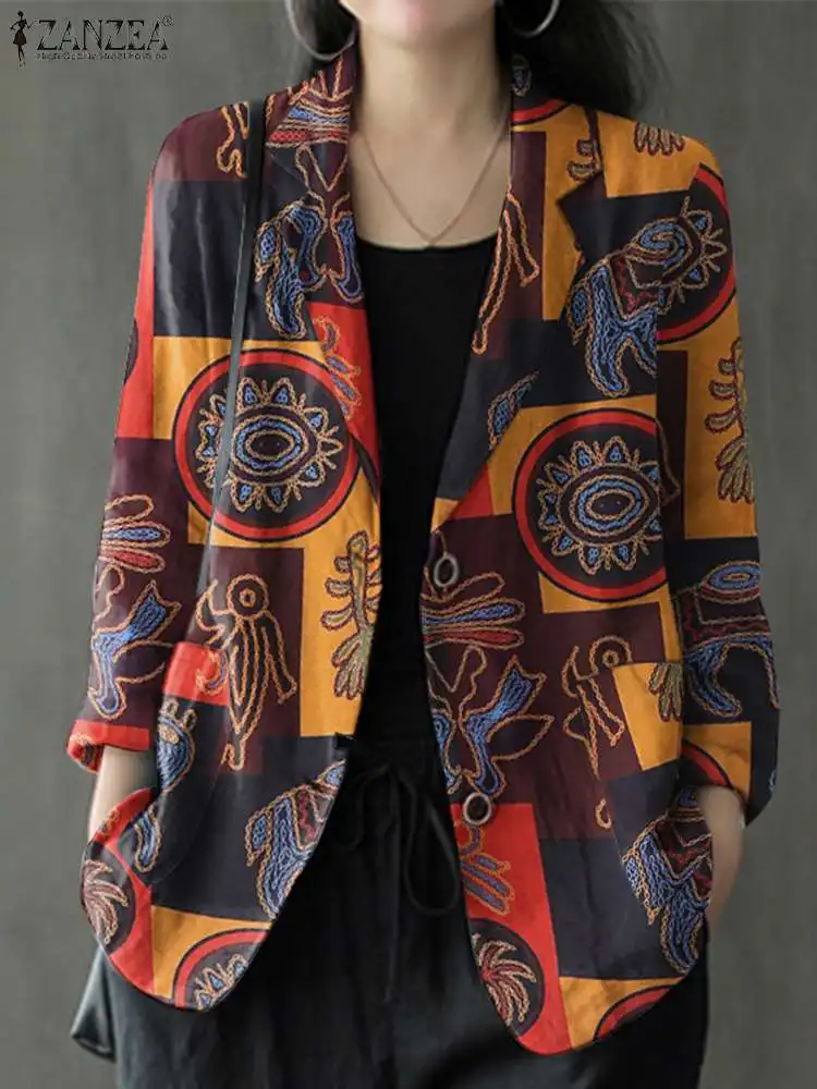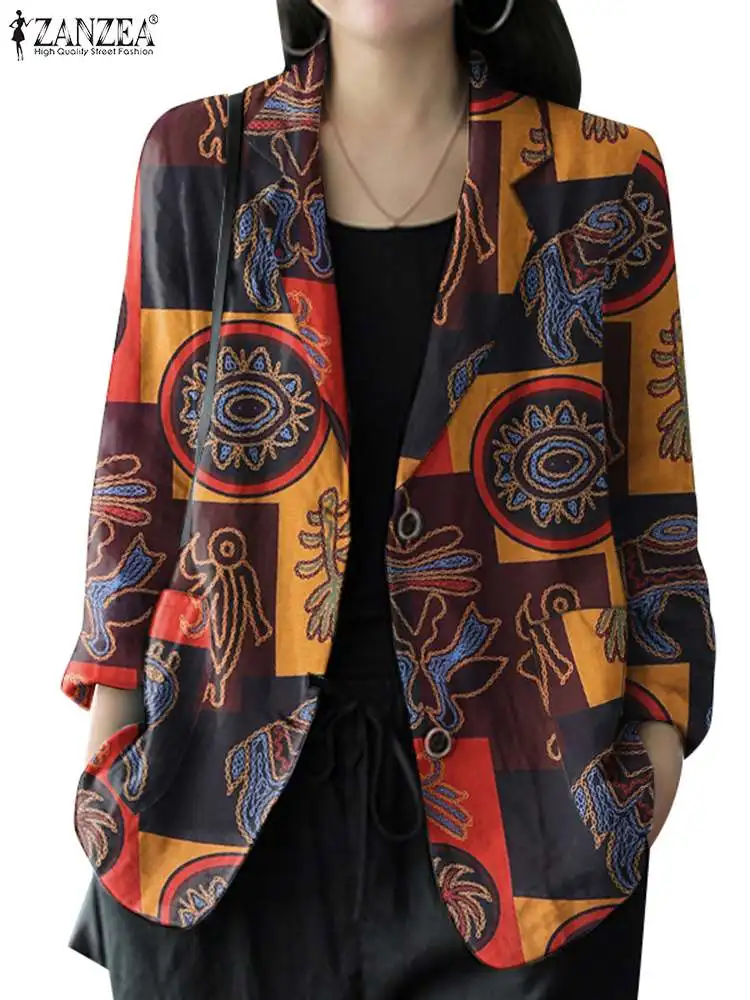 2024 ZANZEA autunno Vintage manica lunga cappotti stampati femminile top sottili donna Blazer primavera estate camicia di cotone capispalla Casual 12024 ZANZEA autunno Vintage manica lunga cappotti stampati femminile top sottili donna Blazer primavera estate camicia di cotone capispalla Casual