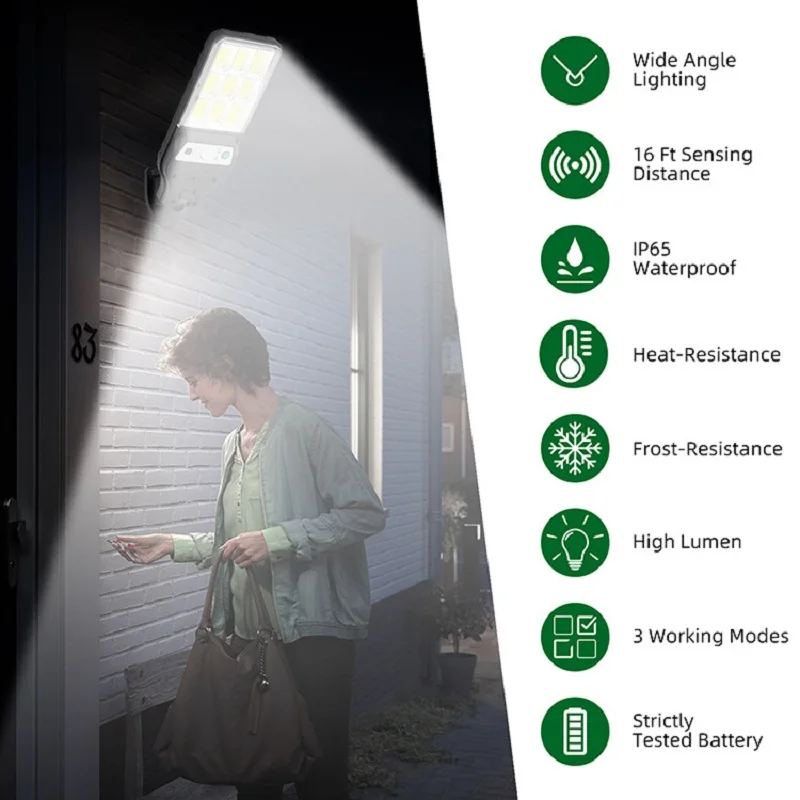 –La luce solare ha tre modalità.Accendi la luce con il telecomando.Modalità stampa tre trasformano il sensore di movimento e mantiene la luminosità negli ambienti scuri.