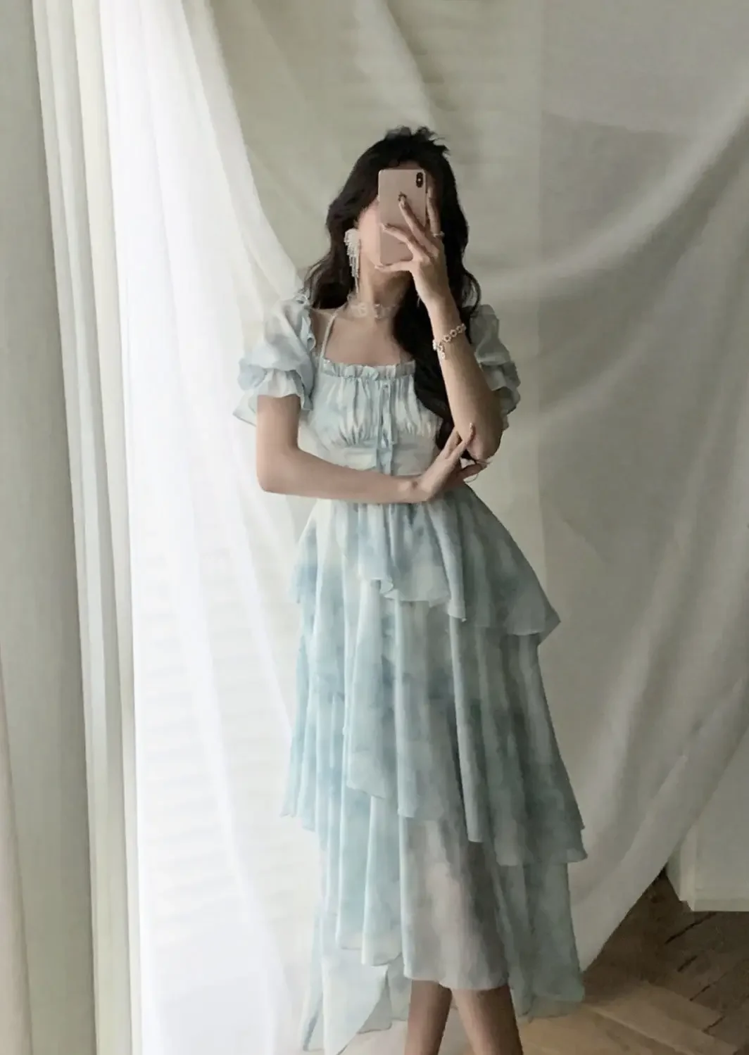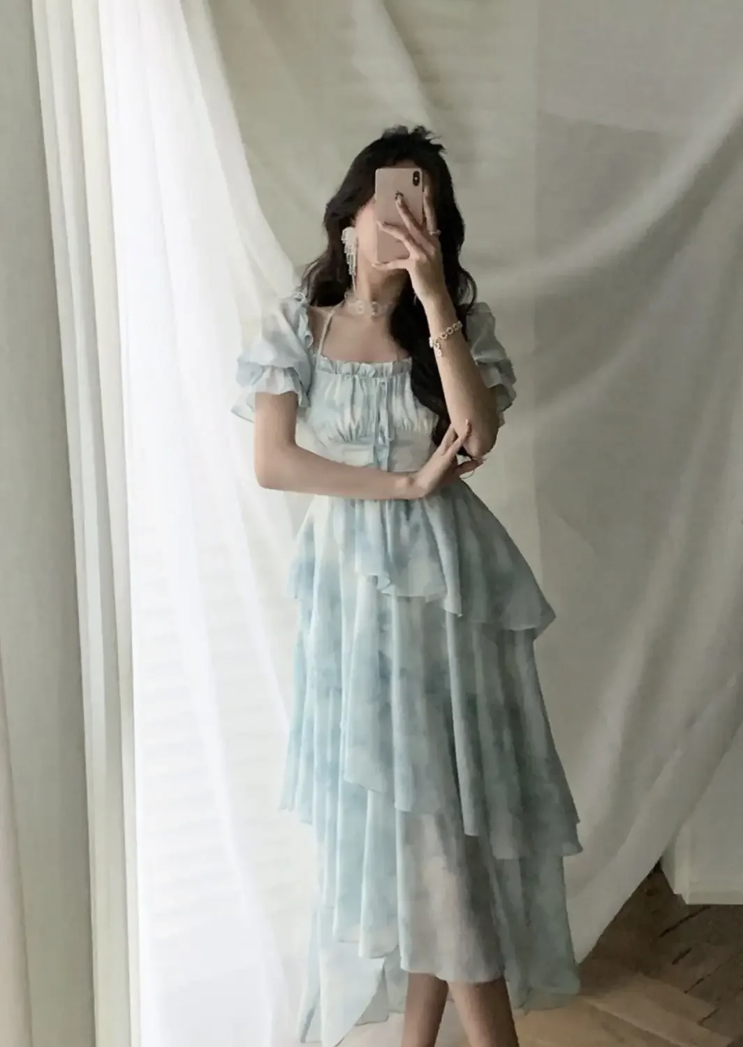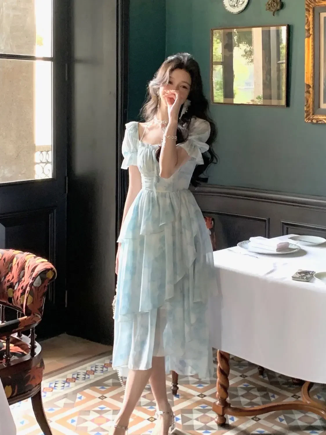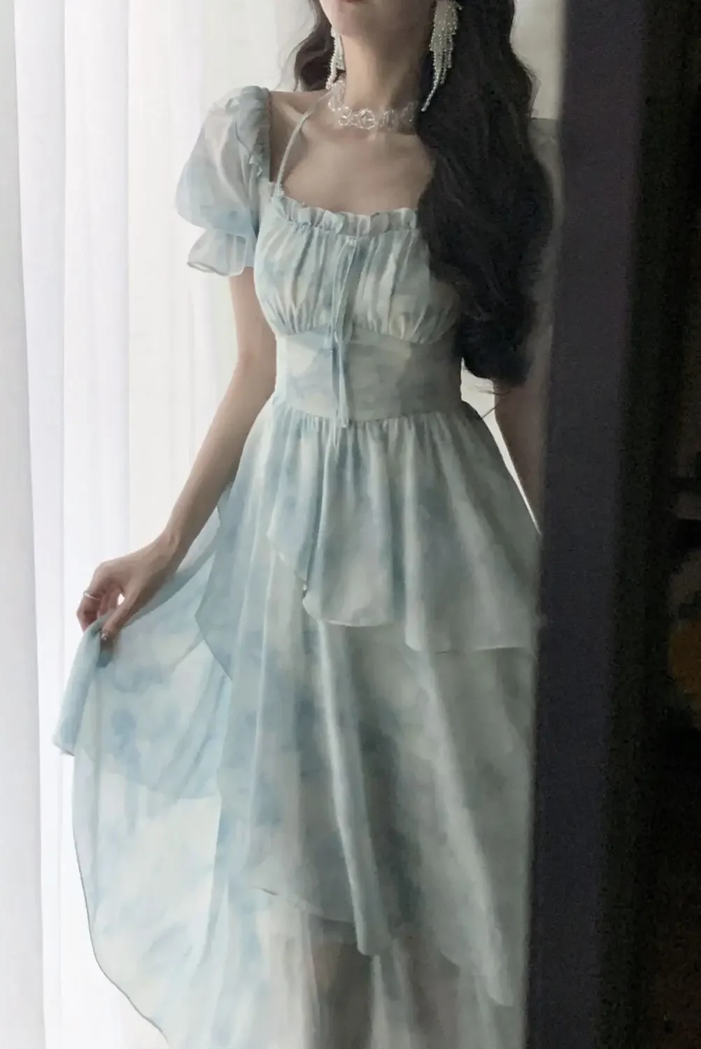 2025 Abito floreale sottile in chiffon irregolare estivo nuovo stile