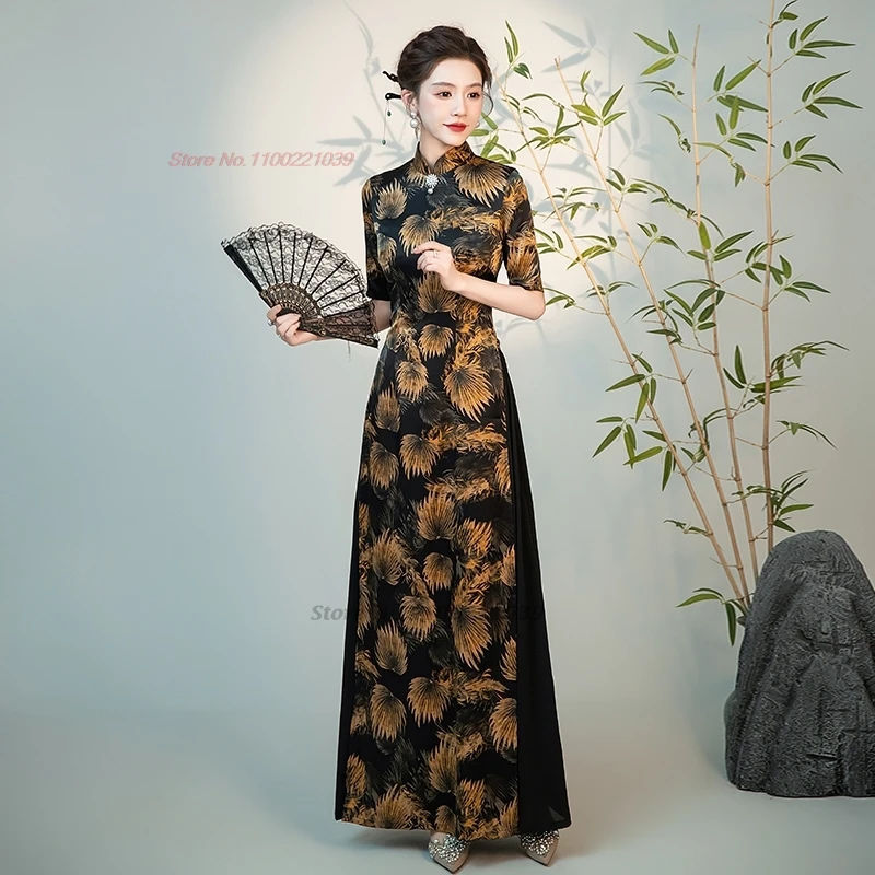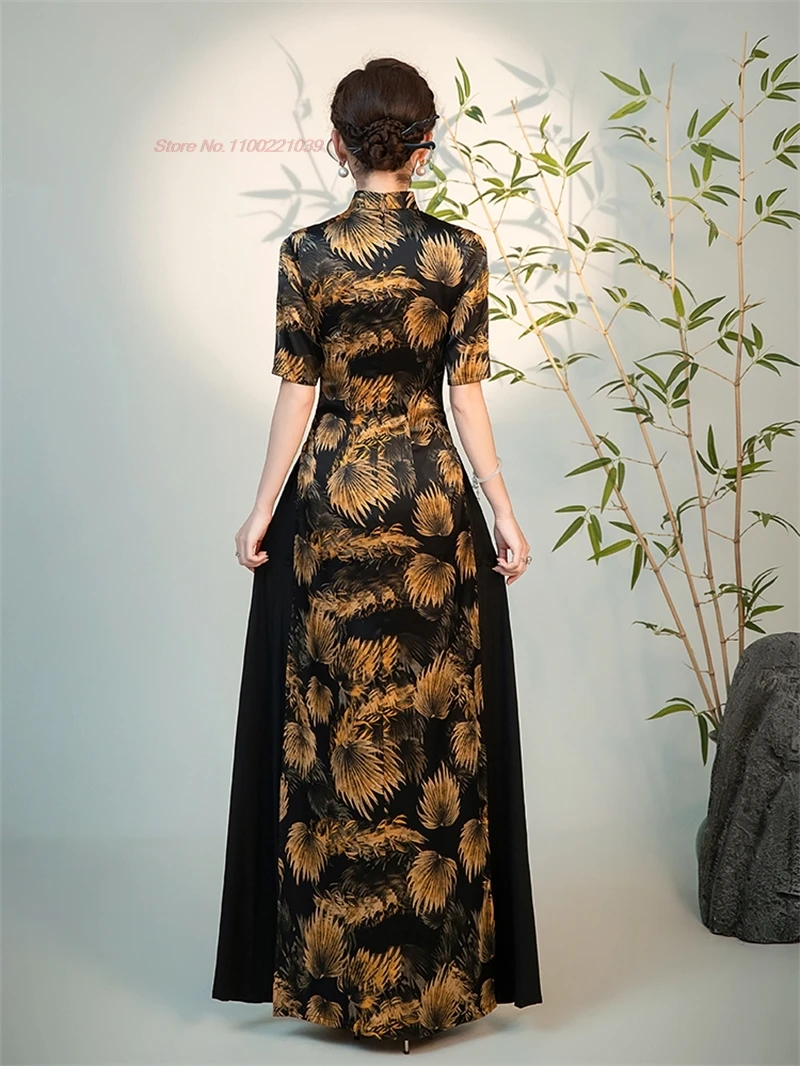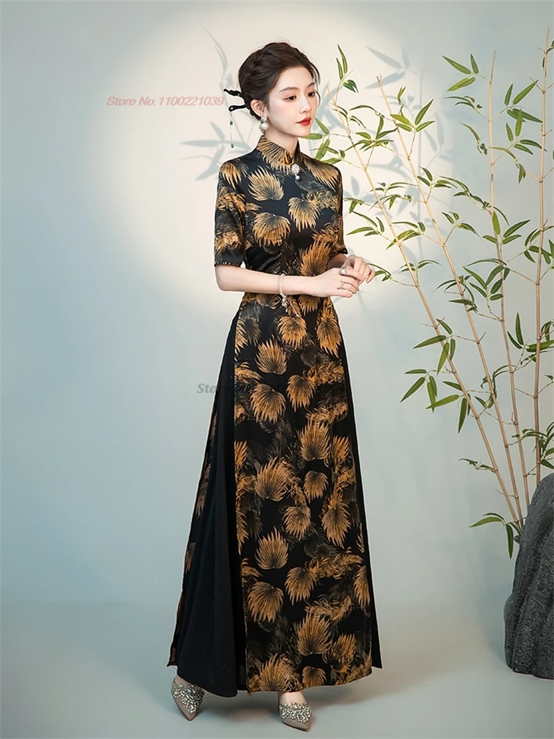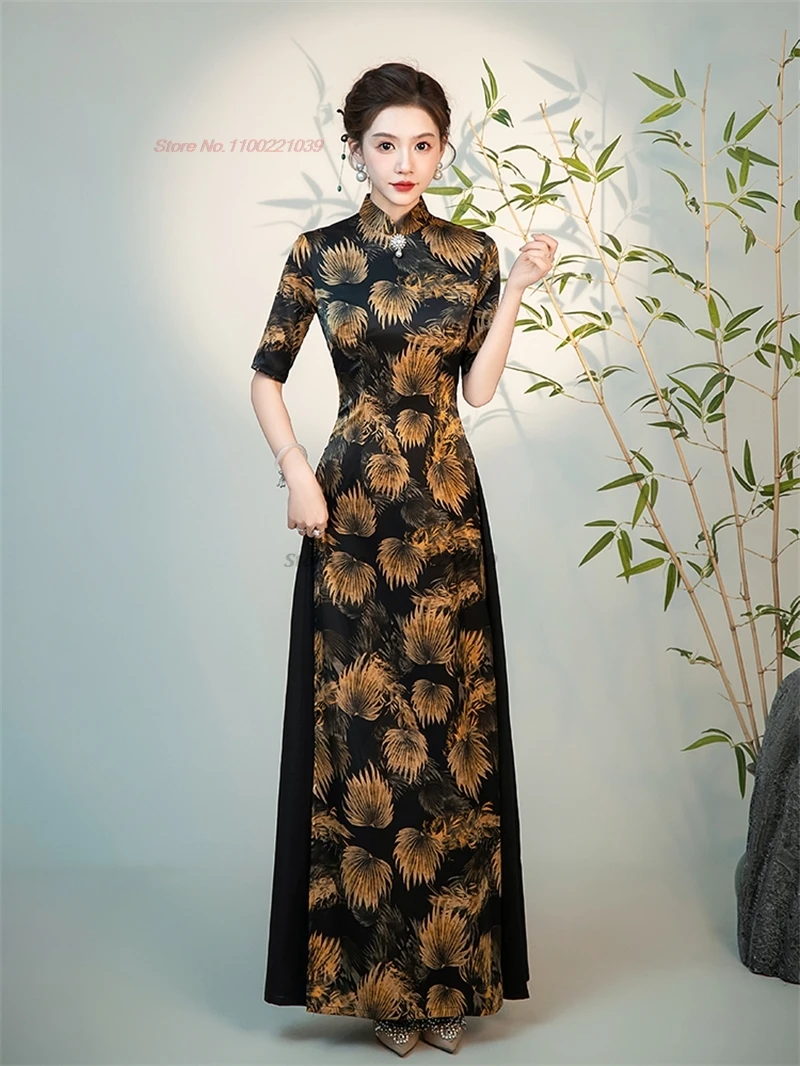2025 abito tradizionale vietnam aodai cinese vintage qipao stampa floreale nazionale migliorato cheongsam orientale folk abito a-line