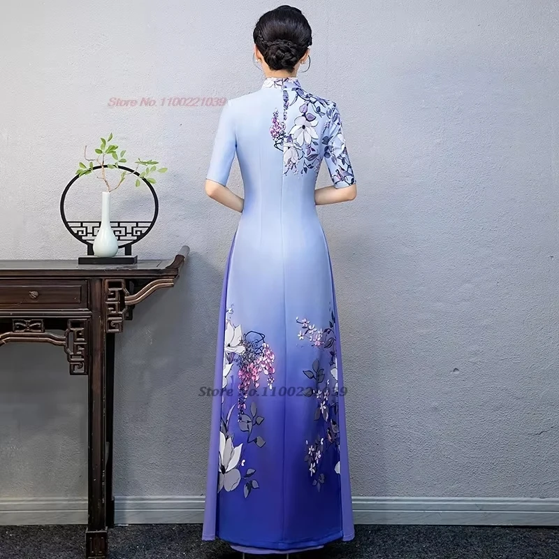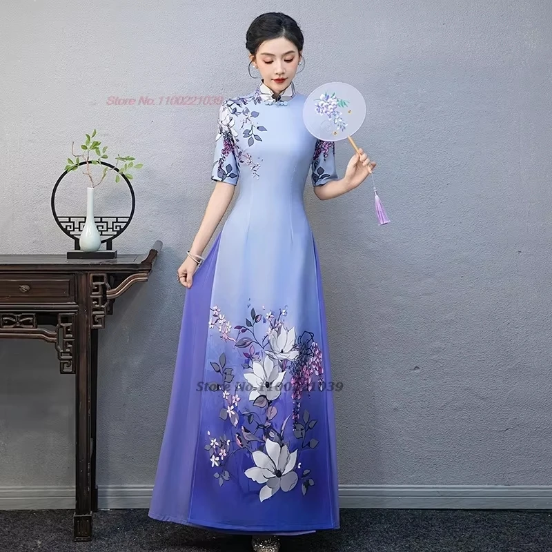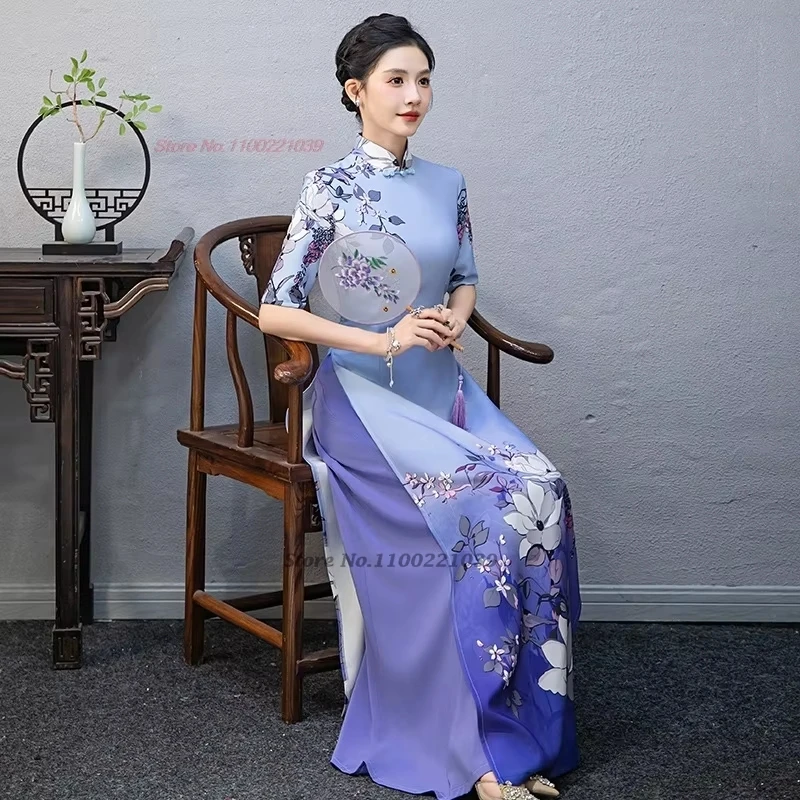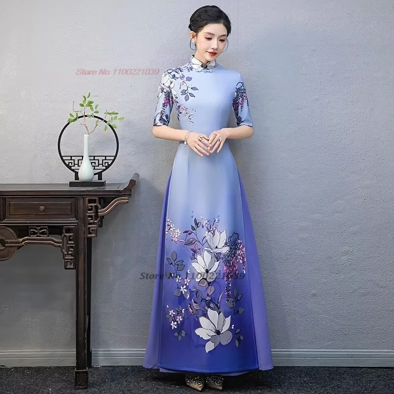 2025 abito tradizionale vietnamico ao dai stampa floreale nazionale migliorato cheongsam palcoscenico orientale qipao festa banchetto abito da sera 12025 abito tradizionale vietnamico ao dai stampa floreale nazionale migliorato cheongsam palcoscenico orientale qipao festa banchetto abito da sera