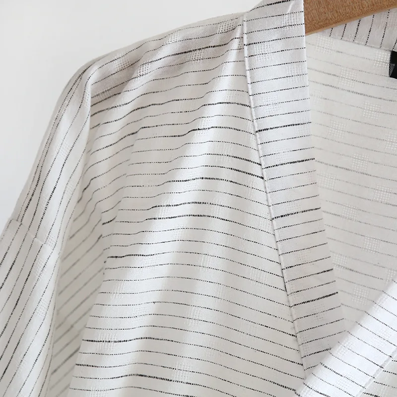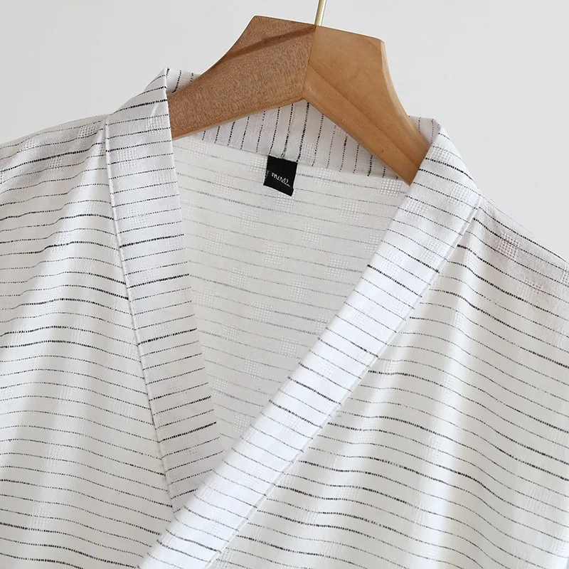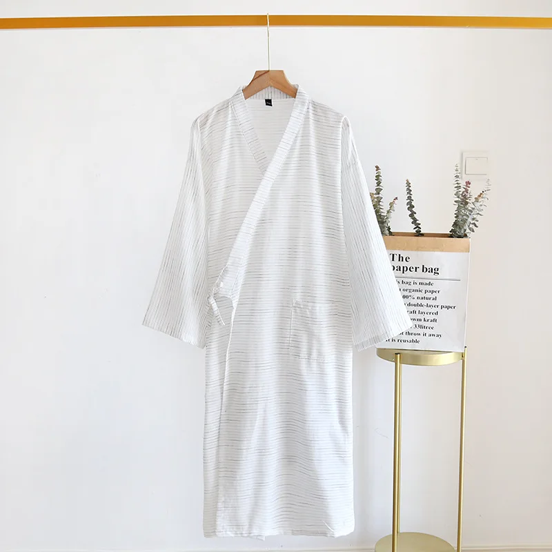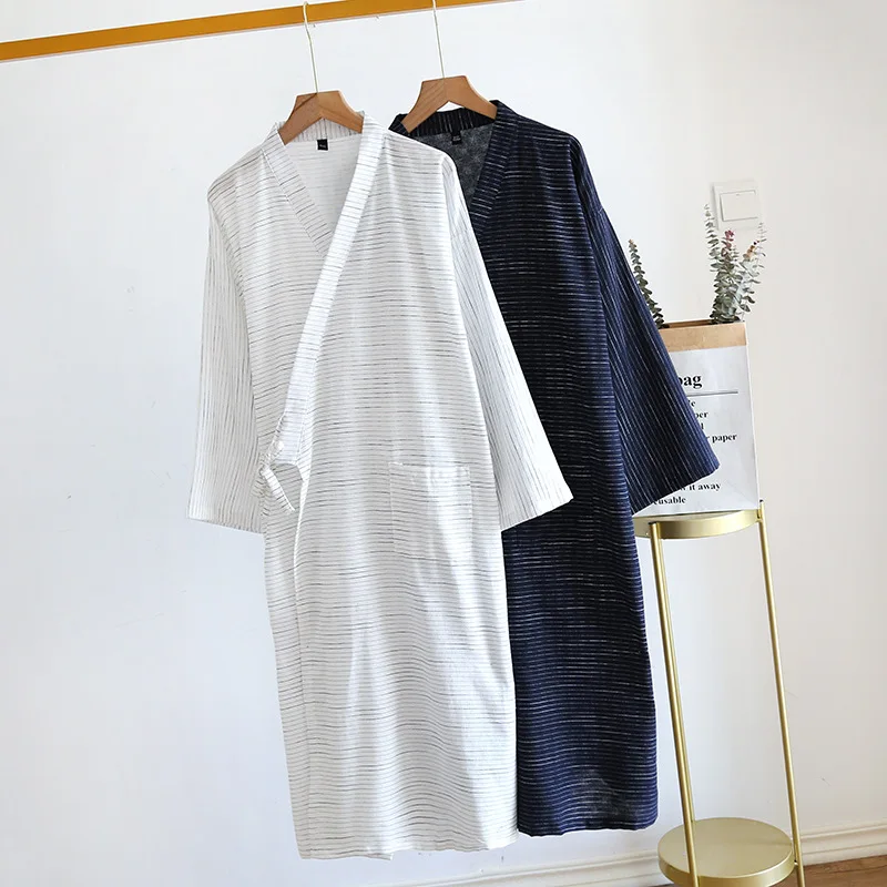 1 recensione per 2025 Accappatoio da uomo stile lungo in tessuto di cotone Primavera Estate Accappatoio da uomo a righe Sudore fumante Indossare accappatoi da casa per uomo Abito