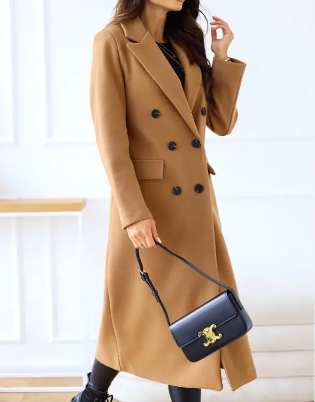 2025 Autunno e Inverno Cappotto di lana doppiopetto da donna alla moda ed elegante per pendolarismo Пegoьто Жletiе