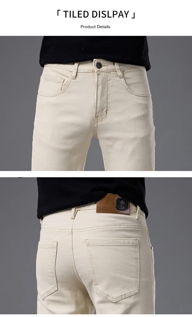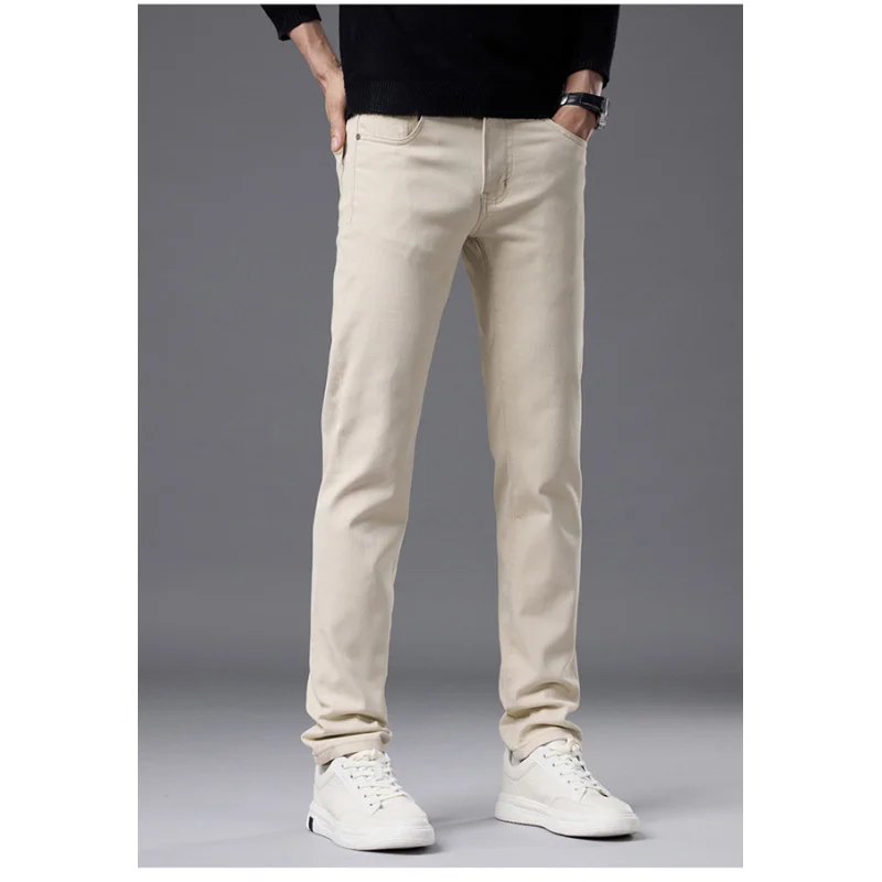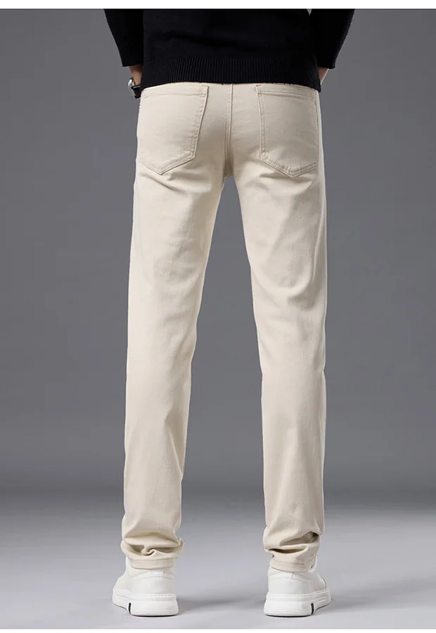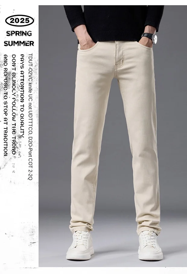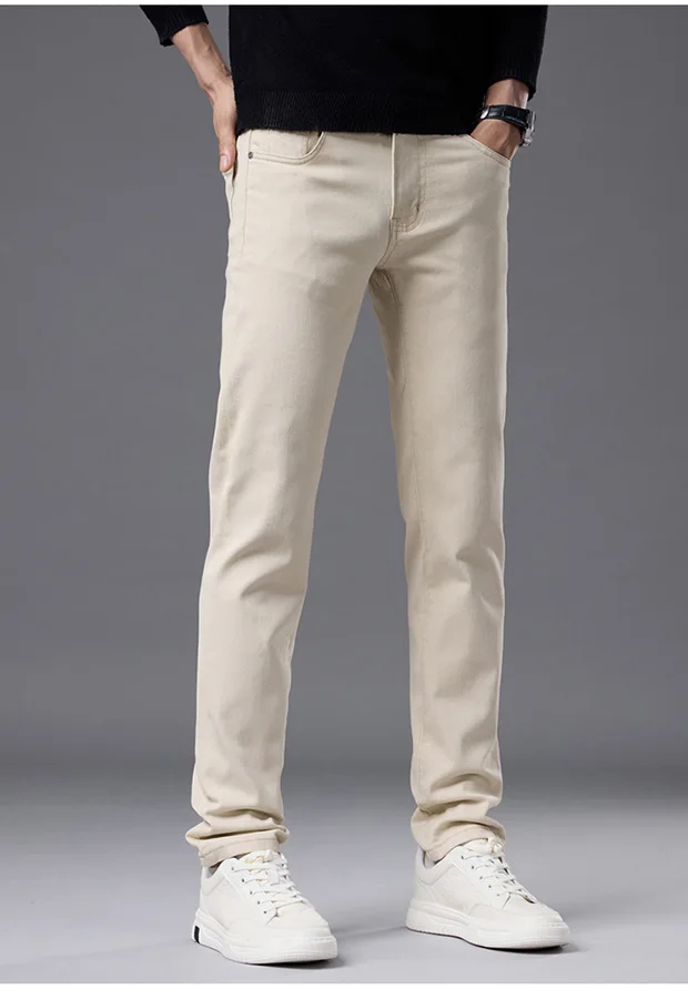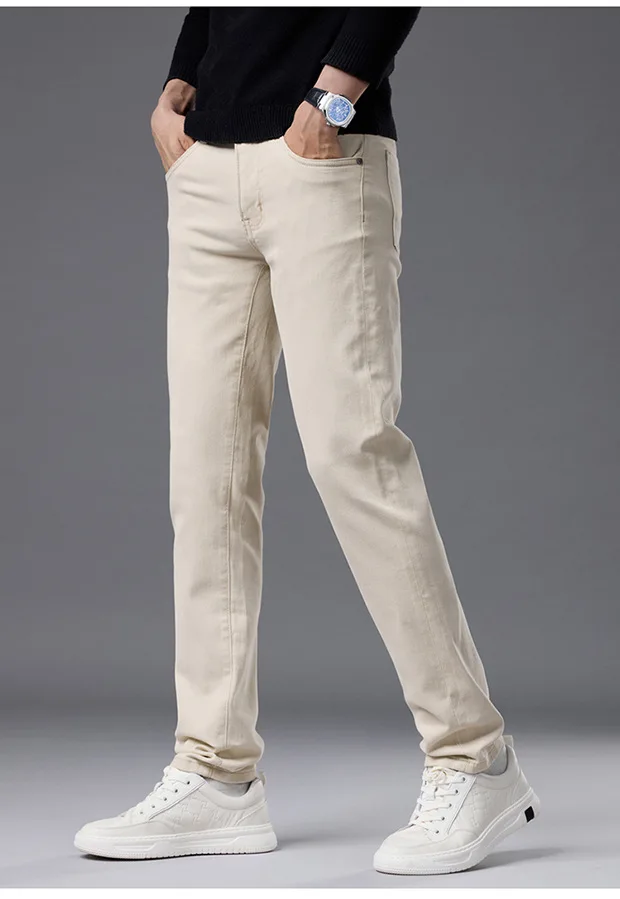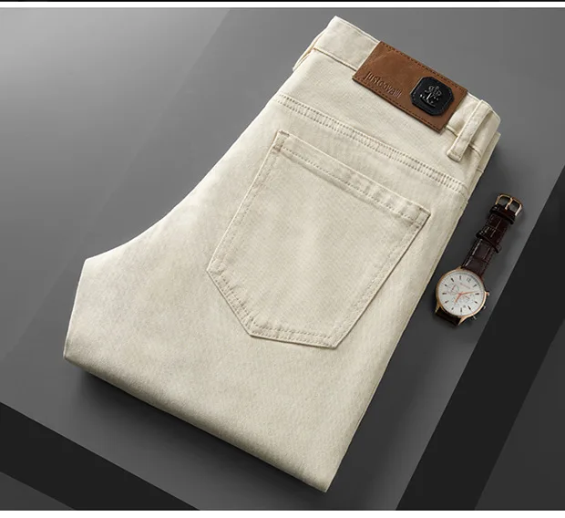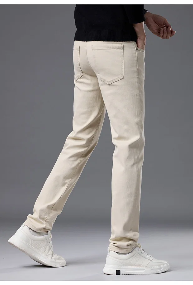 2025 autunno e inverno comodi casual slim fit piccoli jeans a gamba dritta da uomo color albicocca semplici pantaloni elastici versatili 12025 autunno e inverno comodi casual slim fit piccoli jeans a gamba dritta da uomo color albicocca semplici pantaloni elastici versatili