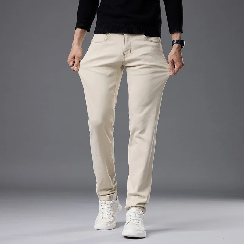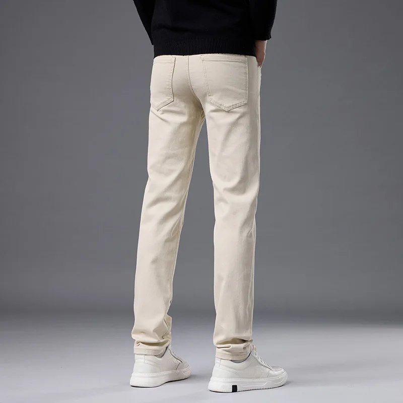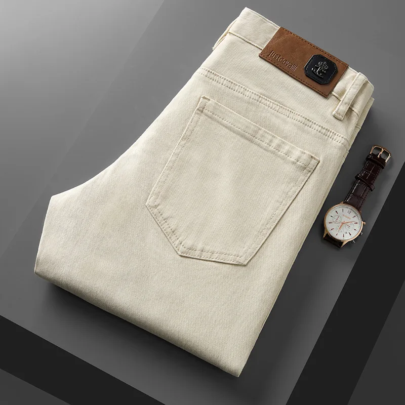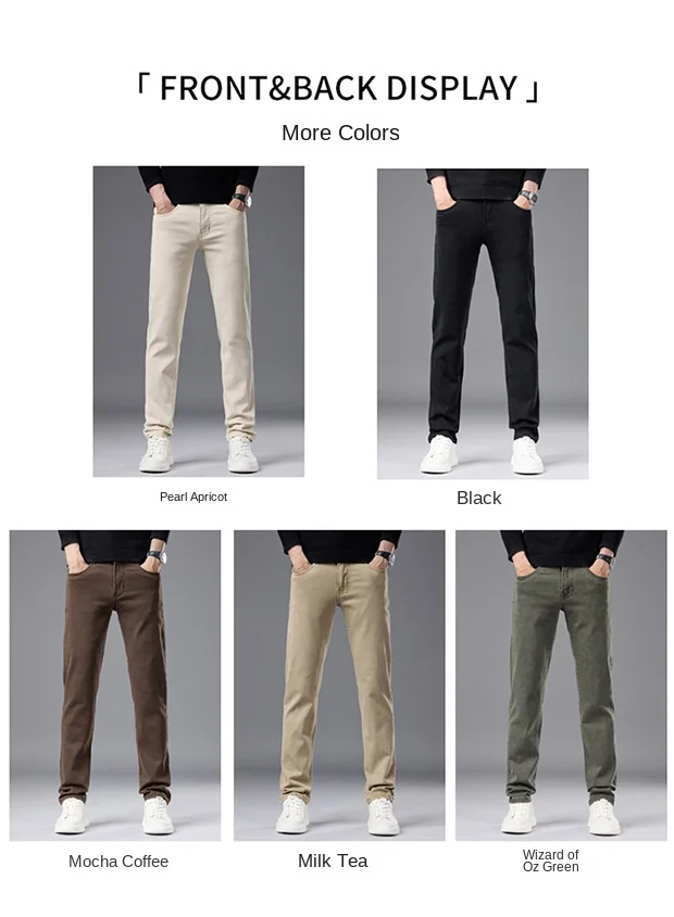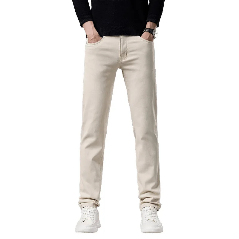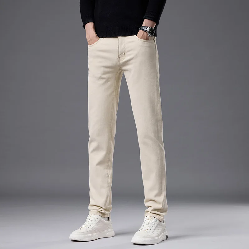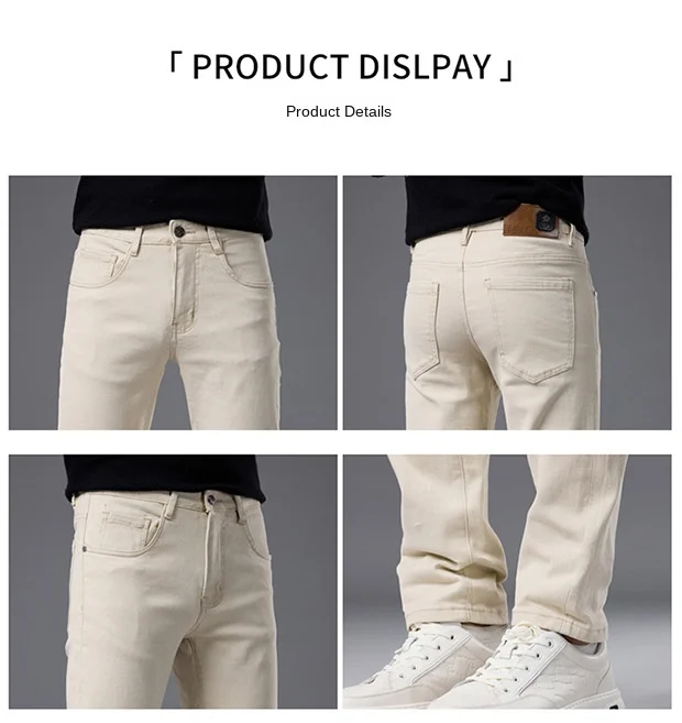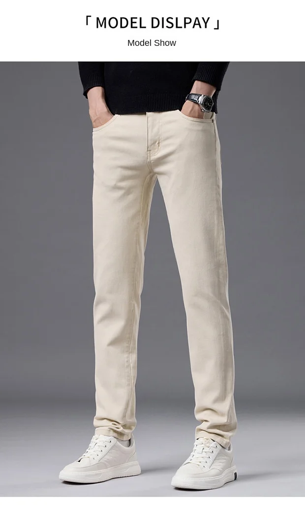 2025 autunno e inverno comodi casual slim fit piccoli jeans a gamba dritta da uomo color albicocca semplici pantaloni elastici versatili 12025 autunno e inverno comodi casual slim fit piccoli jeans a gamba dritta da uomo color albicocca semplici pantaloni elastici versatili