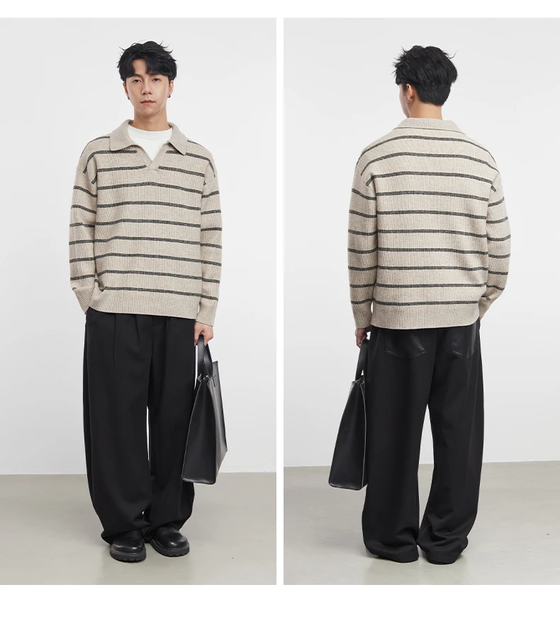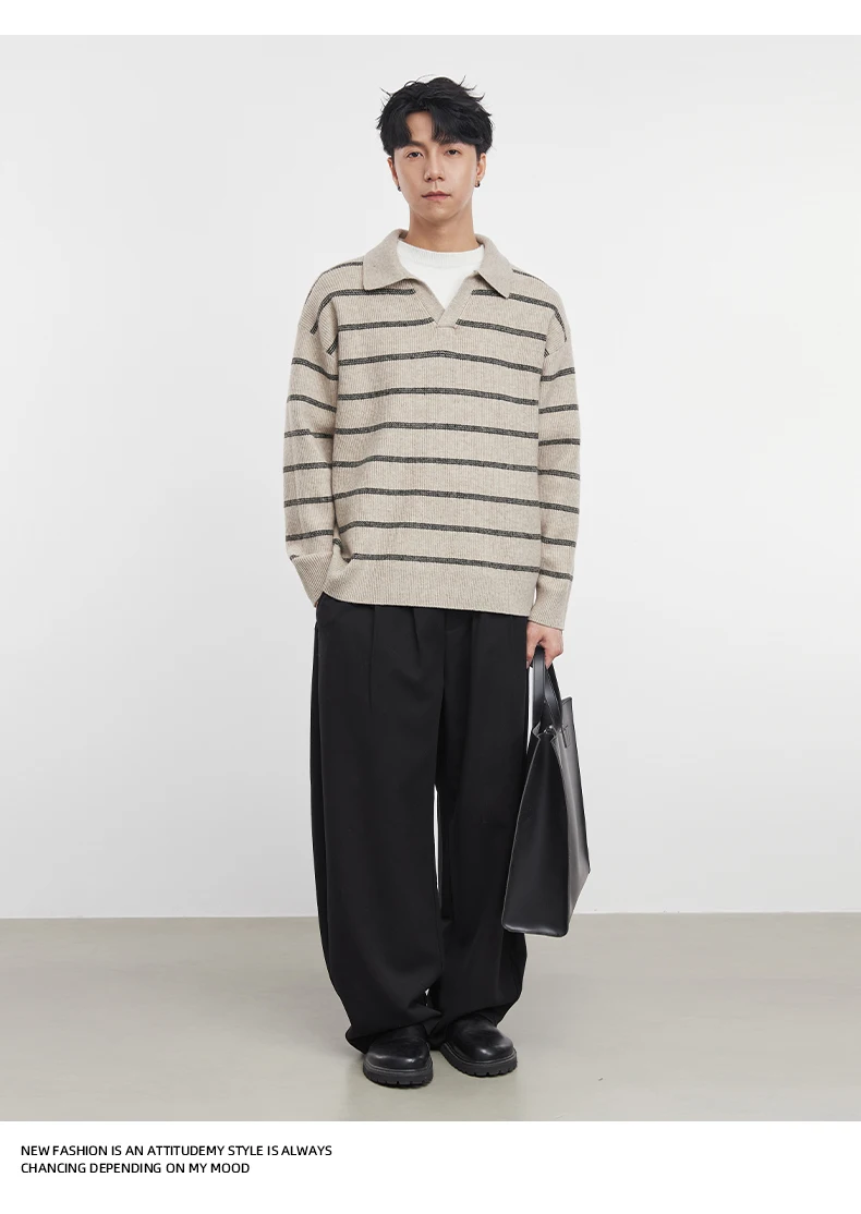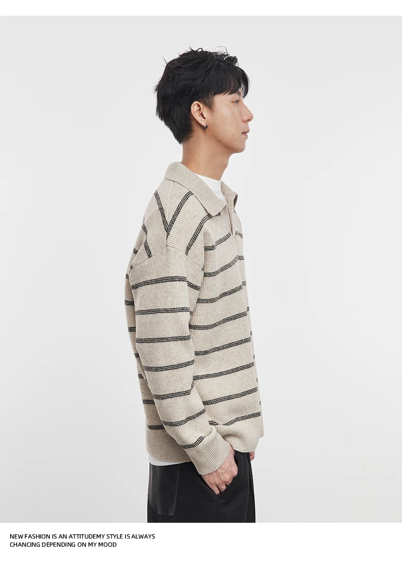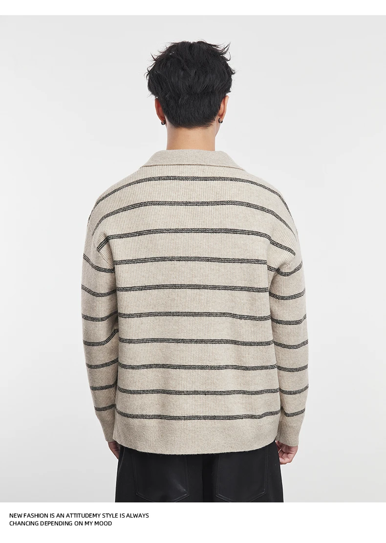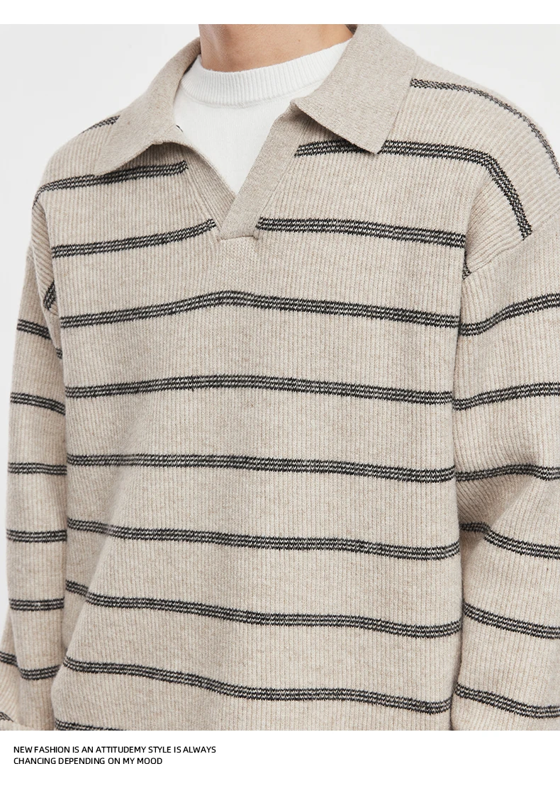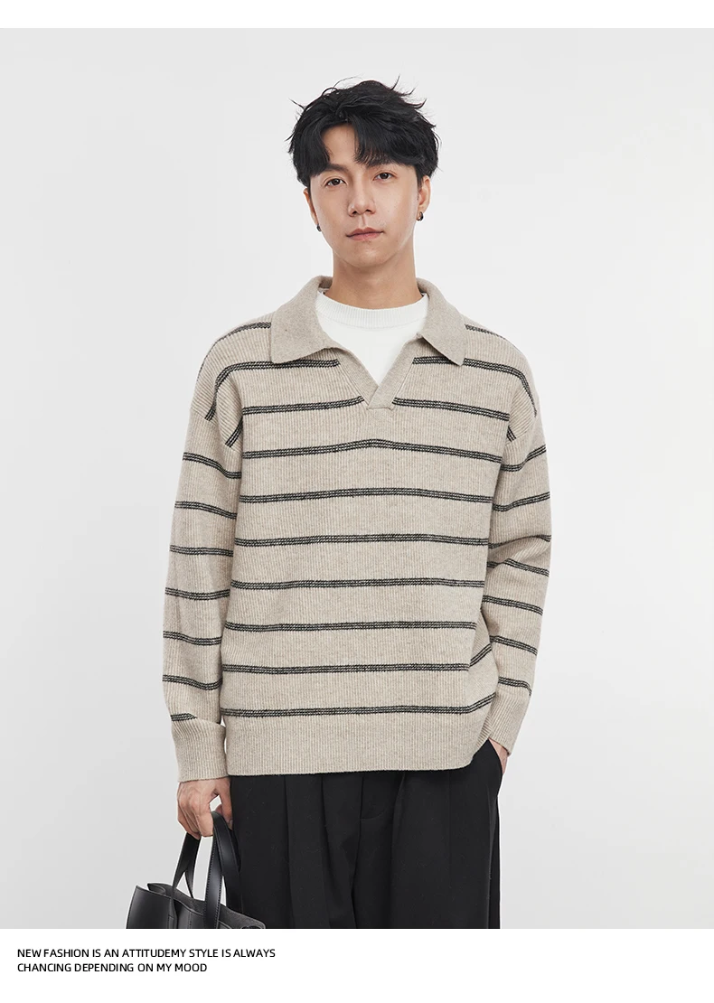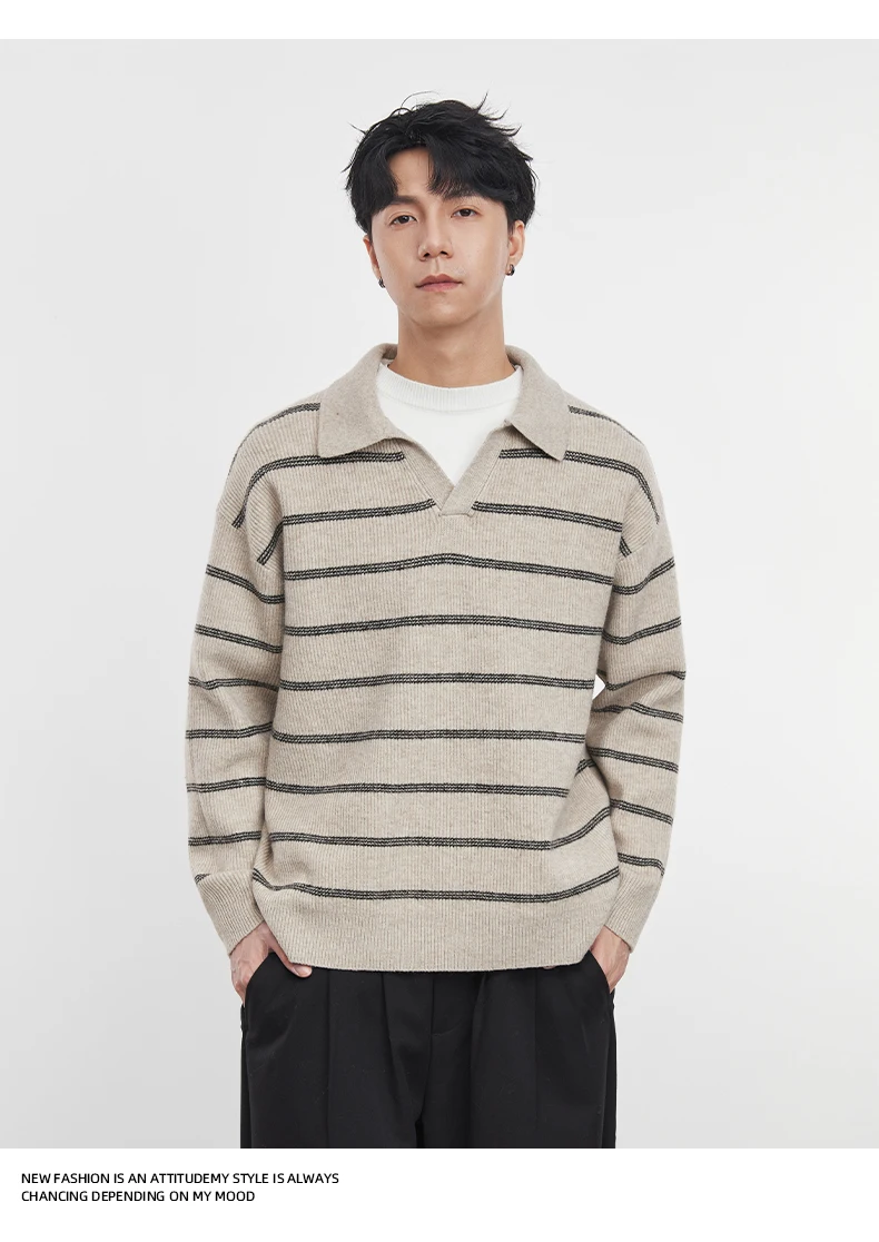 2025 Autunno e Inverno dei Nuovi Uomini di Manica Lunga A Righe Risvolto Maglione Coreano A Maniche Lunghe Top da Uomo Pullover Polo Maglione 12025 Autunno e Inverno dei Nuovi Uomini di Manica Lunga A Righe Risvolto Maglione Coreano A Maniche Lunghe Top da Uomo Pullover Polo Maglione