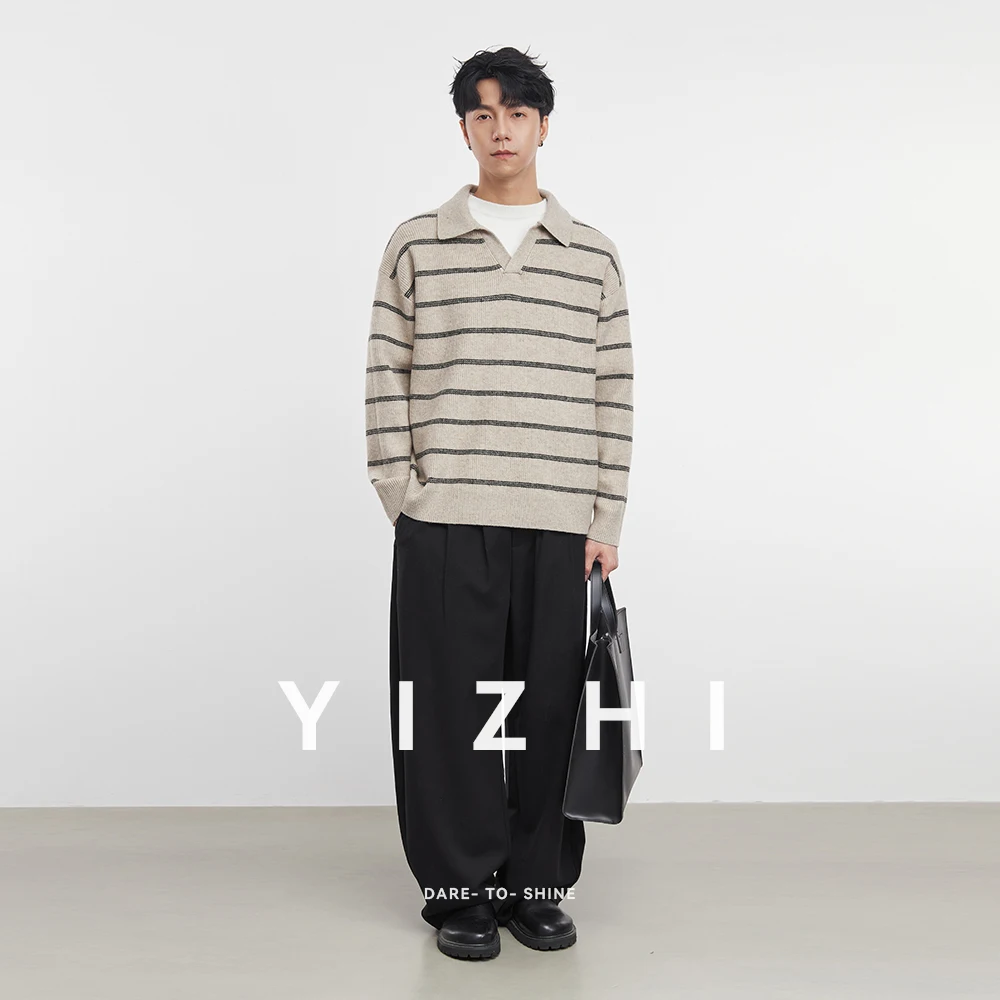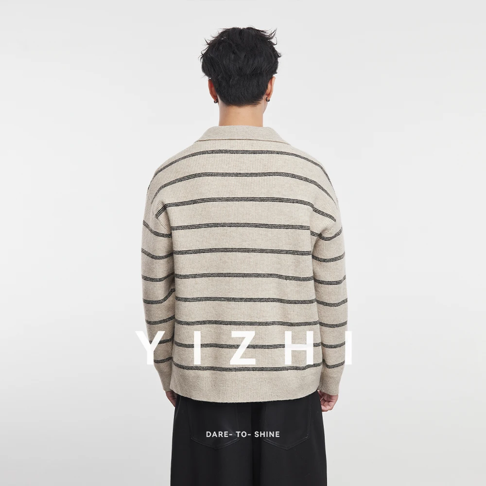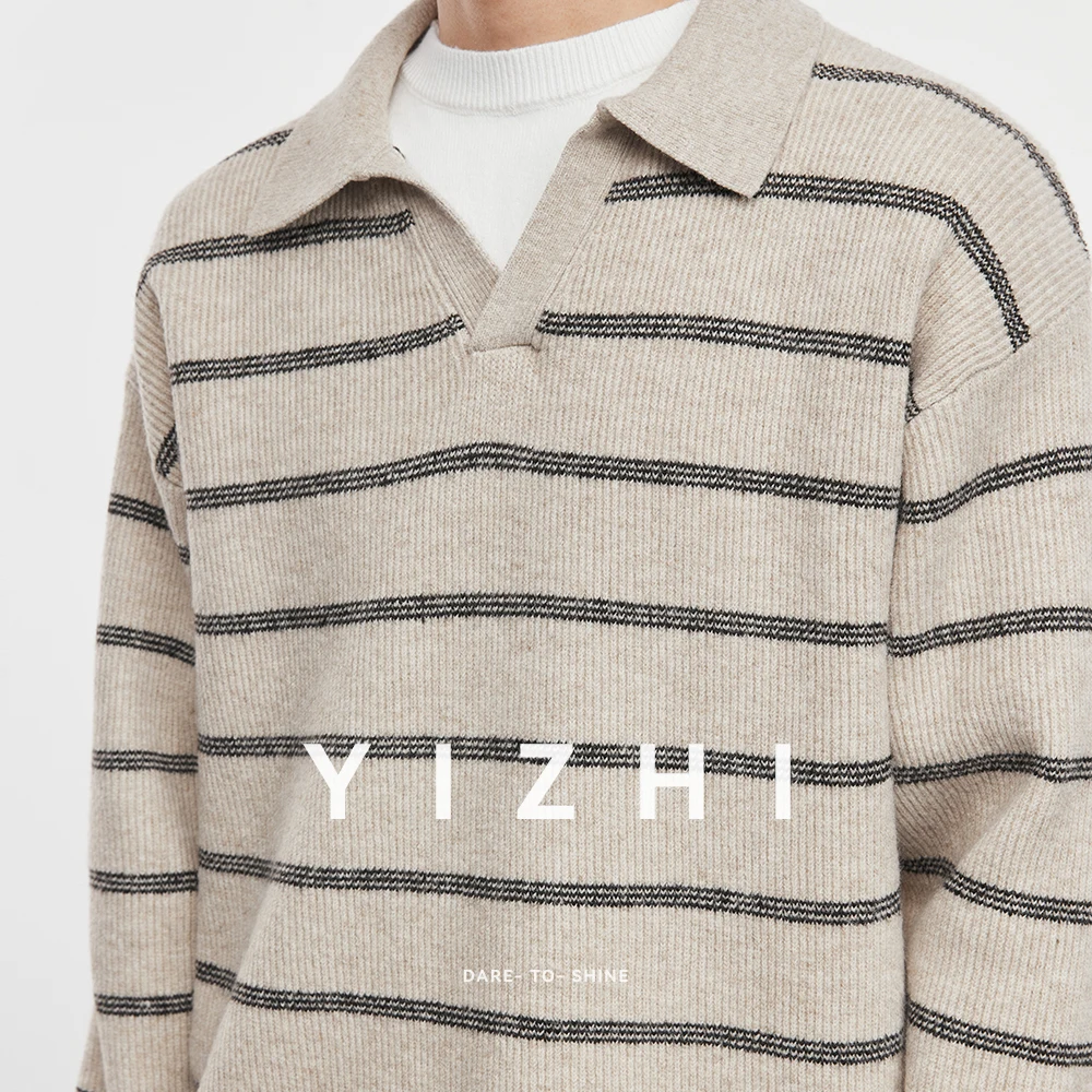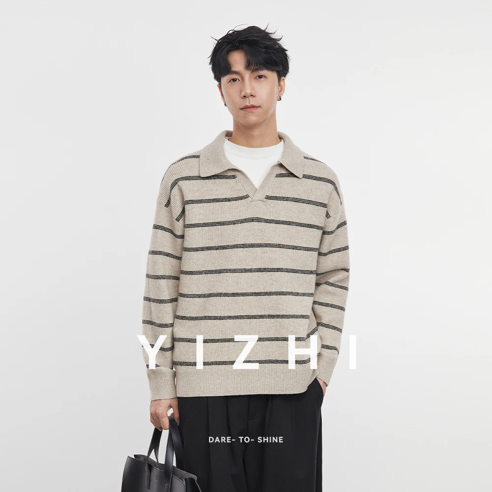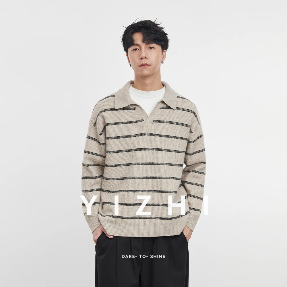 2025 Autunno e Inverno dei Nuovi Uomini di Manica Lunga A Righe Risvolto Maglione Coreano A Maniche Lunghe Top da Uomo Pullover Polo Maglione