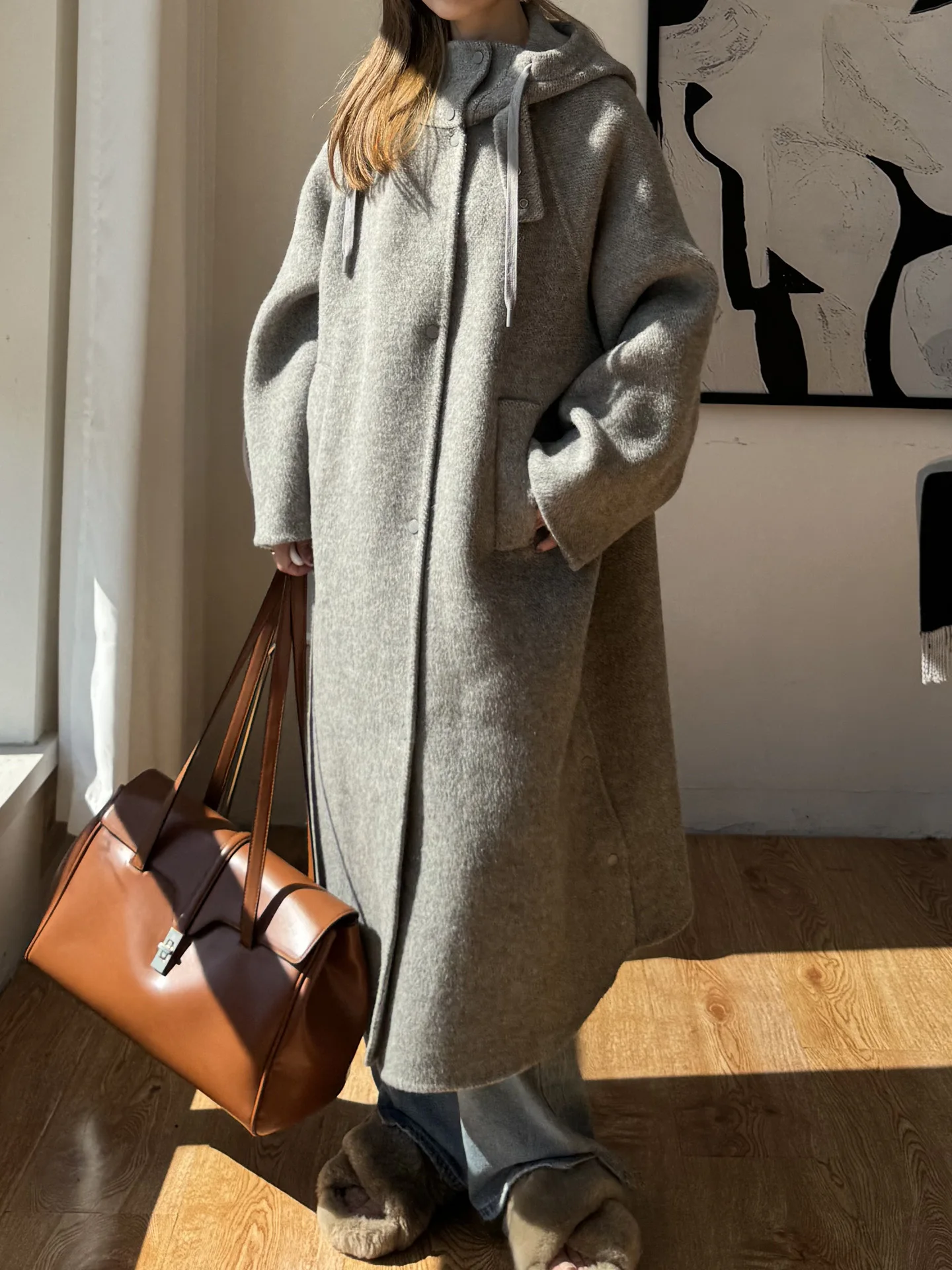 Con un design con cappuccio e maniche raglan a tutta lunghezza, questo cappotto combina funzionalità con lo stile, perfetto per varie occasioni.