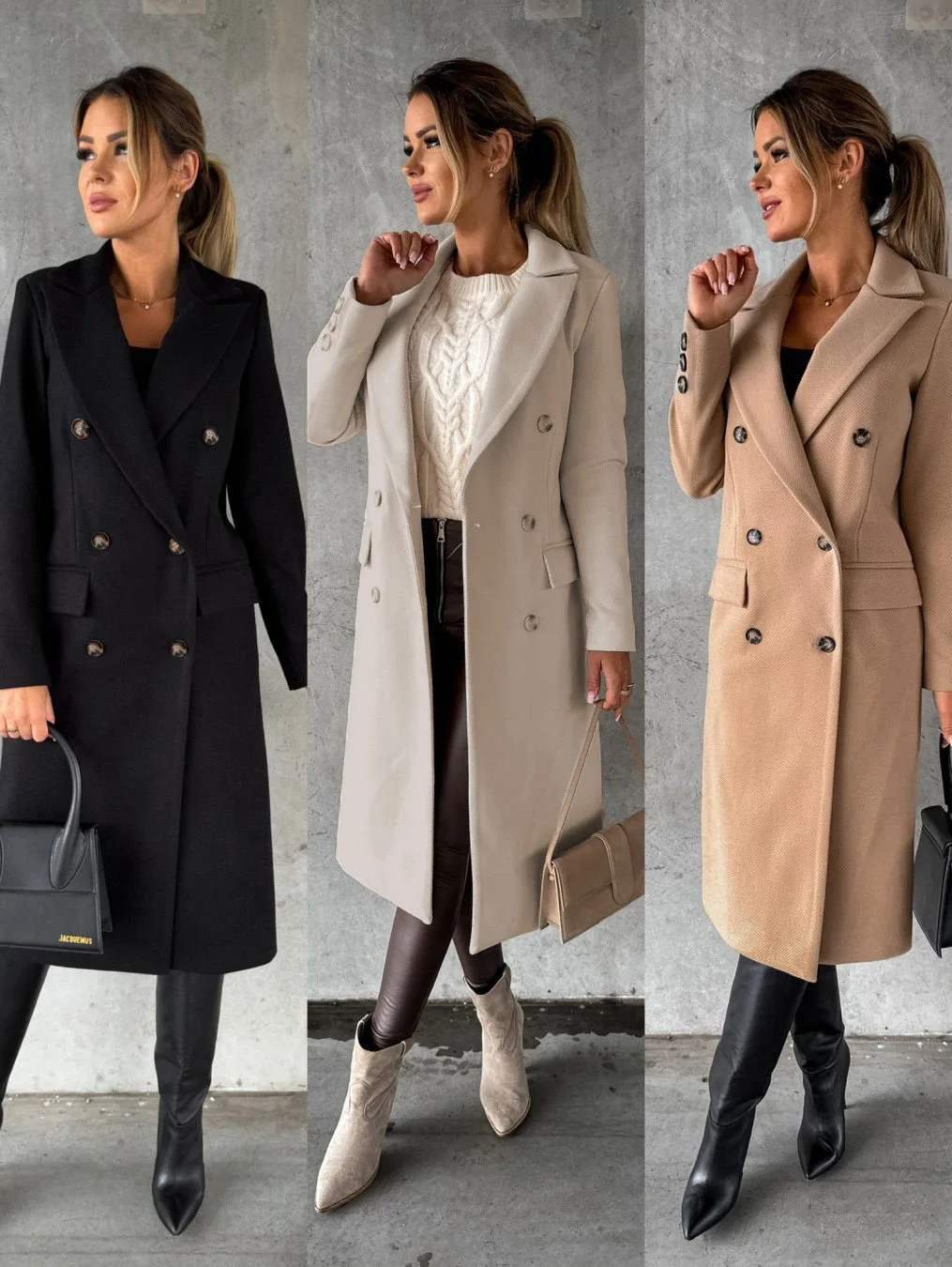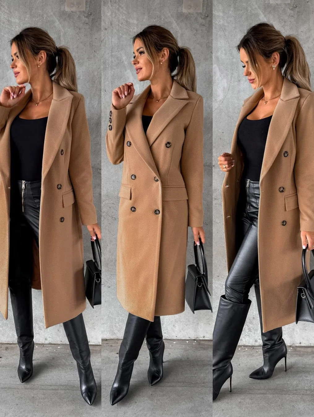 2025 Autunno e Inverno Nuove Cappotti da donna a maniche lunghe con colletto tinta unita doppiopetto maglione slim fit Abbigliamento donna