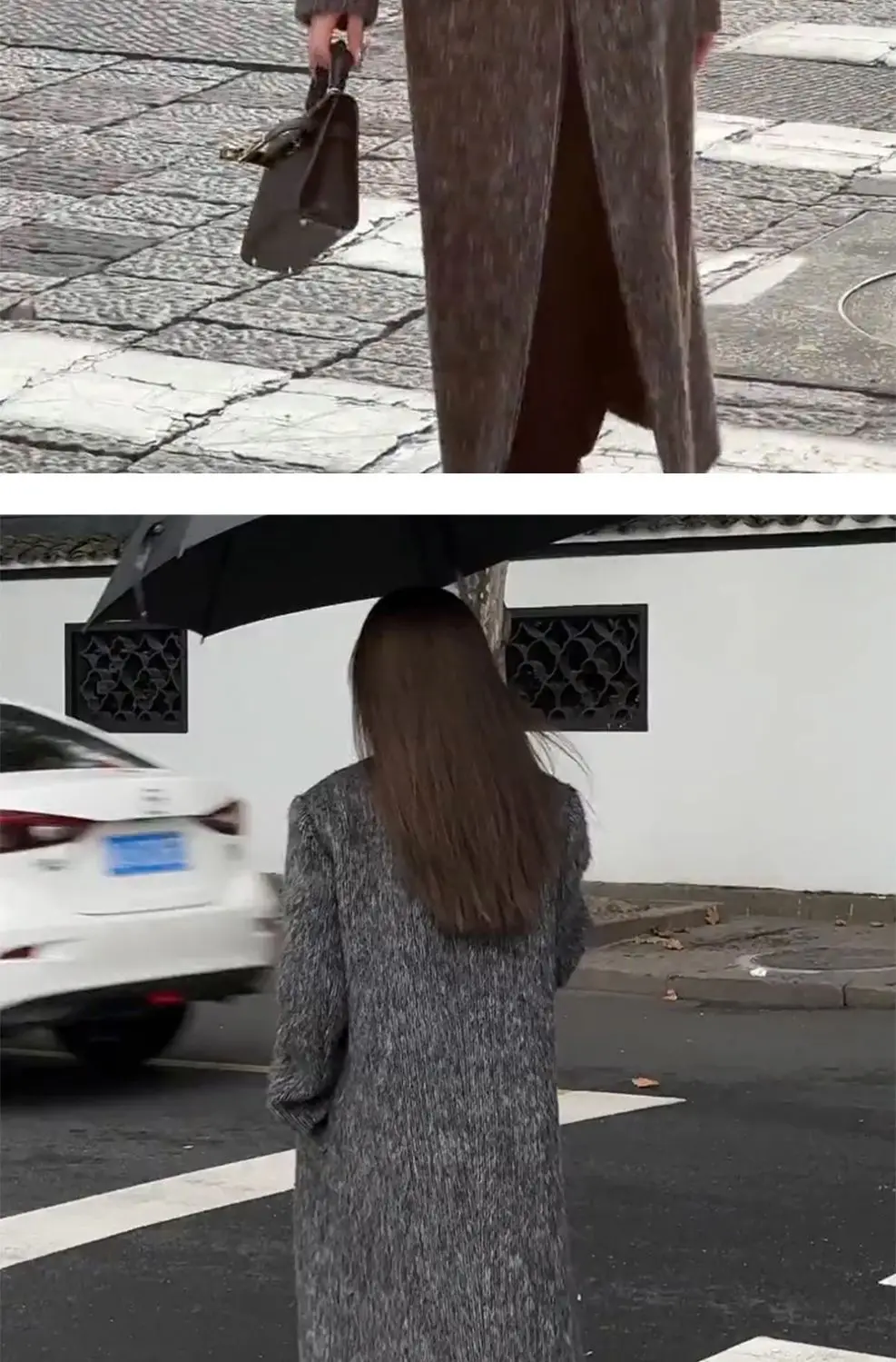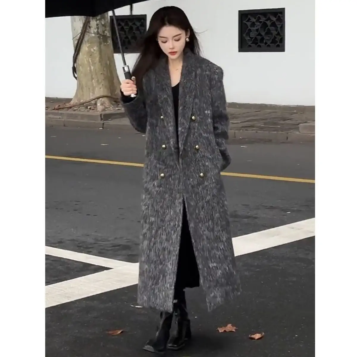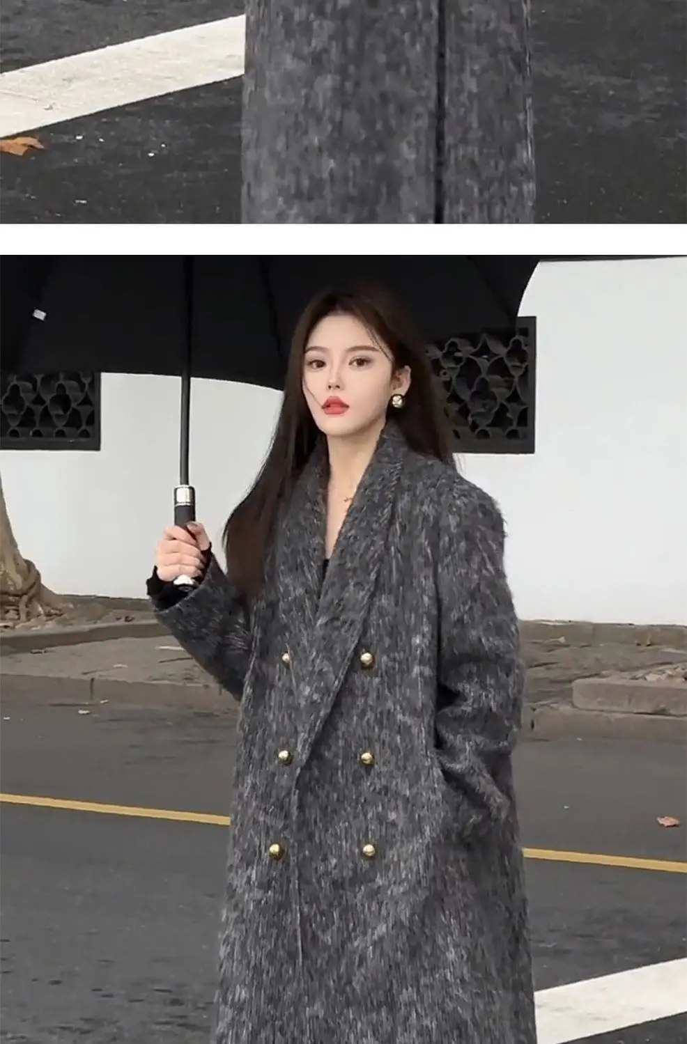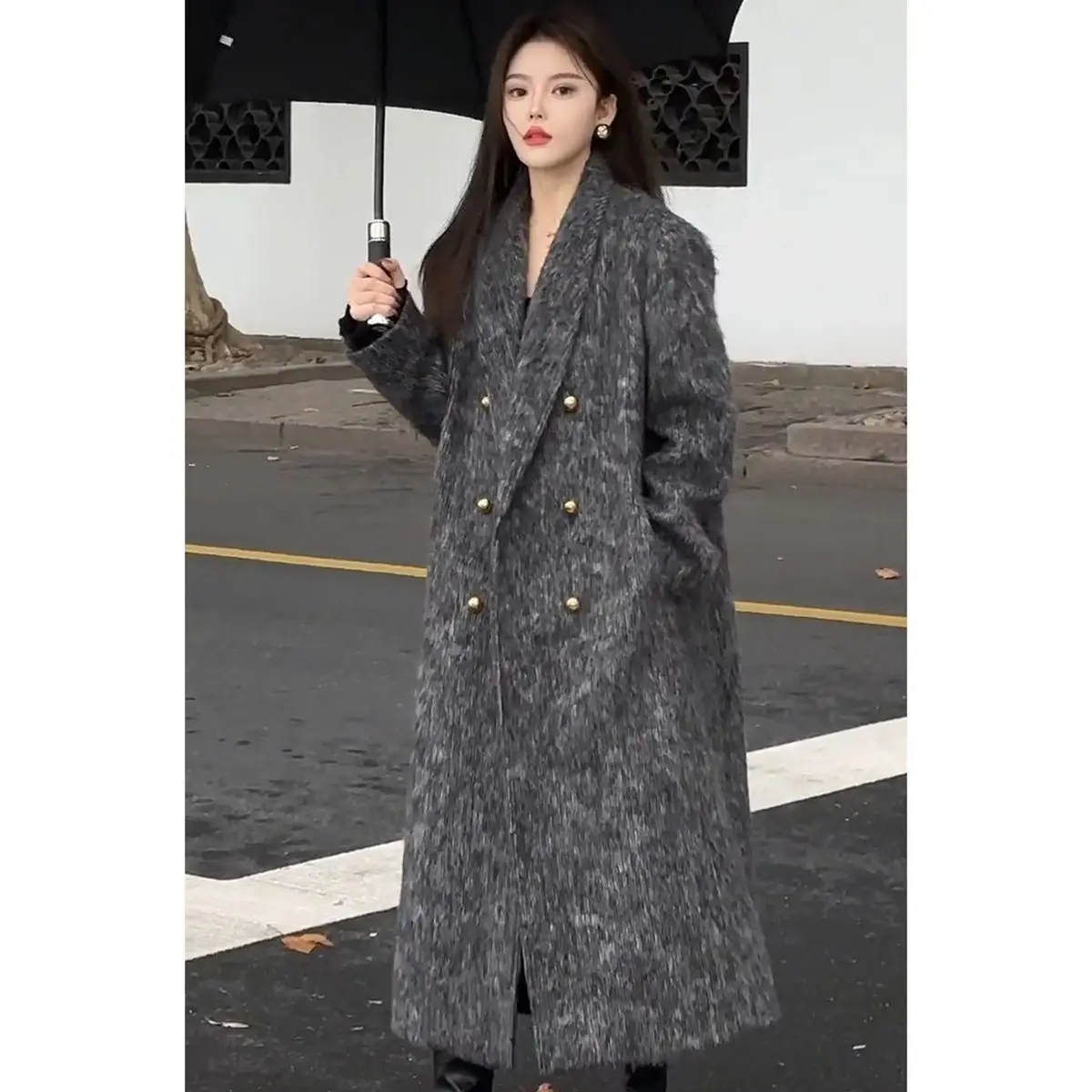 2025 Autunno e inverno Nuovo cappotto invernale grigio di fascia alta Cappotto lungo in peluche di lana con temperamento alla moda per le donne