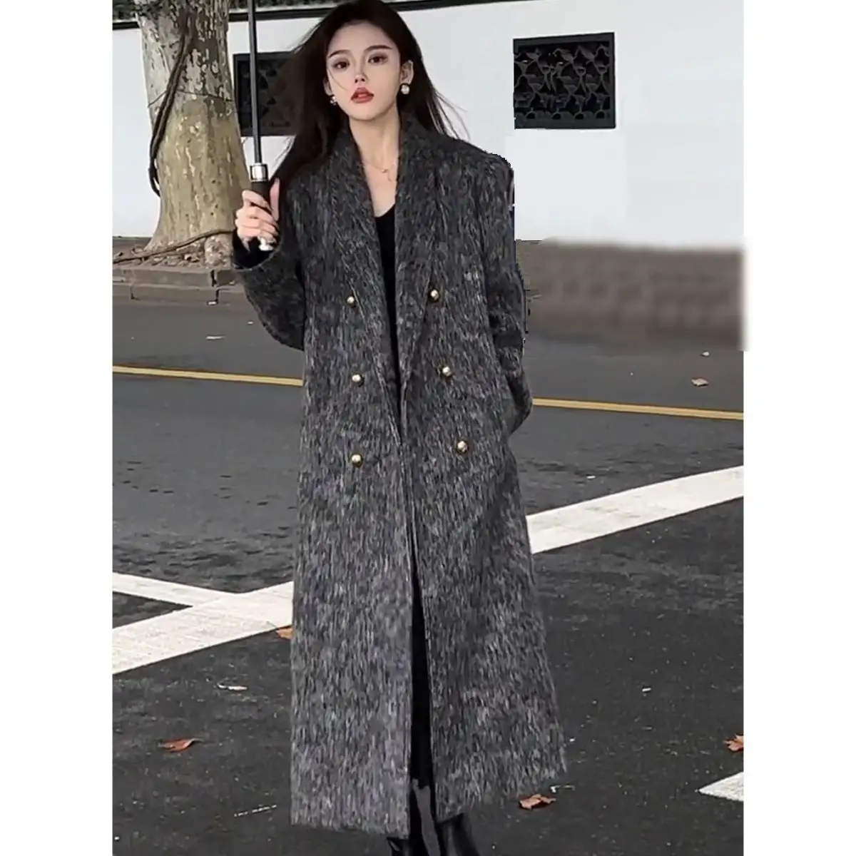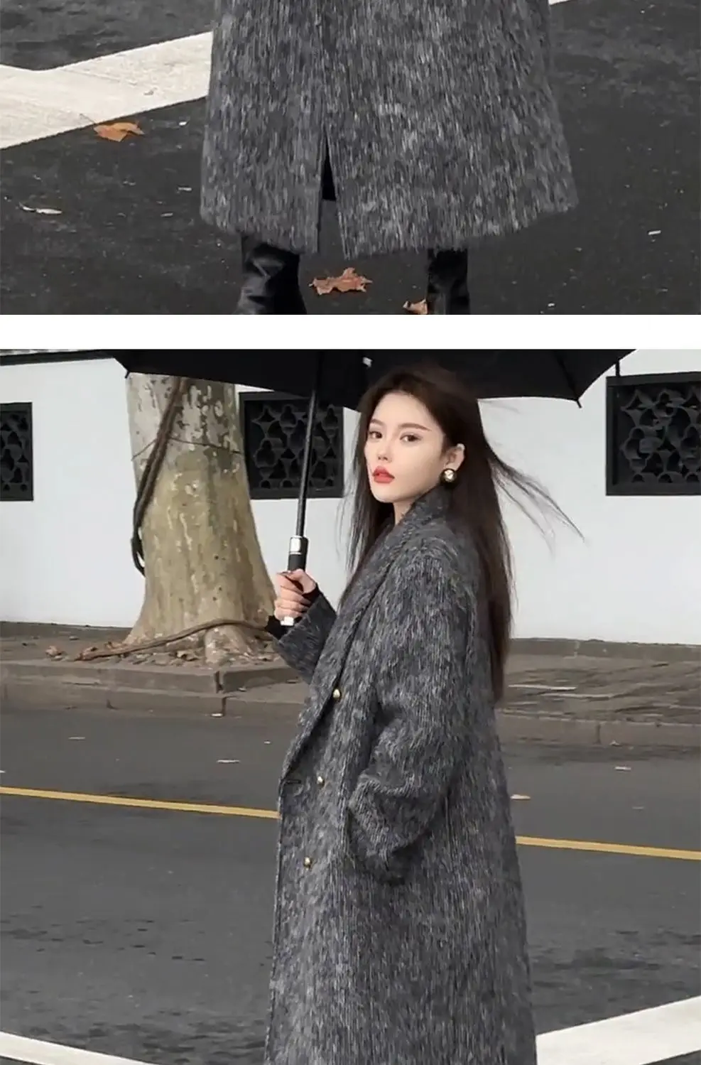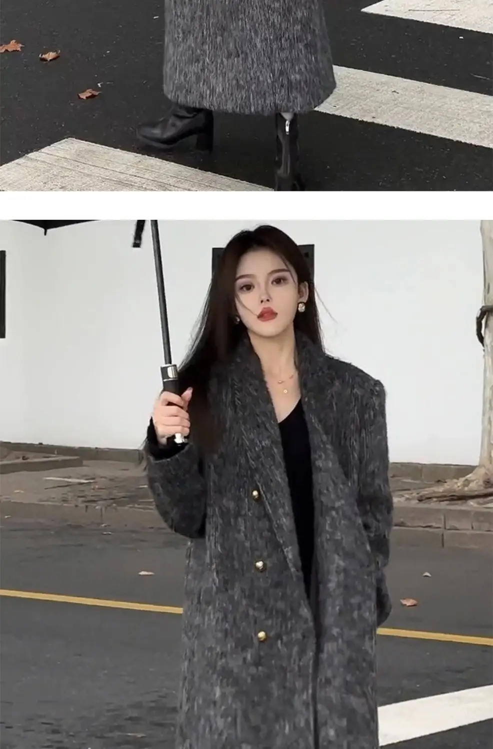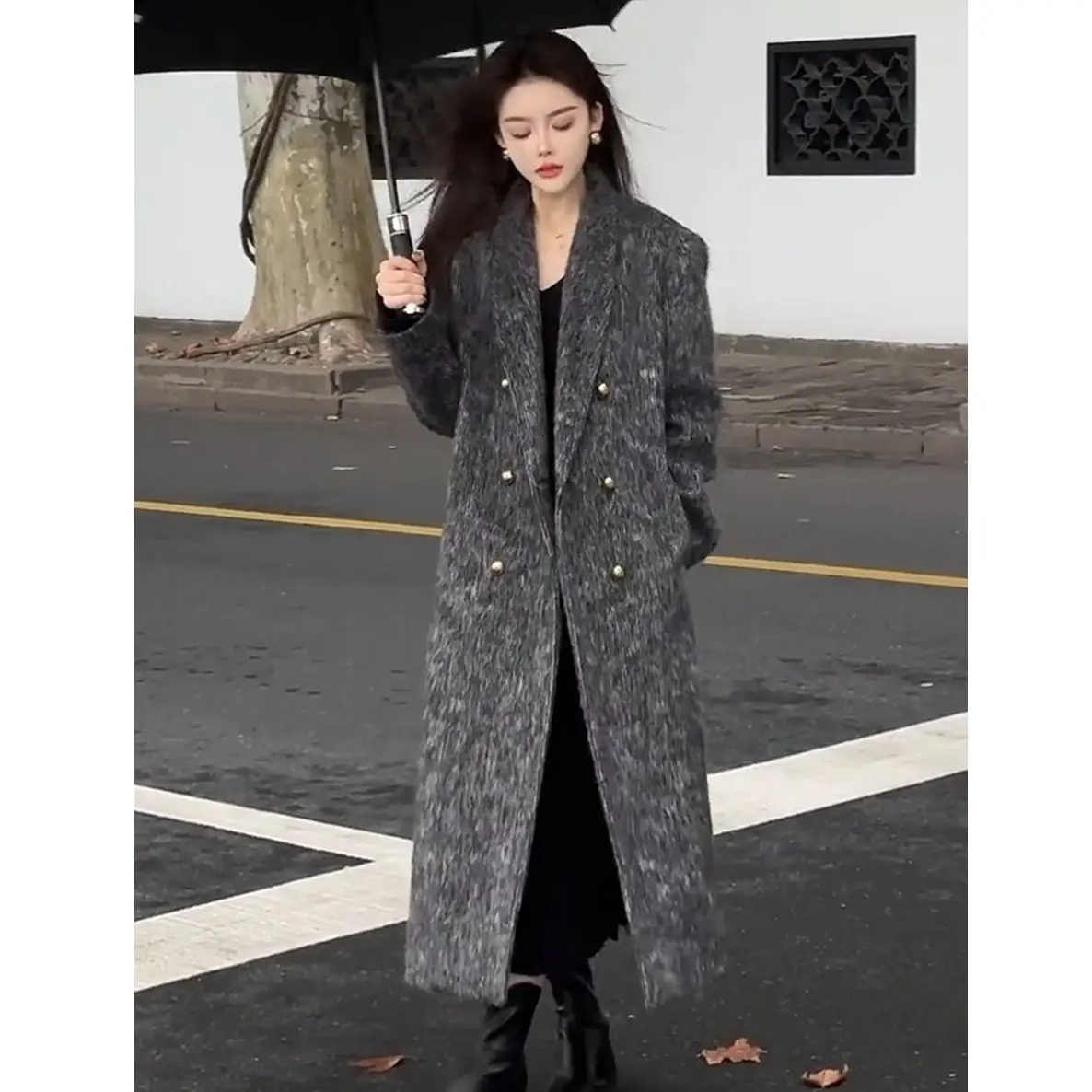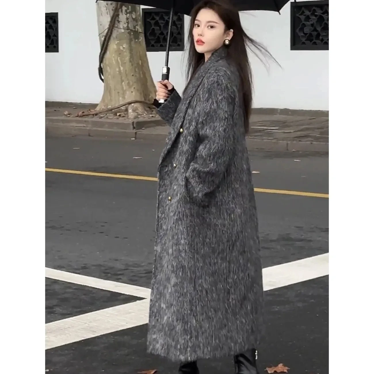 2025 Autunno e inverno Nuovo cappotto invernale grigio di fascia alta Cappotto lungo in peluche di lana con temperamento alla moda per le donne