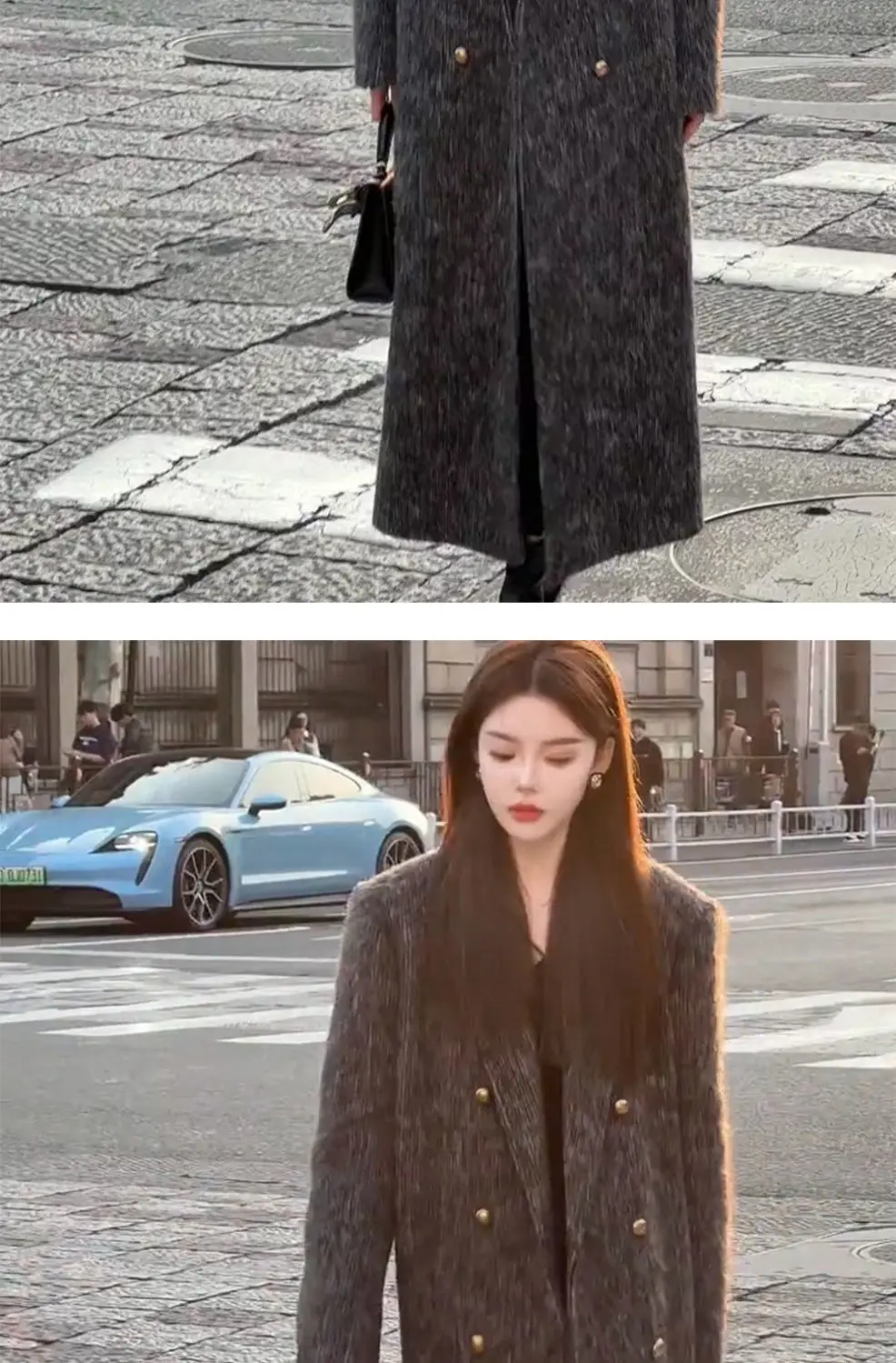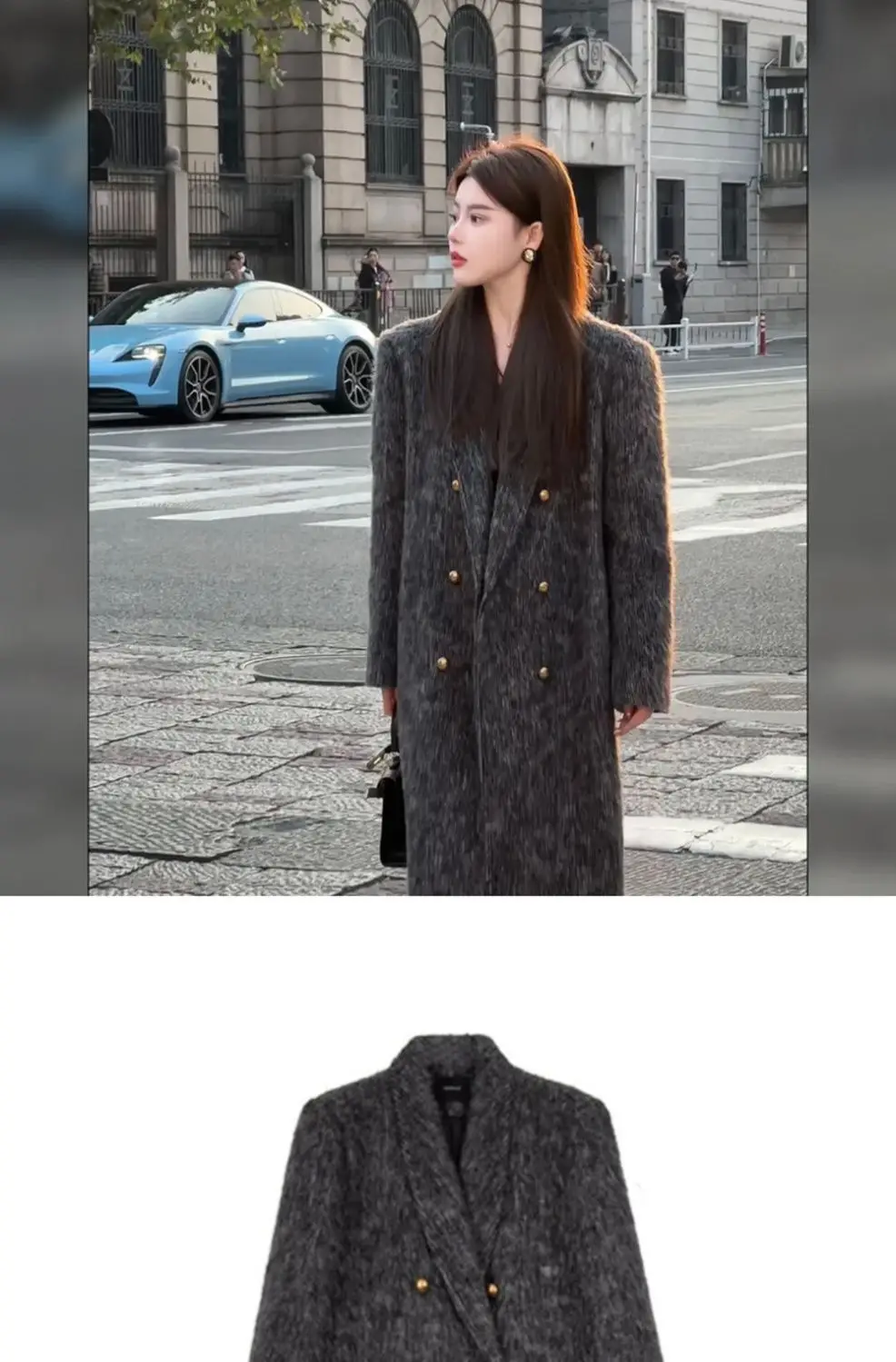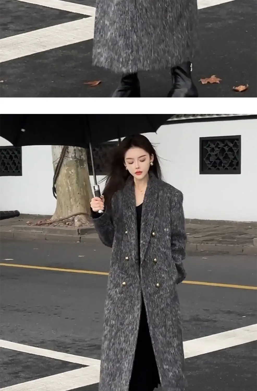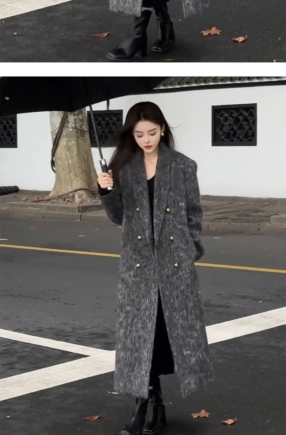 2025 Autunno e inverno Nuovo cappotto invernale grigio di fascia alta Cappotto lungo in peluche di lana con temperamento alla moda per le donne