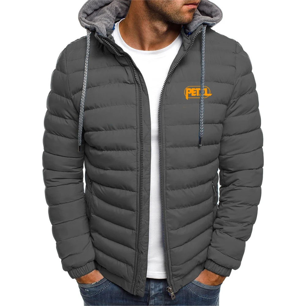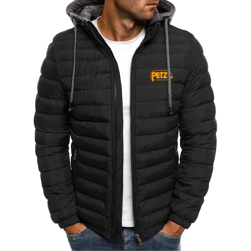 2025 Autunno Inverno Addensare Felpe con cappuccio PETZL Vita Arrampicata su parete Stampa Tinta unita Giacca con cerniera Comodo cappotto imbottito con cappuccio da uomo