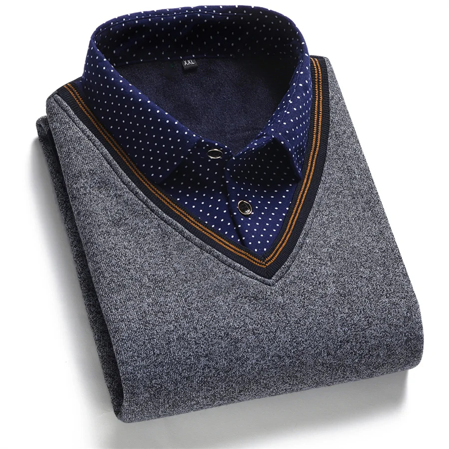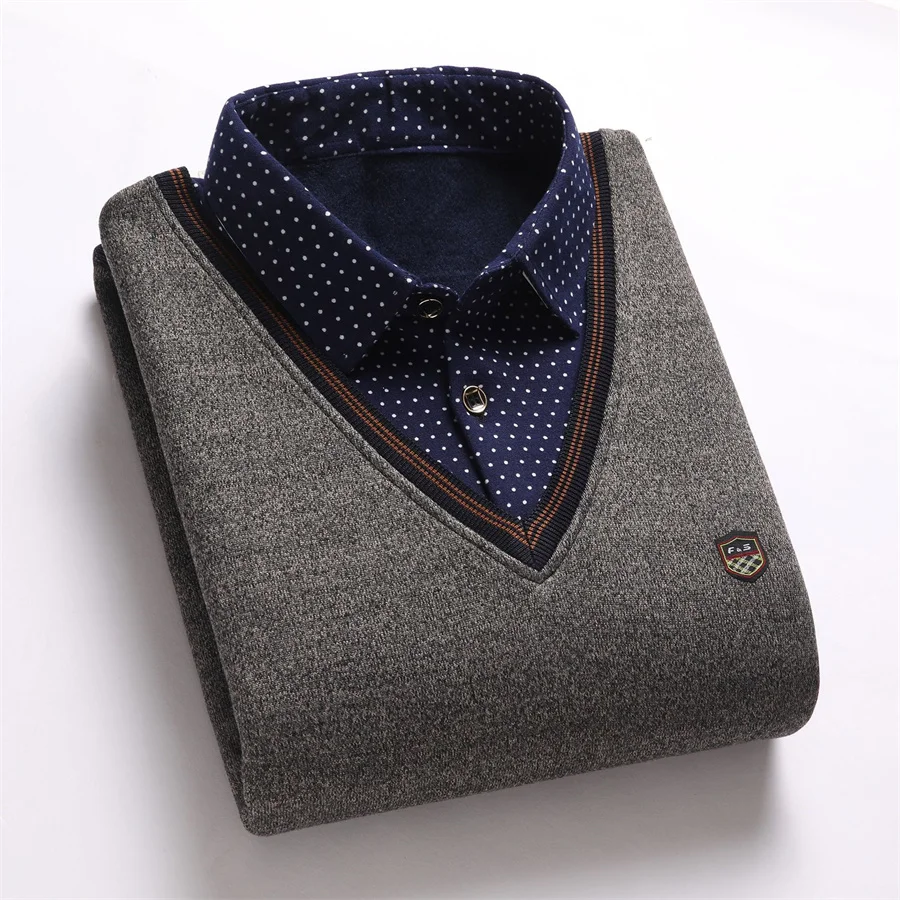 2025 Autunno Inverno Camicia da uomo in lana con collo maglione lavorato a maglia oversize moda punto solido addensato caldo pullover maschile abbigliamento uomo
