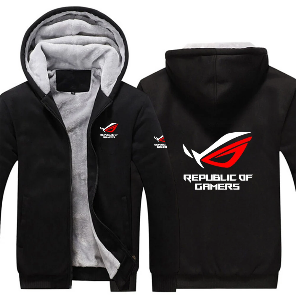 2025 Autunno Inverno Cardigan Manica lunga Felpe con cappuccio ispessite ROG Repubblica di giocatori da uomo Stampa Cappotti con cappuccio High Street a prova di freddo