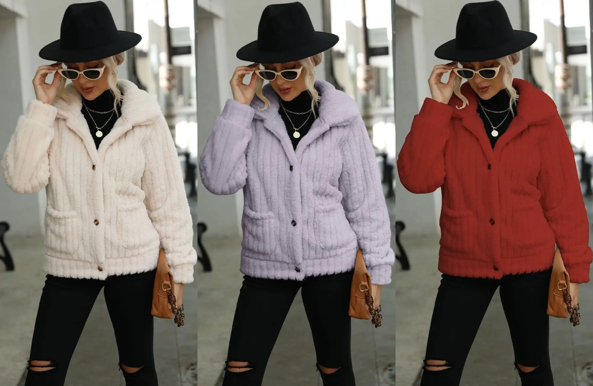 2025 Autunno Inverno Couverture Colletto Giacca da donna Spessore caldo Manica lunga Cappotto casual Lady Bottoni tascabili larghi Cappotto solido in peluche 12025 Autunno Inverno Couverture Colletto Giacca da donna Spessore caldo Manica lunga Cappotto casual Lady Bottoni tascabili larghi Cappotto solido in peluche