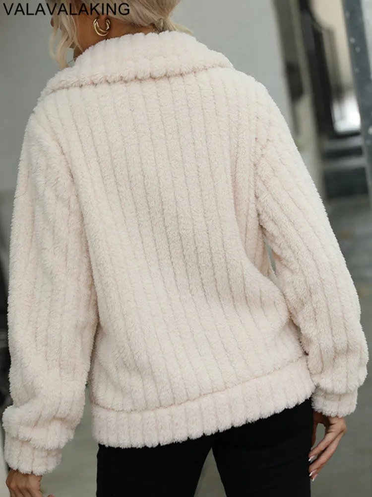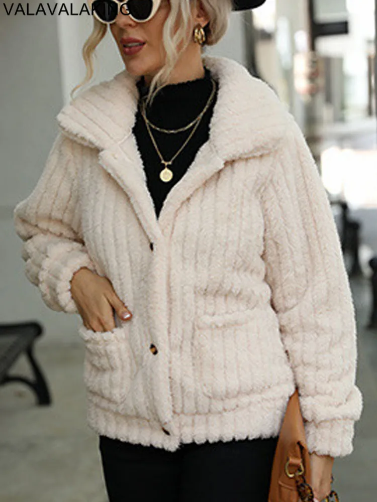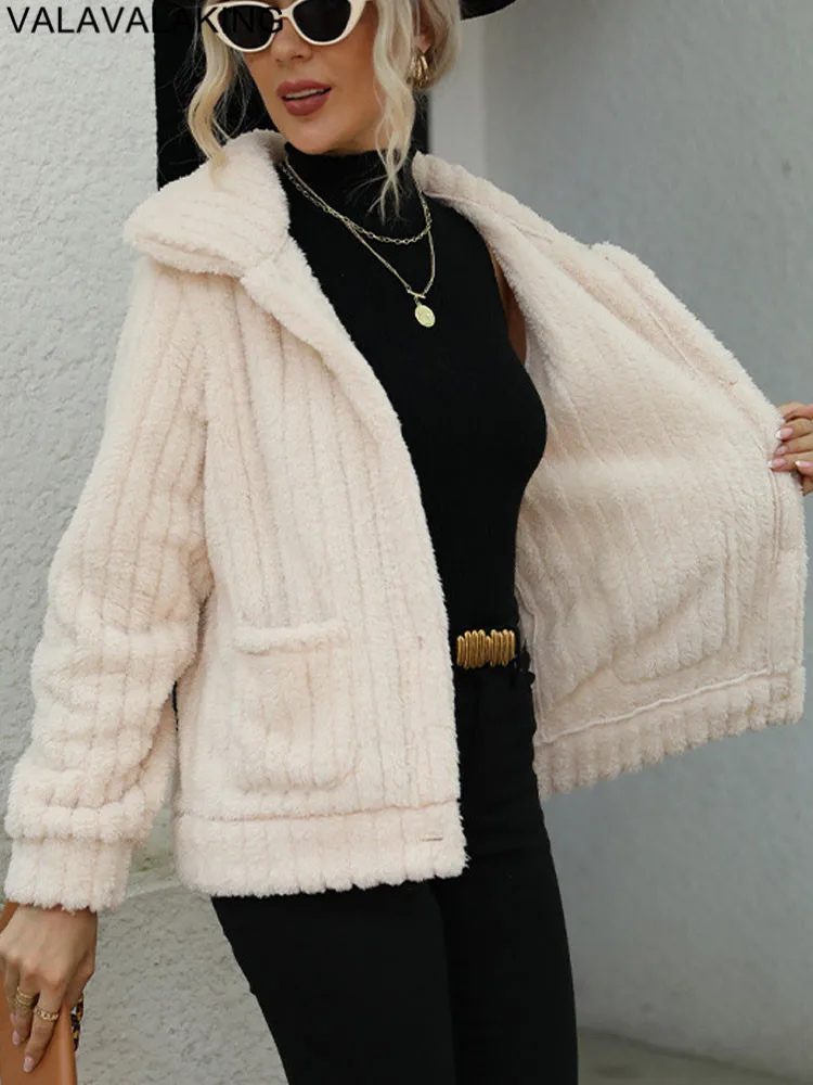 2025 Autunno Inverno Couverture Colletto Giacca da donna Spessore caldo Manica lunga Cappotto casual Lady Bottoni tascabili larghi Cappotto solido in peluche