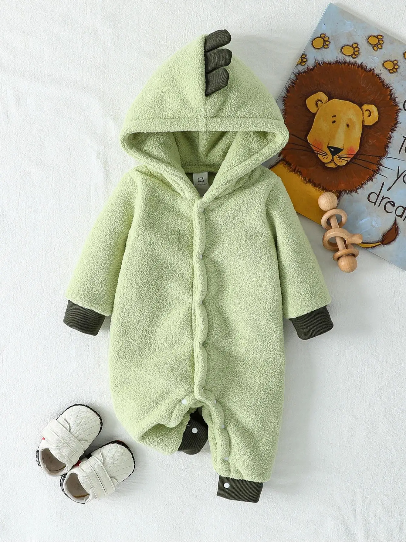2025 Autunno/Inverno Neonato/Ragazze Caldo Pile Pagliaccetto Tuta Solido Infantile Con Cappuccio Tuta Del Bambino Carino Abbigliamento Per 0-1Y