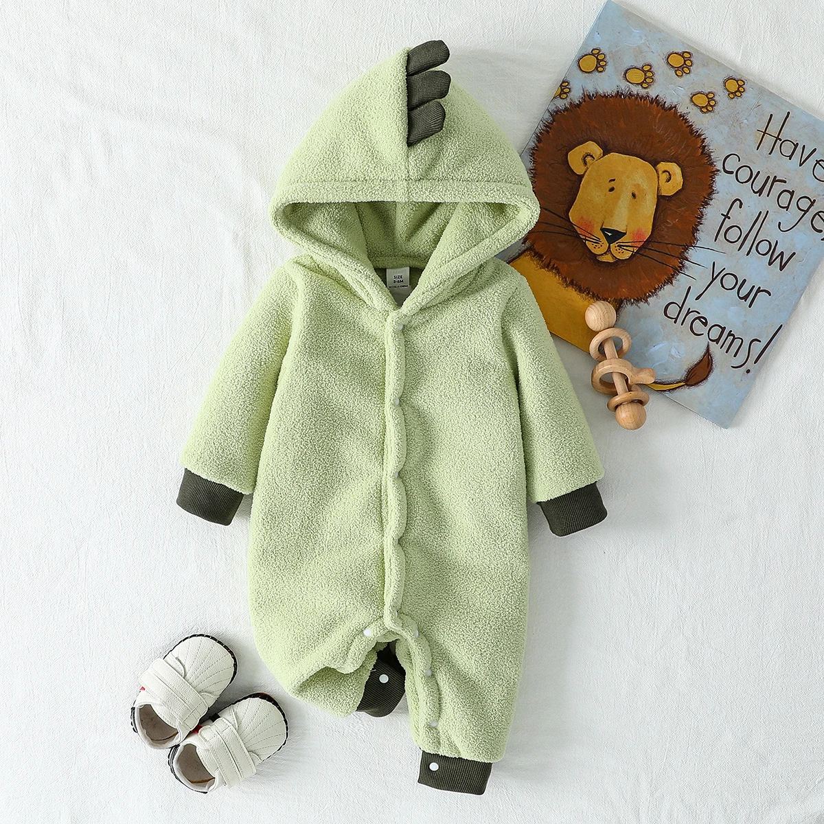 2025 Autunno/Inverno Neonato/Ragazze Caldo Pile Pagliaccetto Tuta Solido Infantile Con Cappuccio Tuta Del Bambino Carino Abbigliamento Per 0-1Y