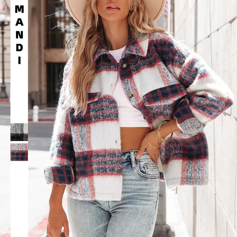 2025 Autunno Inverno Nuove donne Abbigliamento Europeo Americano Plaid Mohair Giacca corta di lana spessa