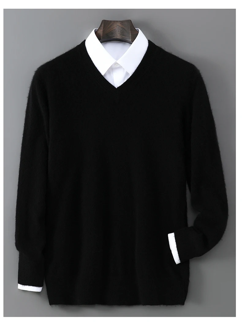 2025 Autunno Inverno Nuovi Uomini di Lana Maglione di Colore Solido Con Scollo A V Pullover Maglione Casual Allentato Affari Maglia Plus Size Base Maglioni 12025 Autunno Inverno Nuovi Uomini di Lana Maglione di Colore Solido Con Scollo A V Pullover Maglione Casual Allentato Affari Maglia Plus Size Base Maglioni