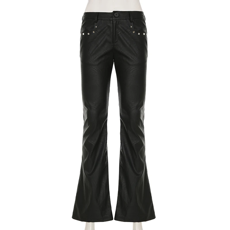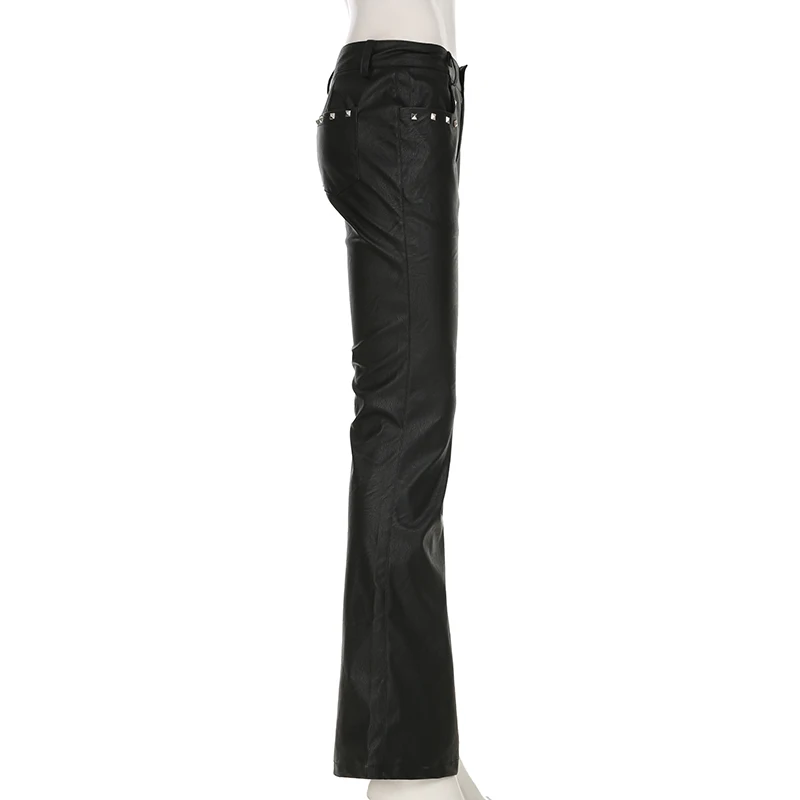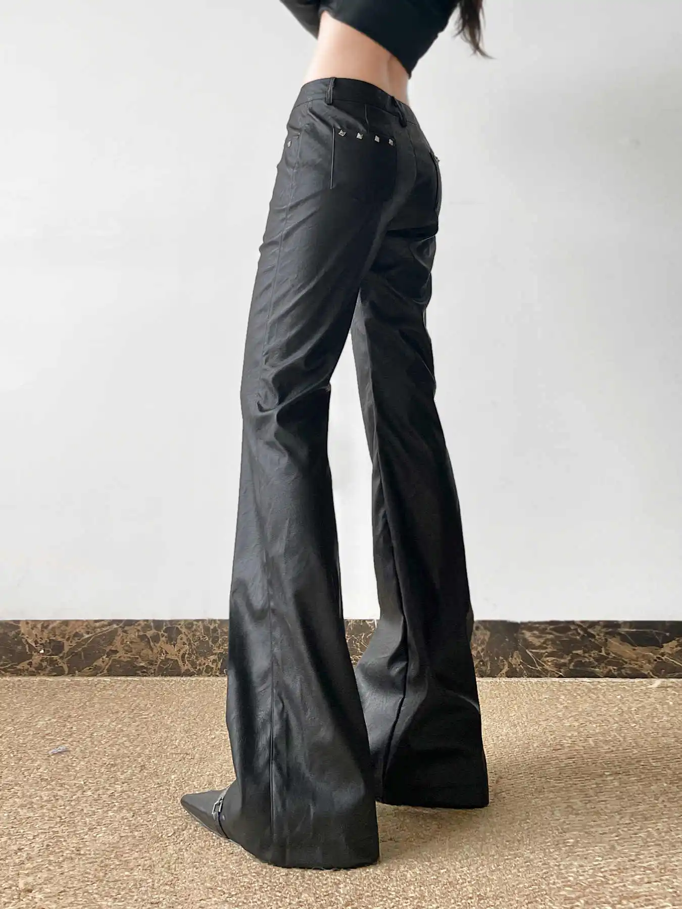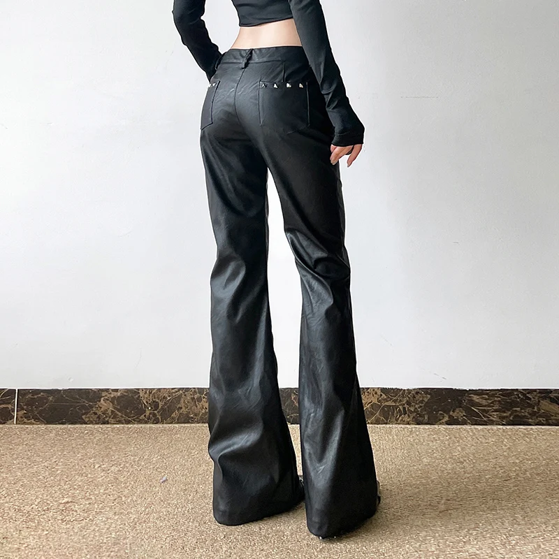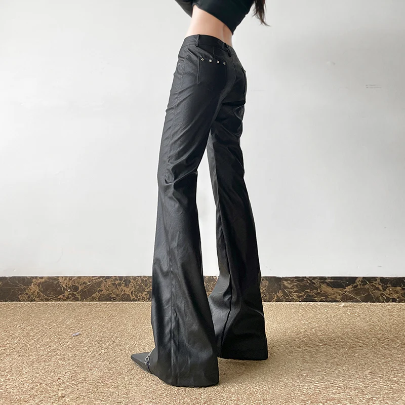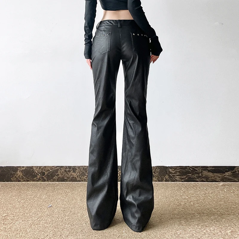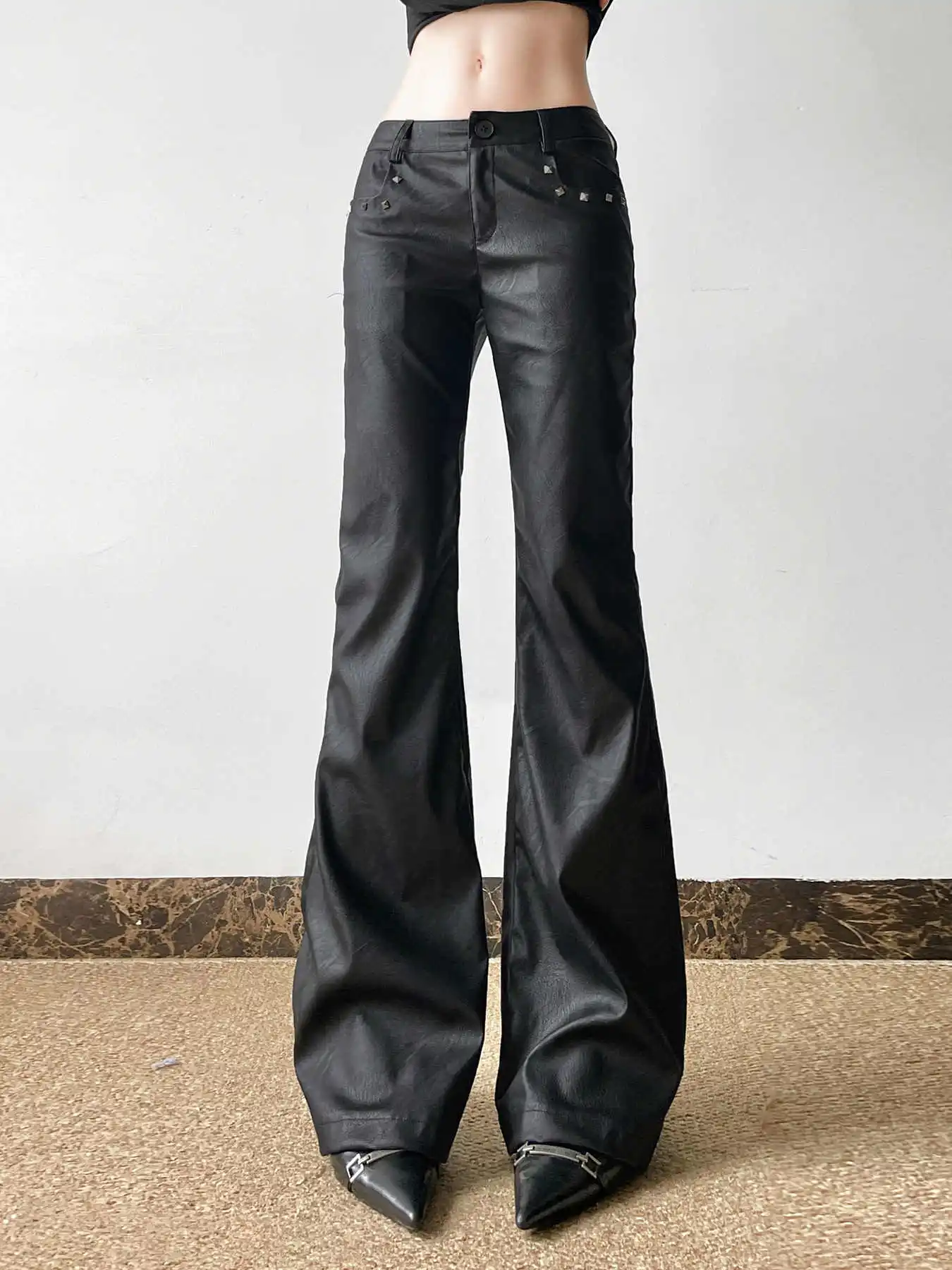 2025 Autunno Inverno Pantaloni PU da donna Vita bassa Goblin Core Pantaloni in ecopelle Fondo a campana Gotico giapponese Y2k Stretch 2000s Nuovo 12025 Autunno Inverno Pantaloni PU da donna Vita bassa Goblin Core Pantaloni in ecopelle Fondo a campana Gotico giapponese Y2k Stretch 2000s Nuovo