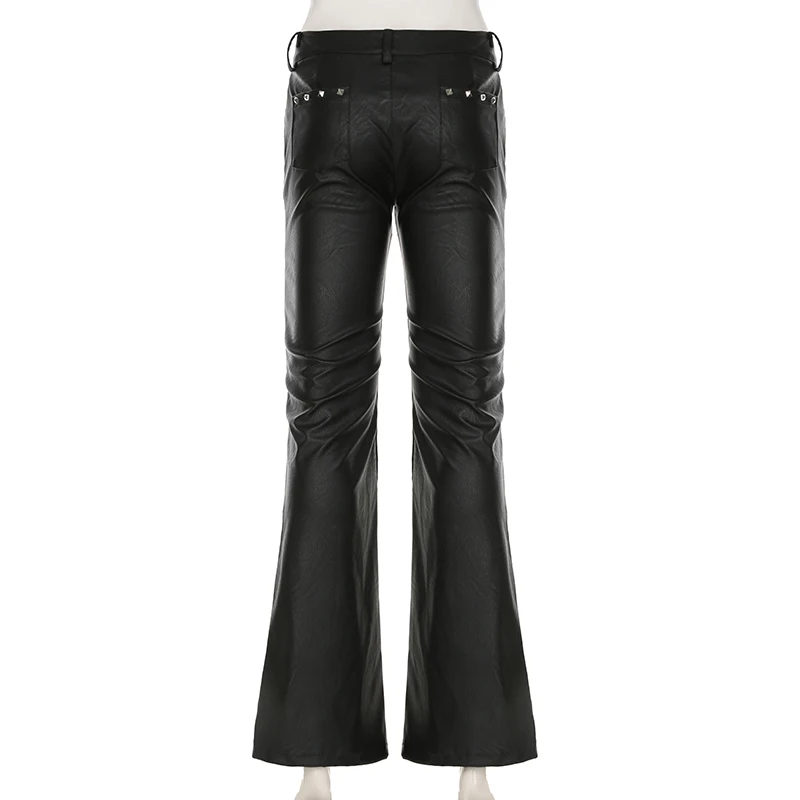 2025 Autunno Inverno Pantaloni PU da donna Vita bassa Goblin Core Pantaloni in ecopelle Fondo a campana Gotico giapponese Y2k Stretch 2000s Nuovo