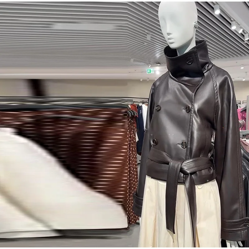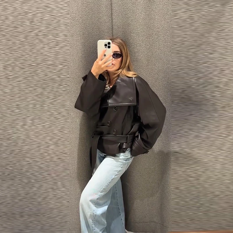 2025 Autunno Inverno Pu Giacca da donna in pelle Street Solid manica lunga bavero doppio petto cappotto femminile Casual Lady Outwear