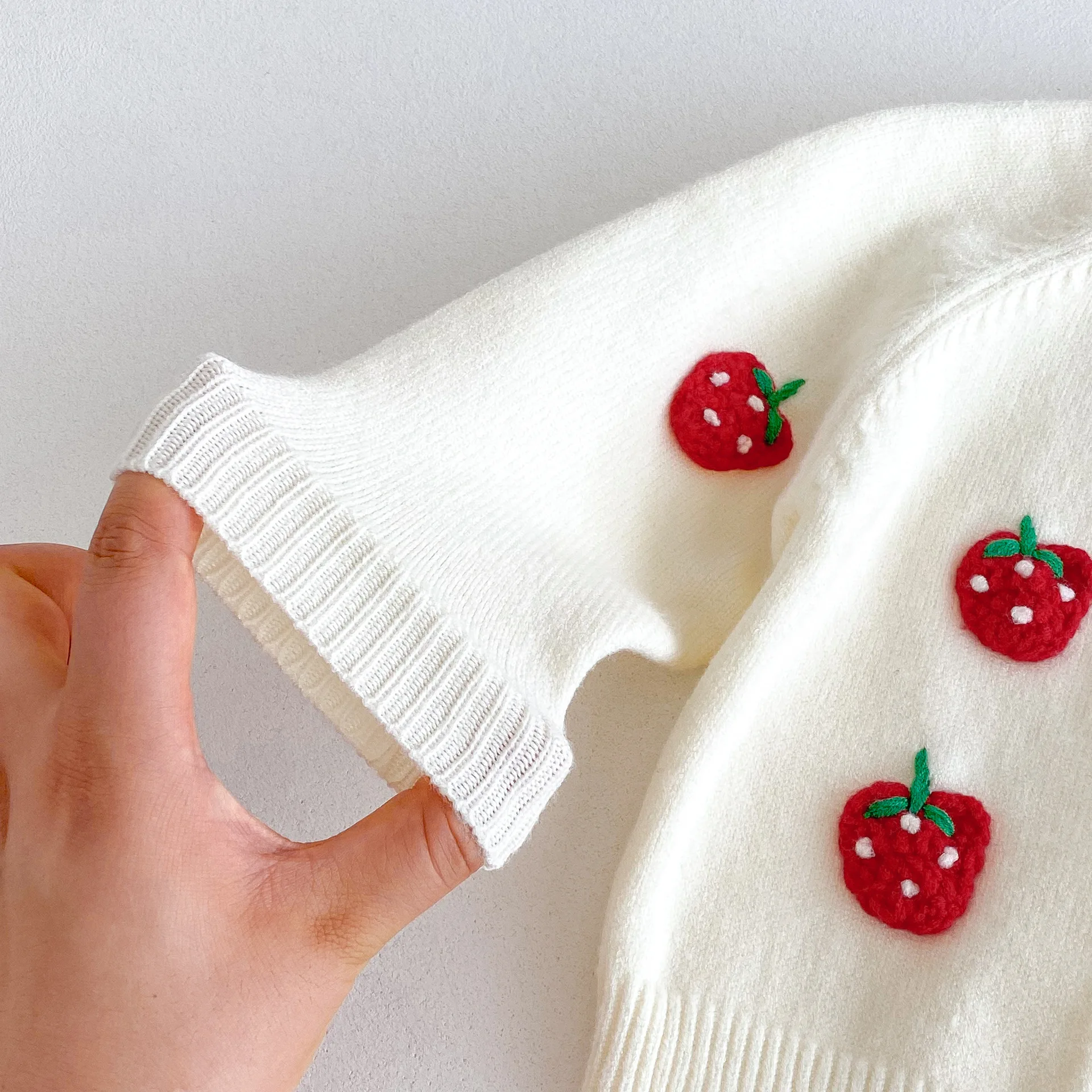 Set di abbigliamento per neonate in maglia autunnale del 2025, lavorato a maglia con fragola ricamata
