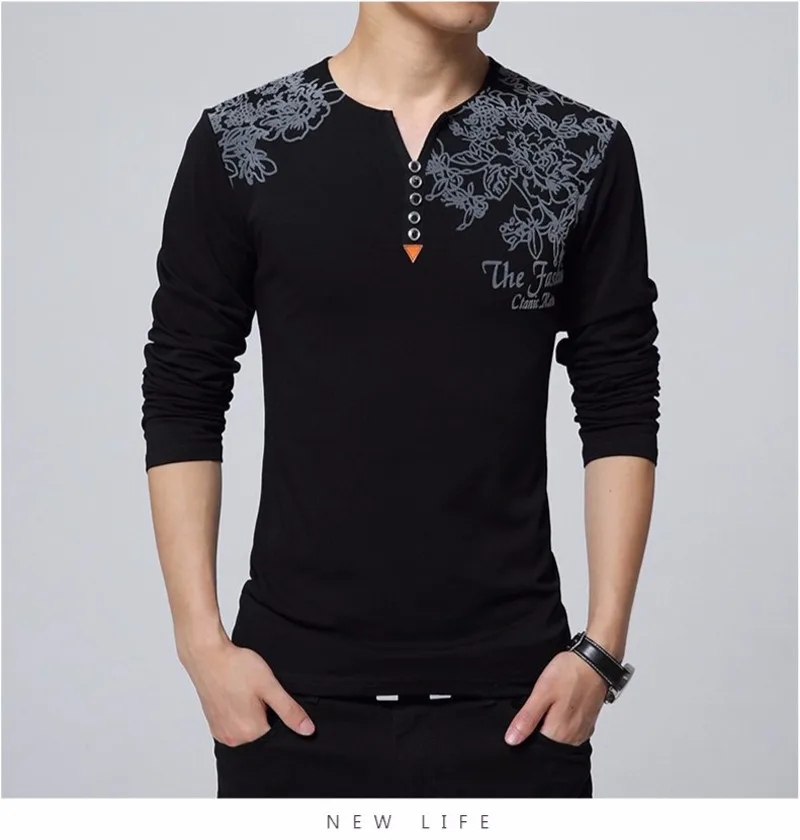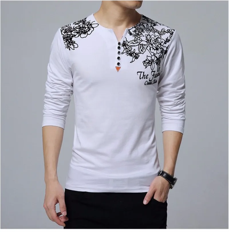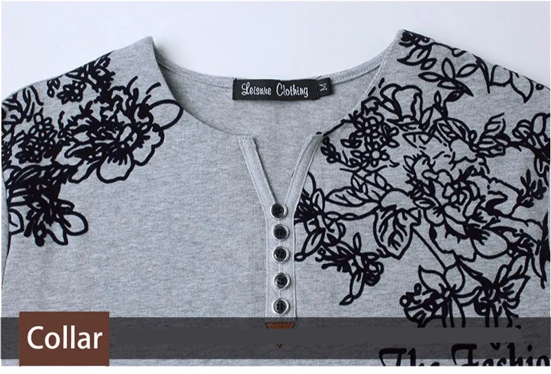 T-shirt da uomo con stampa floreale moda autunnale Colletto Henry Bottone Decora T-shirt a maniche lunghe per uomo Top Taglie forti 5XL Tipo di articolo: parti superiori