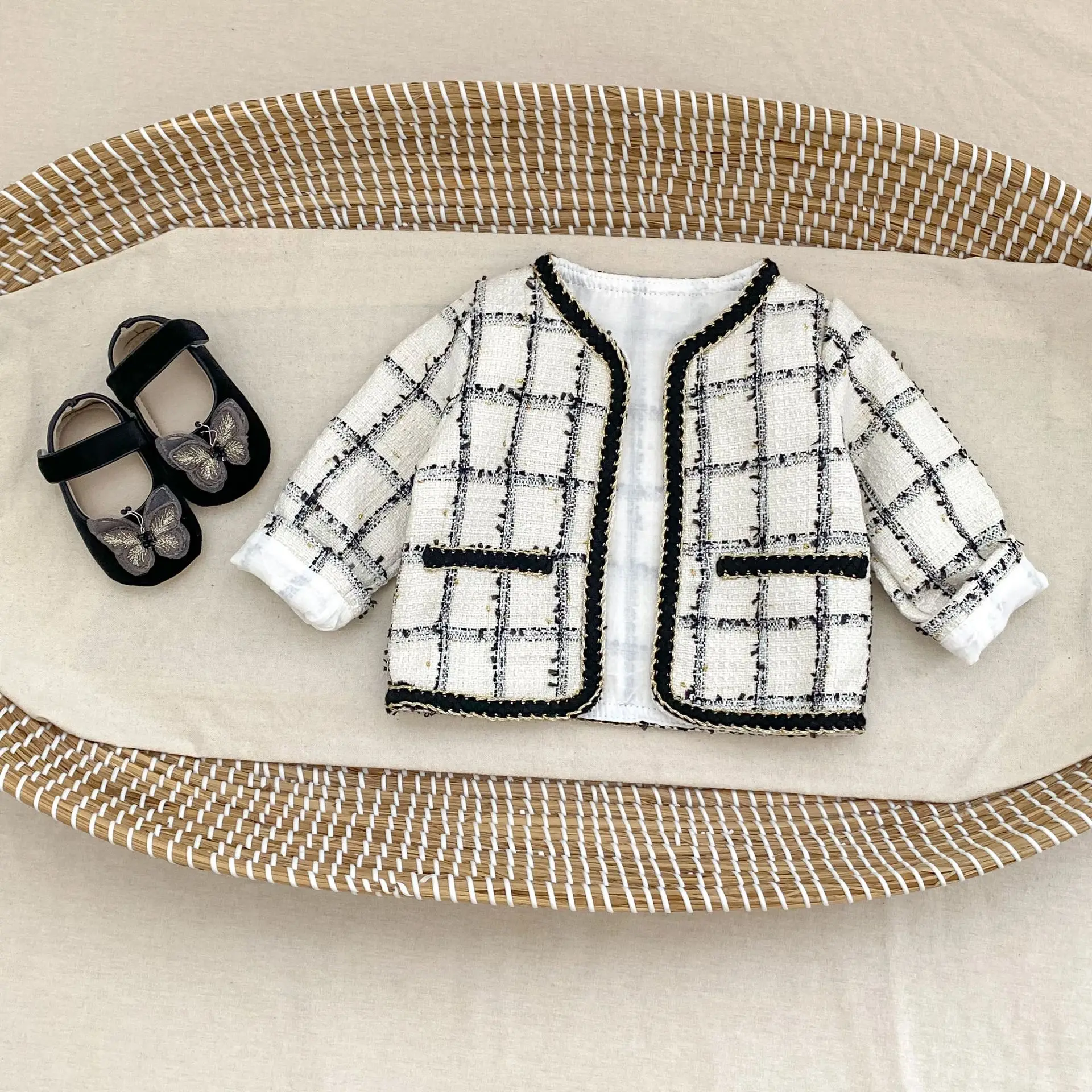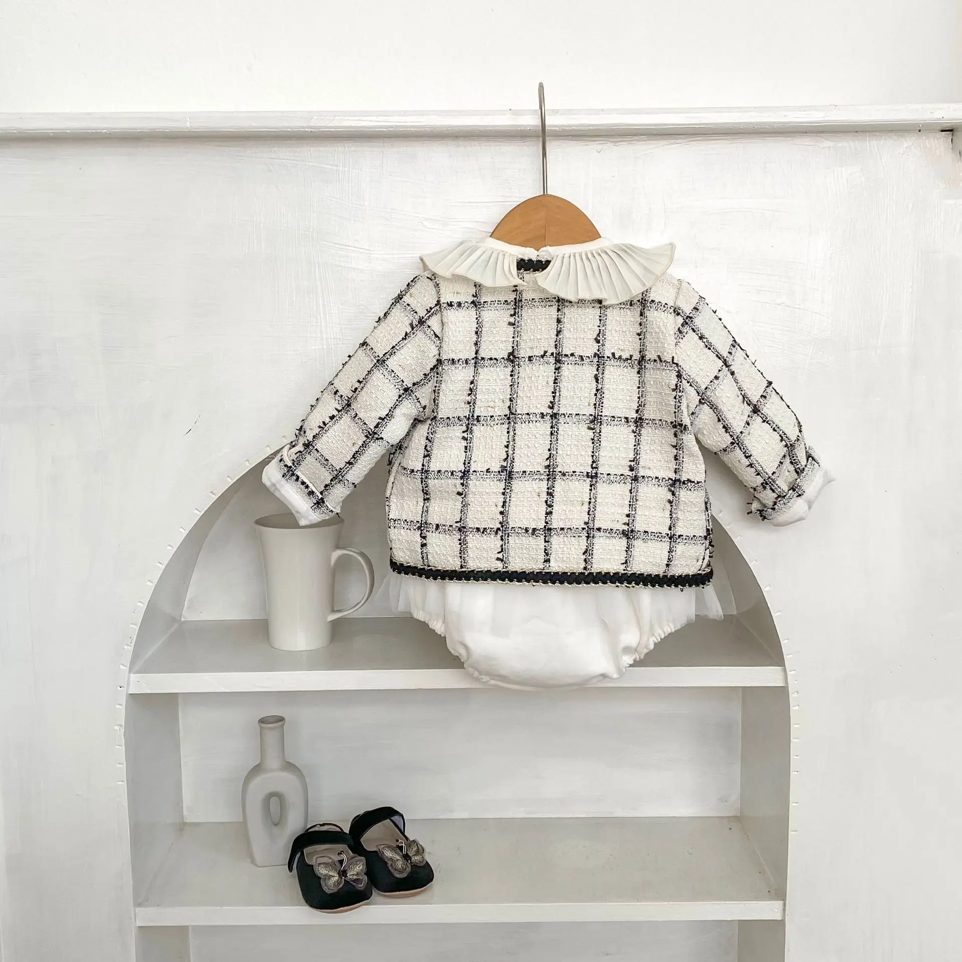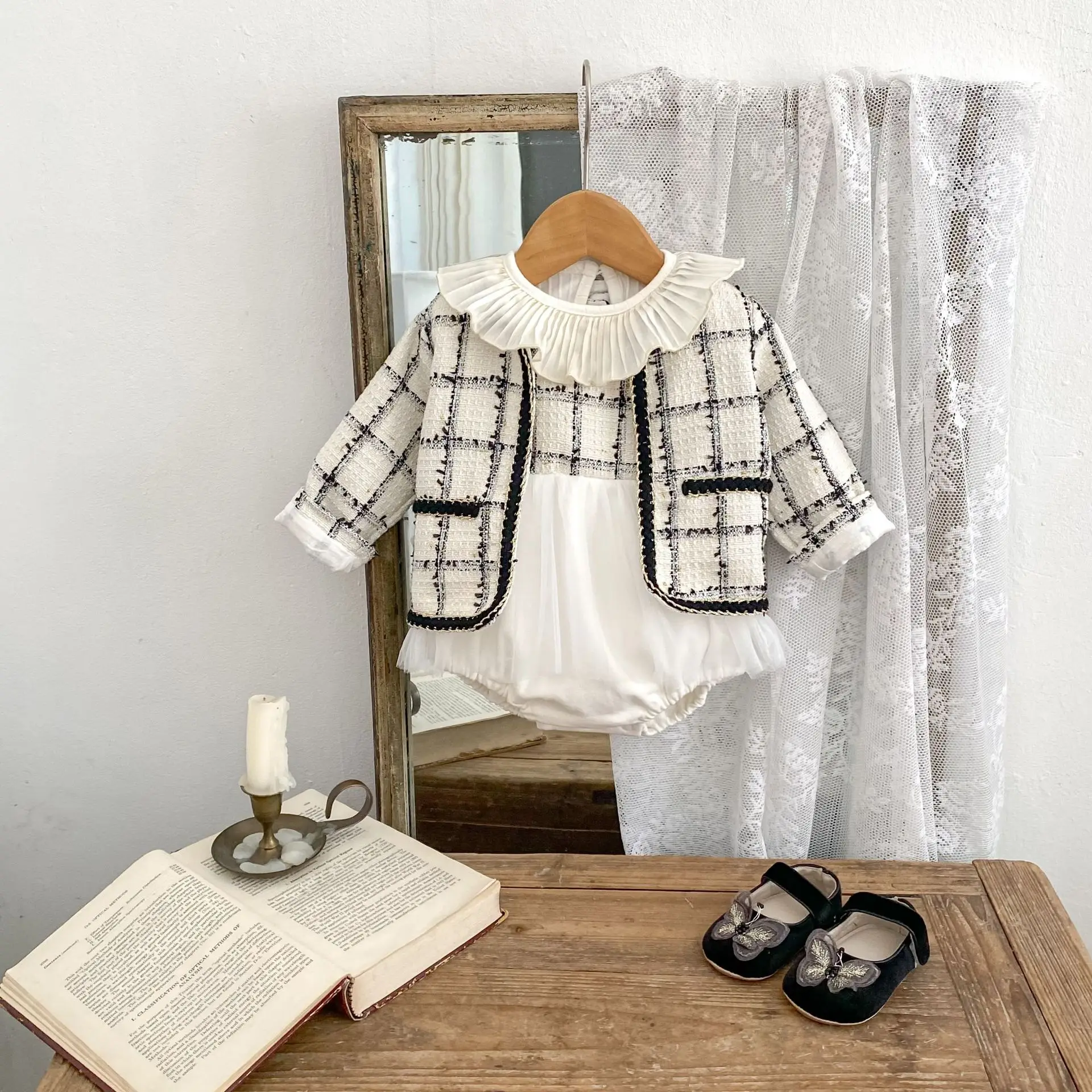 2025 Autunno New Baby Girl Cappotto scozzese a maniche lunghe in cotone Cute Princess Neonato Giacca per bambina Moda Abbigliamento infantile