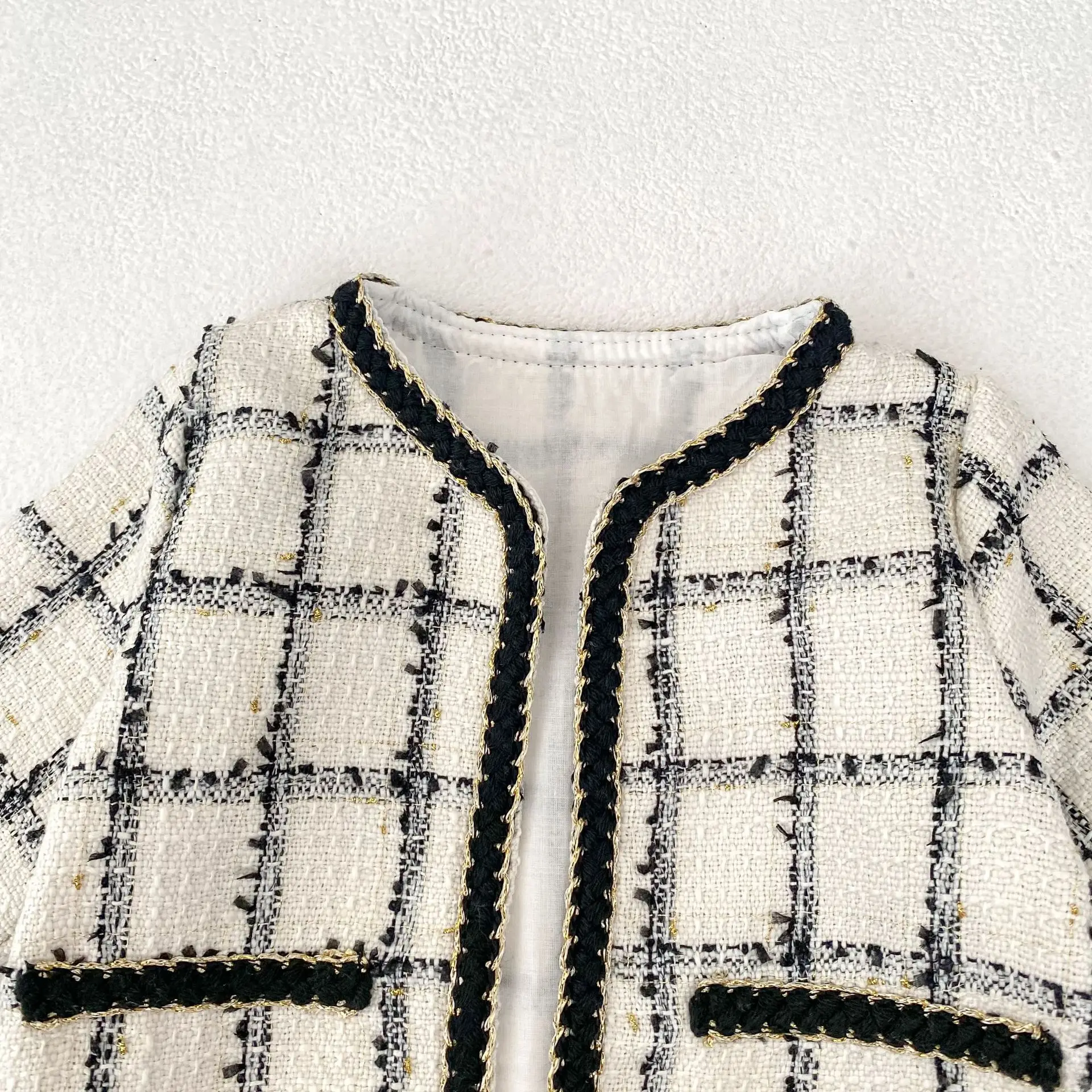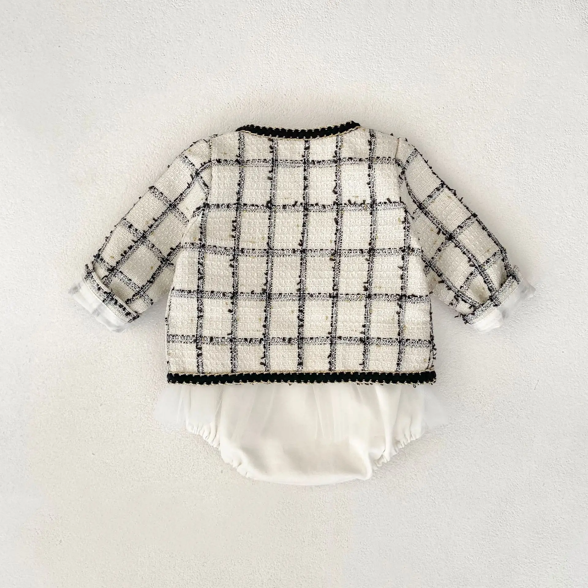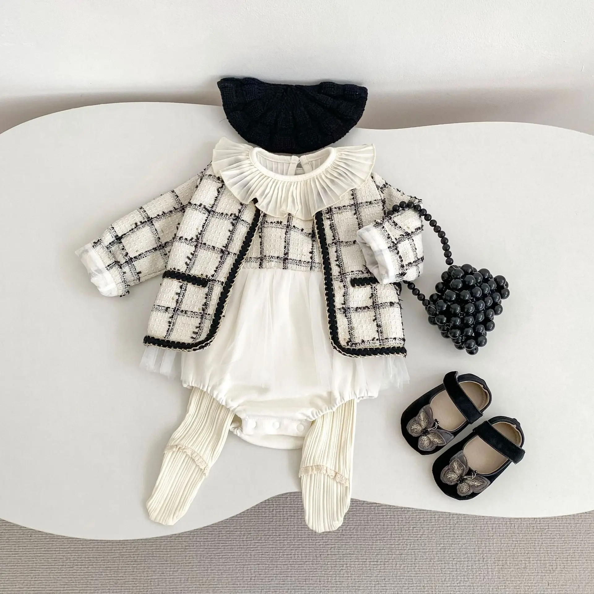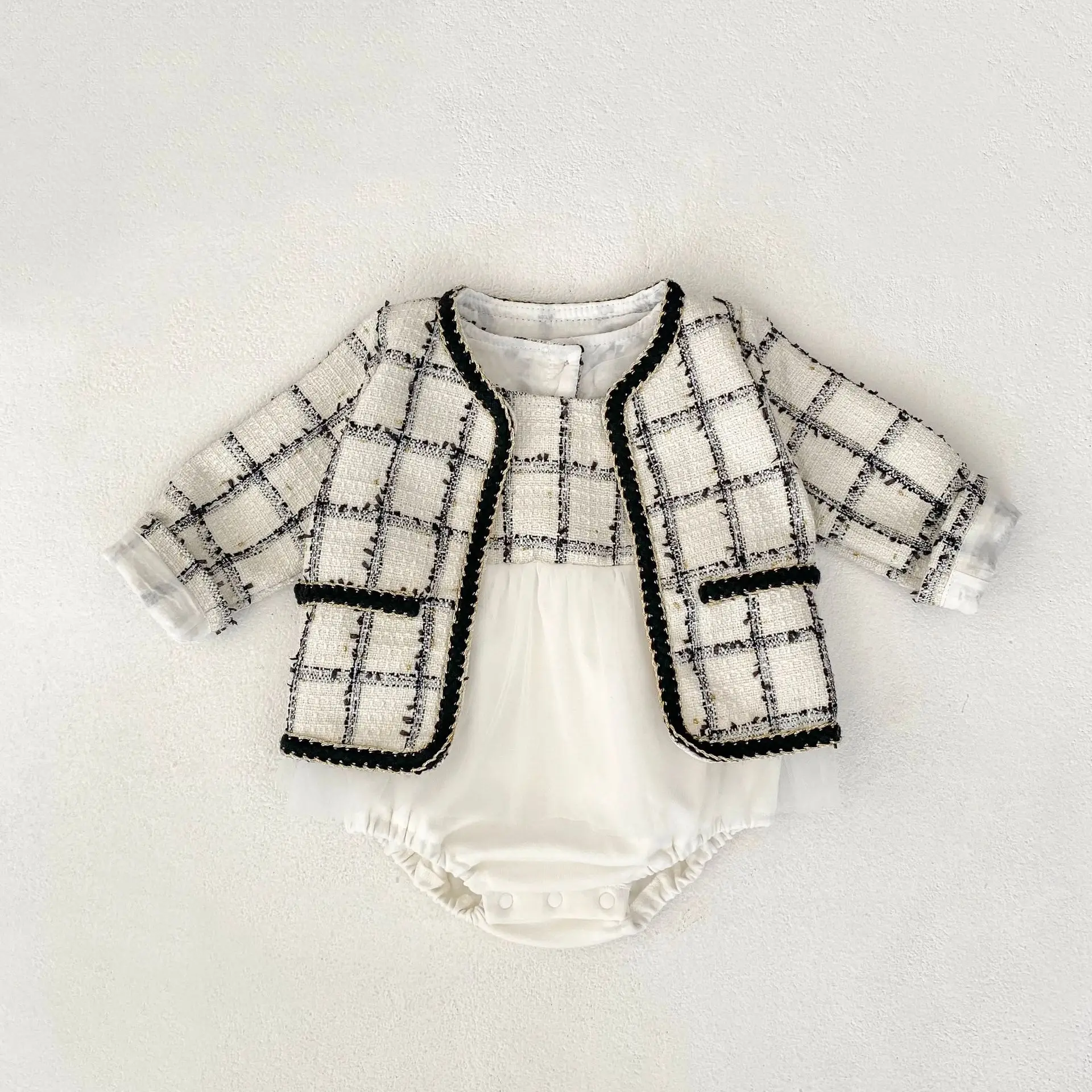 2025 Autunno New Baby Girl Cappotto scozzese a maniche lunghe in cotone Cute Princess Neonato Giacca per bambina Moda Abbigliamento infantile