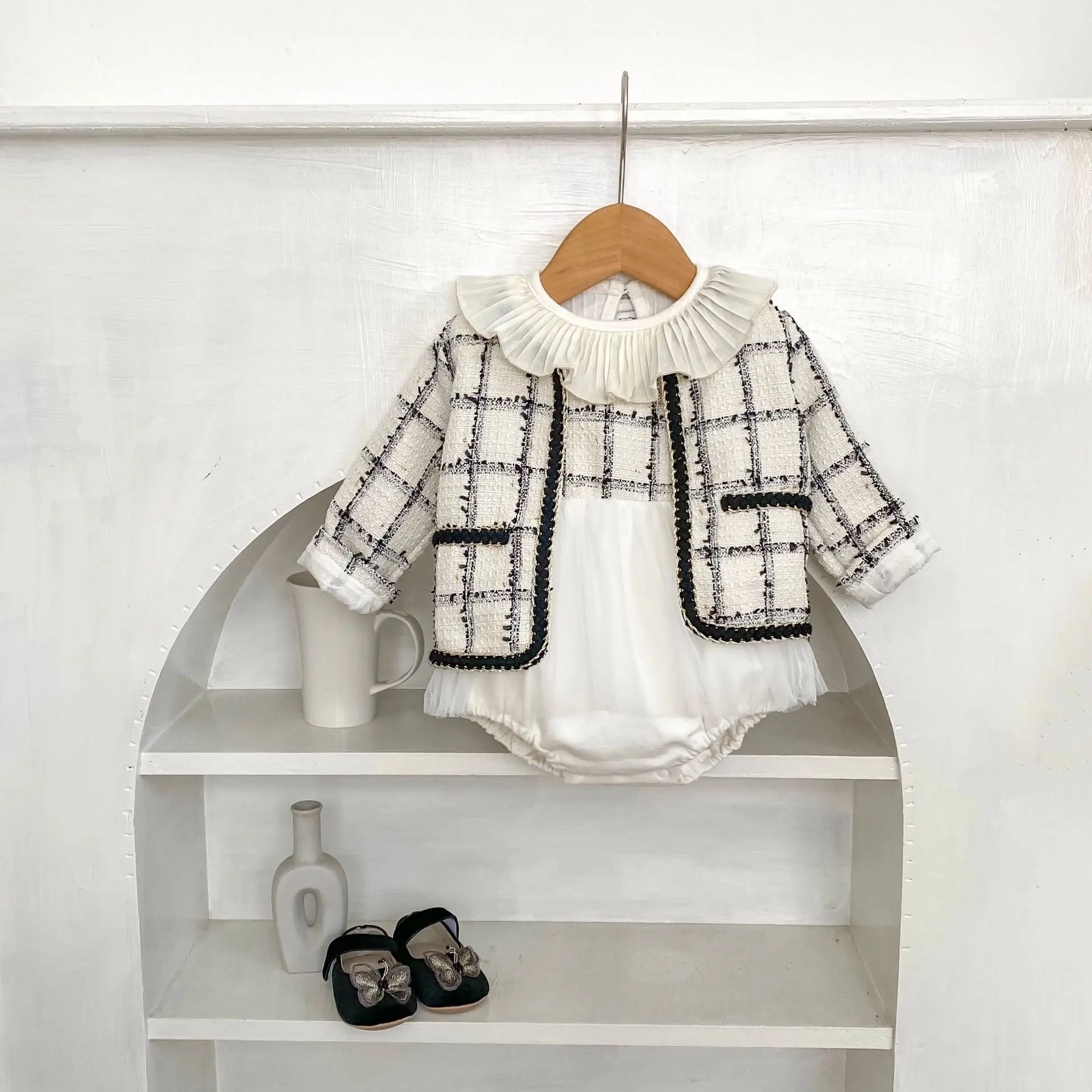 2025 Autunno New Baby Girl Cappotto scozzese a maniche lunghe in cotone Cute Princess Neonato Giacca per bambina Moda Abbigliamento infantile
