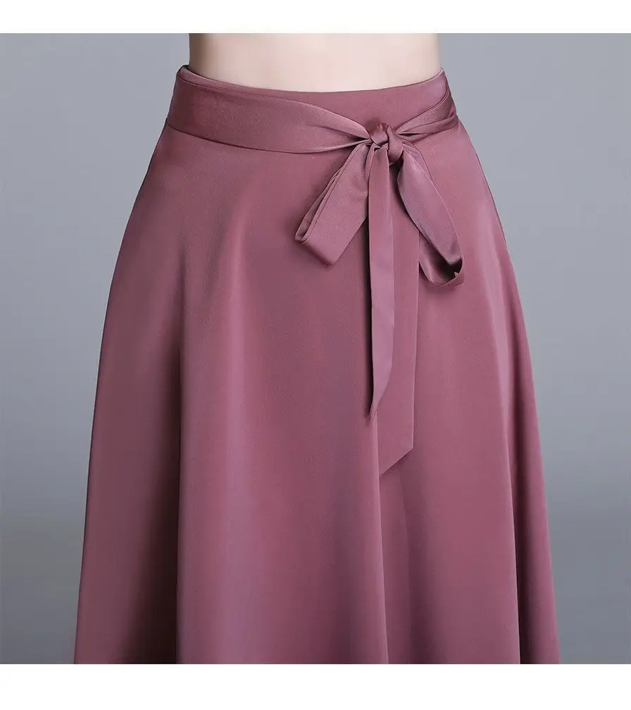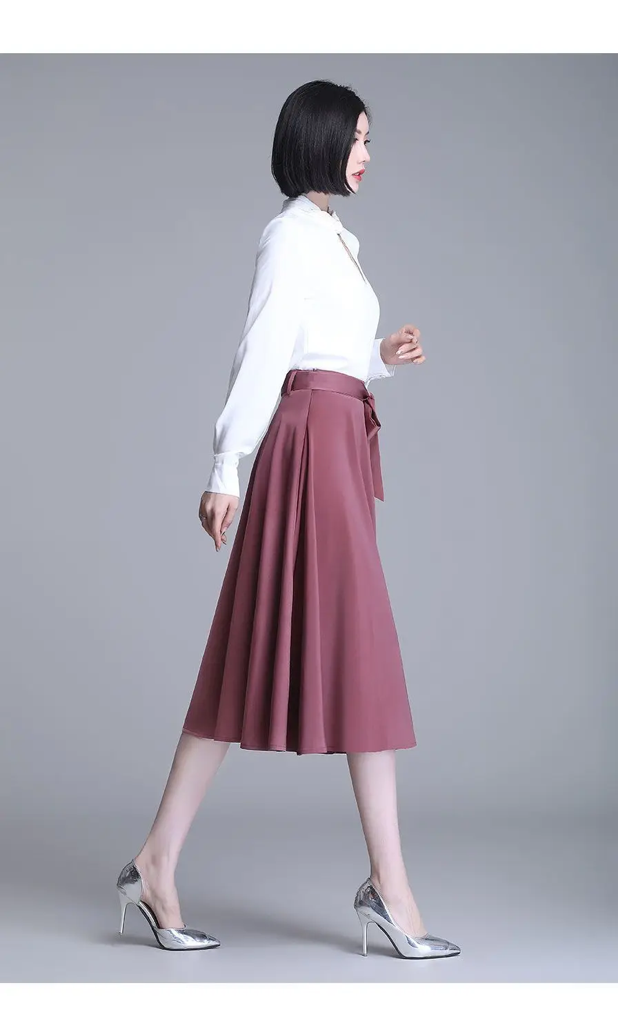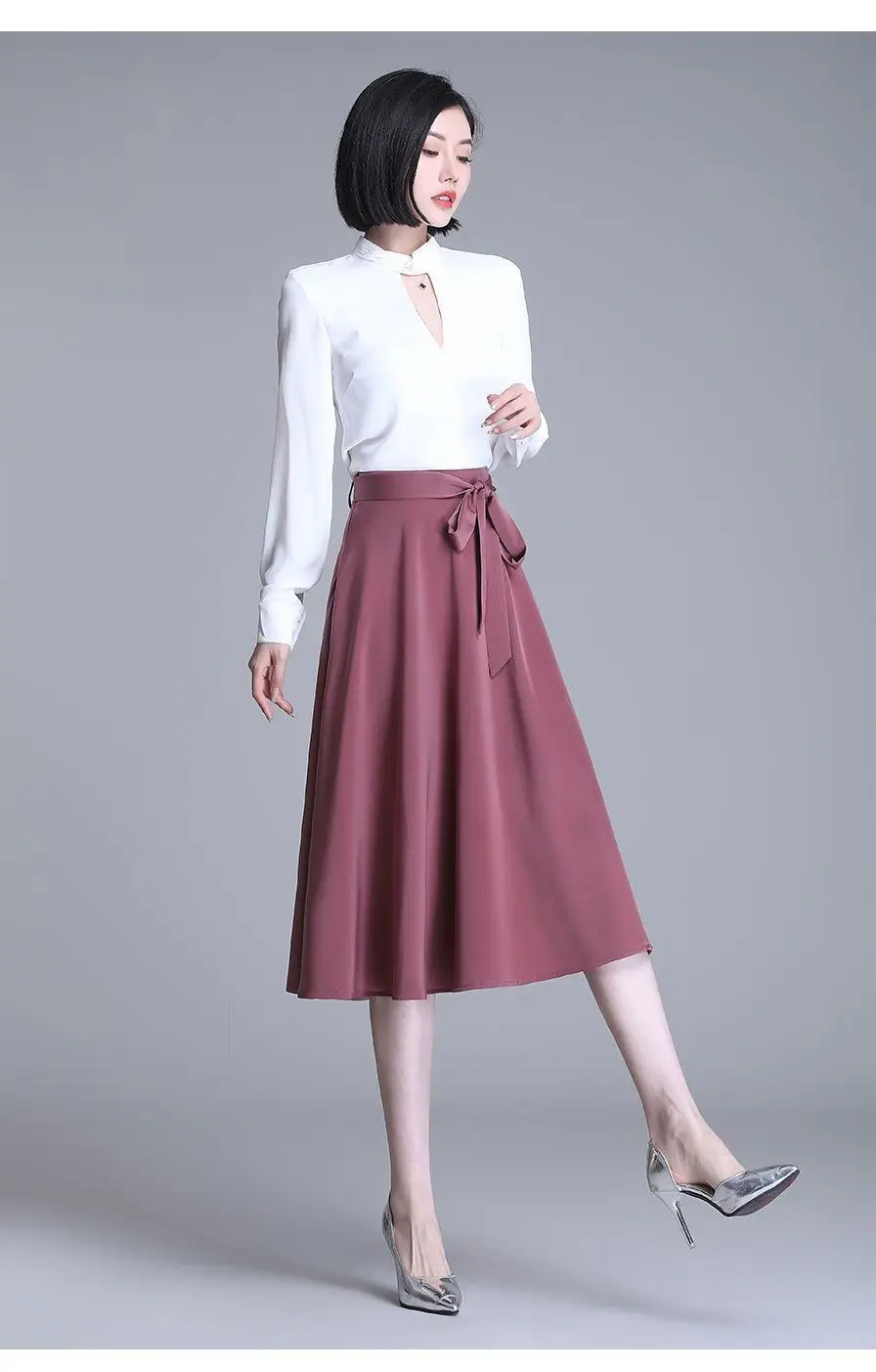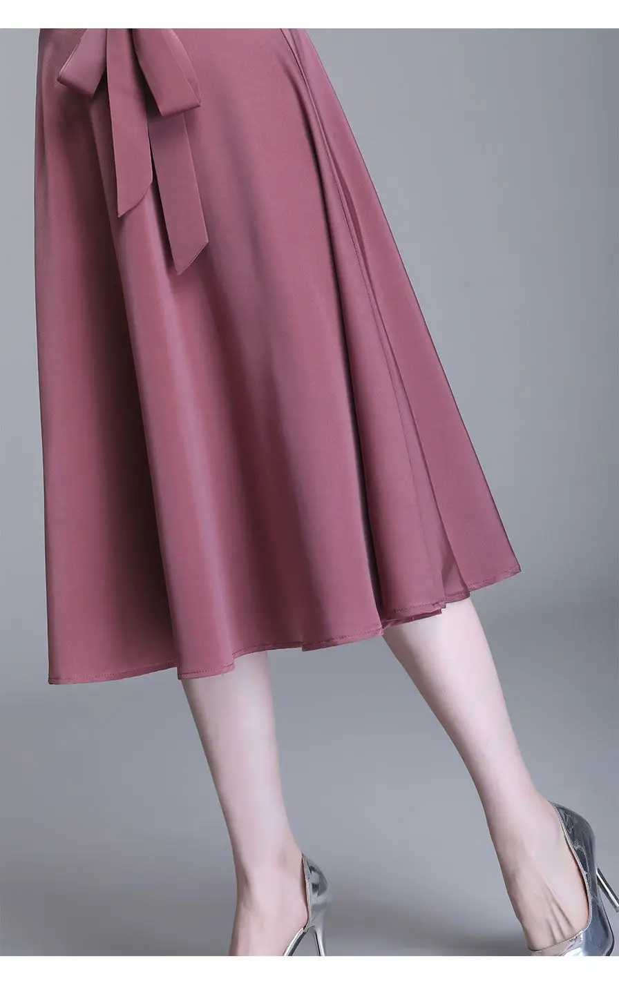 2025 Autunno New Office Lady Semplicità Allacciatura a vita alta Gonna a trapezio Donna Moda coreana Arco Gonna a pieghe tinta unita Donna