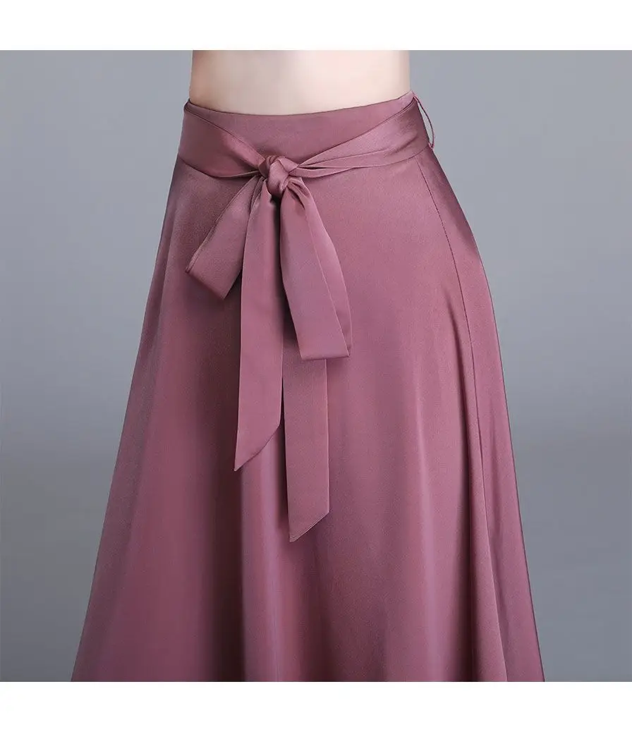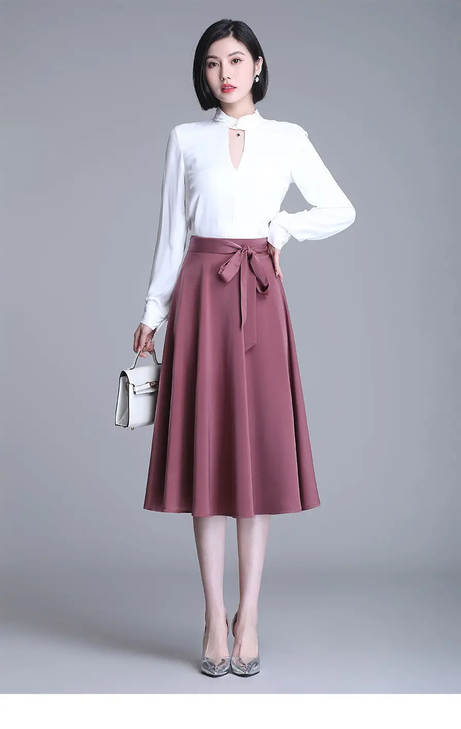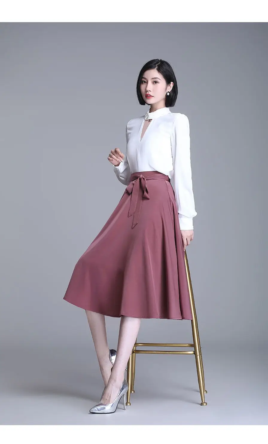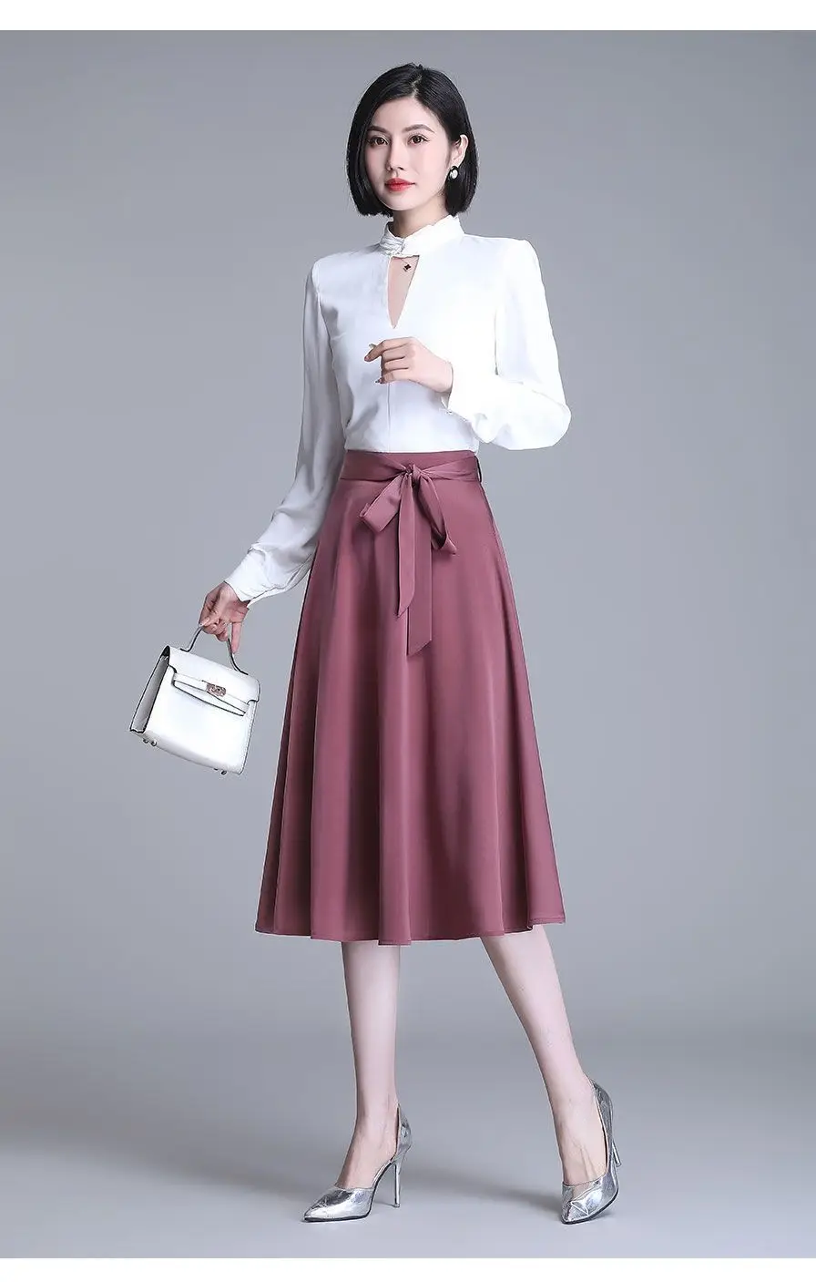 2025 Autunno New Office Lady Semplicità Allacciatura a vita alta Gonna a trapezio Donna Moda coreana Arco Gonna a pieghe tinta unita Donna