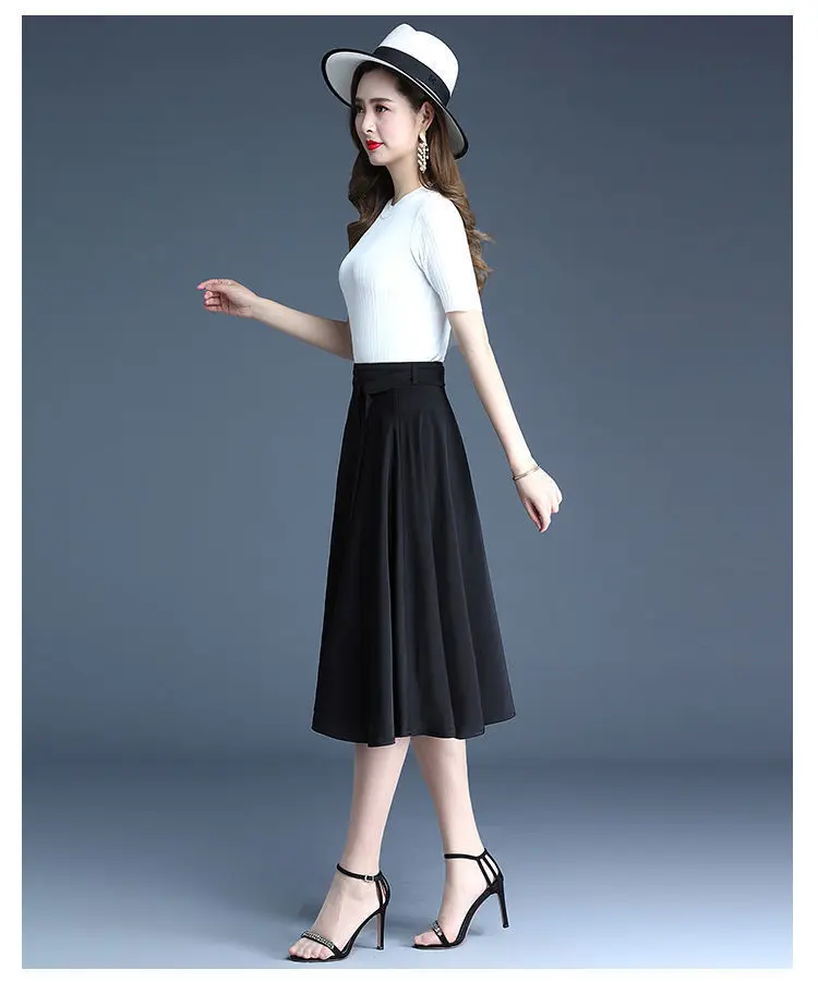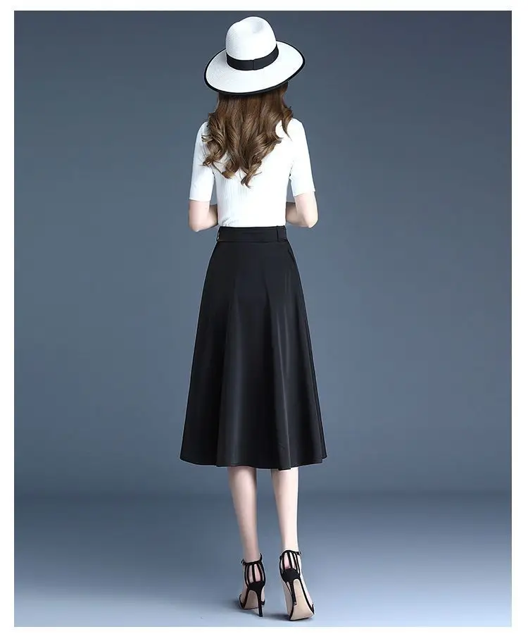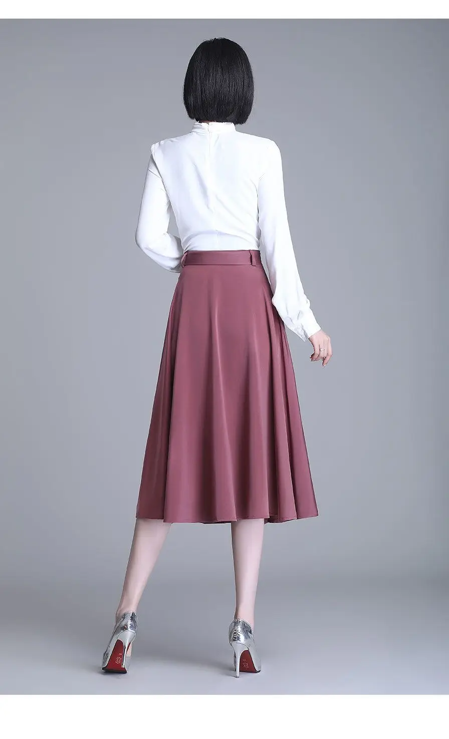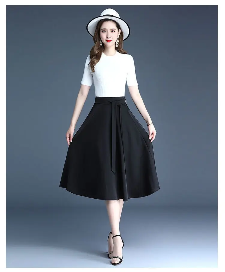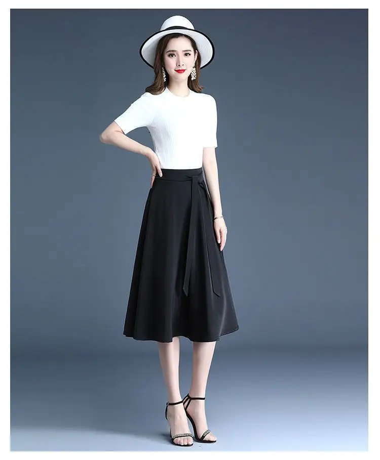 2025 Autunno New Office Lady Semplicità Allacciatura a vita alta Gonna a trapezio Donna Moda coreana Arco Gonna a pieghe tinta unita Donna