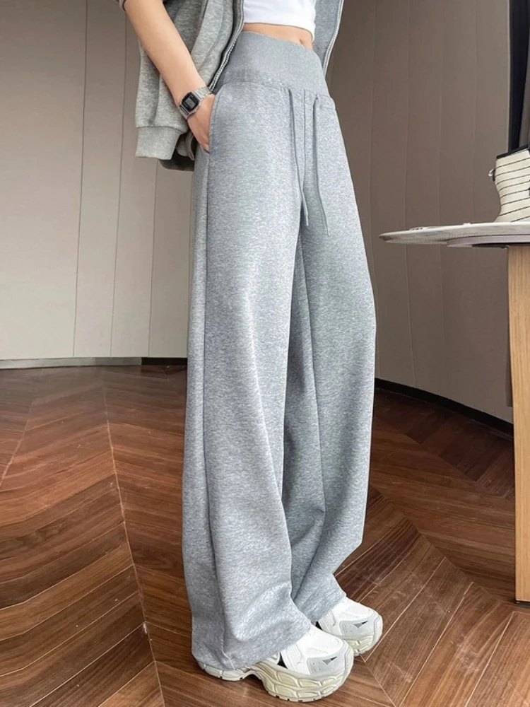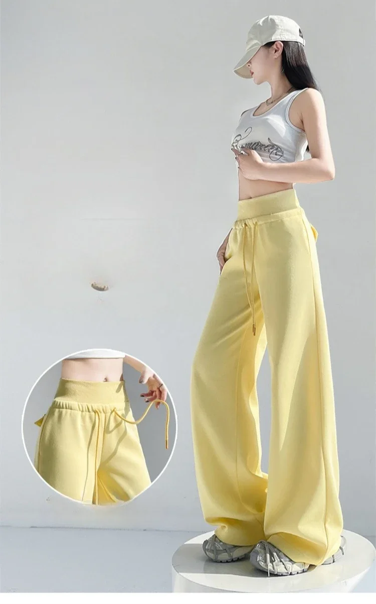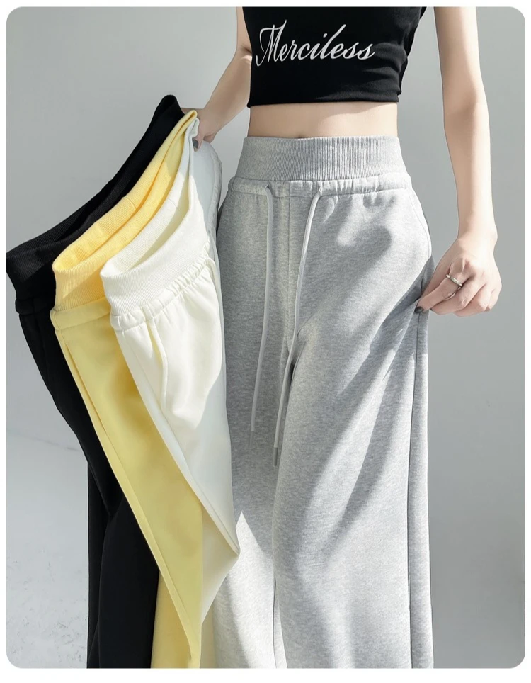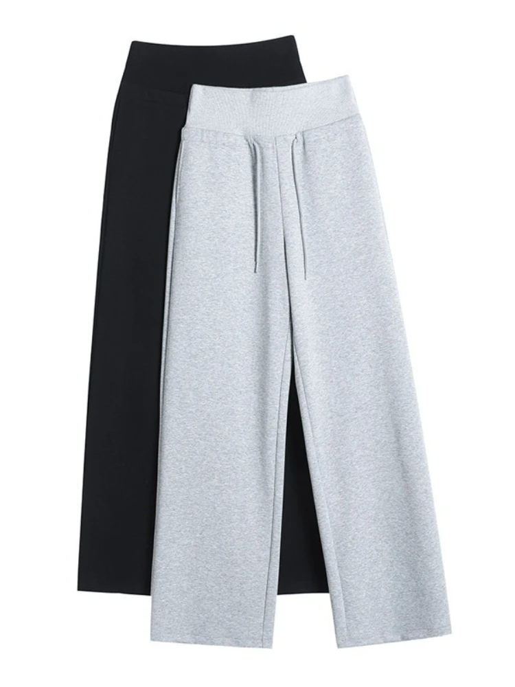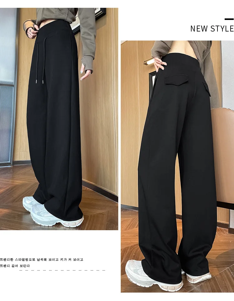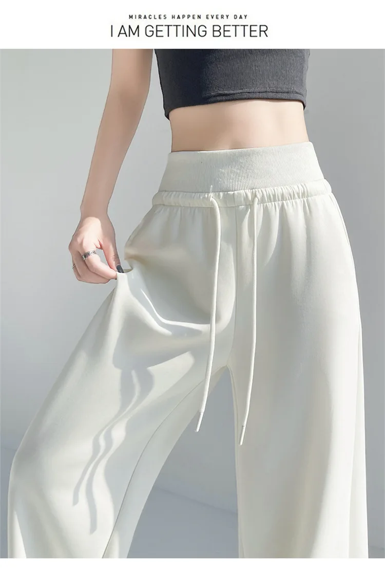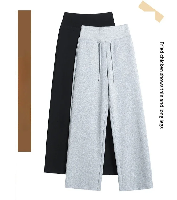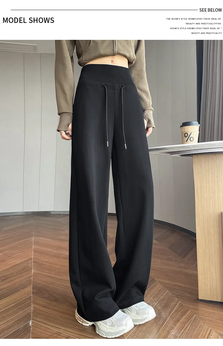 2025 Autunno Nuovi Pantaloni sportivi con coulisse Pantaloni dritti a vita alta grigi da donna Pantaloni neri casual versatili semplici da donna
