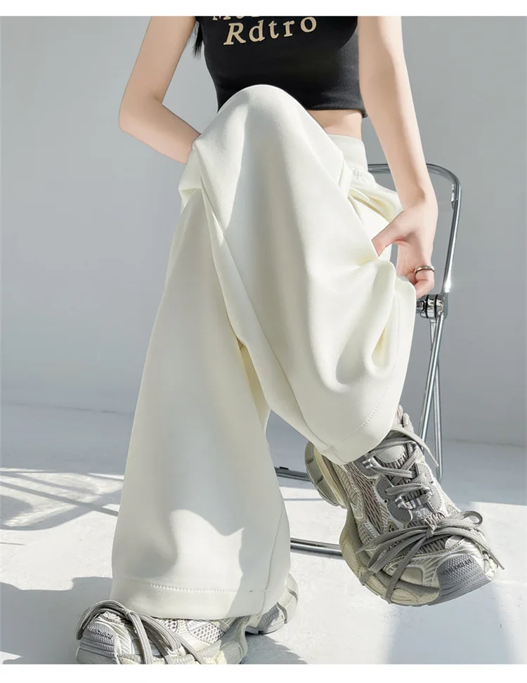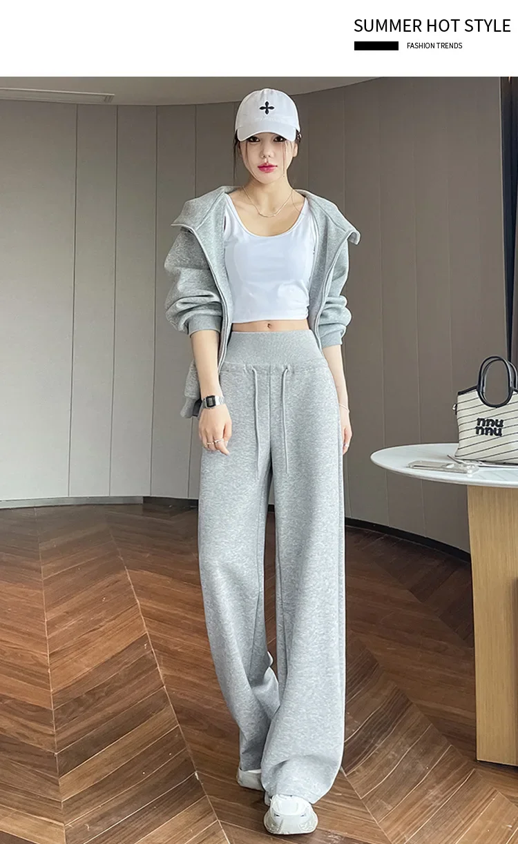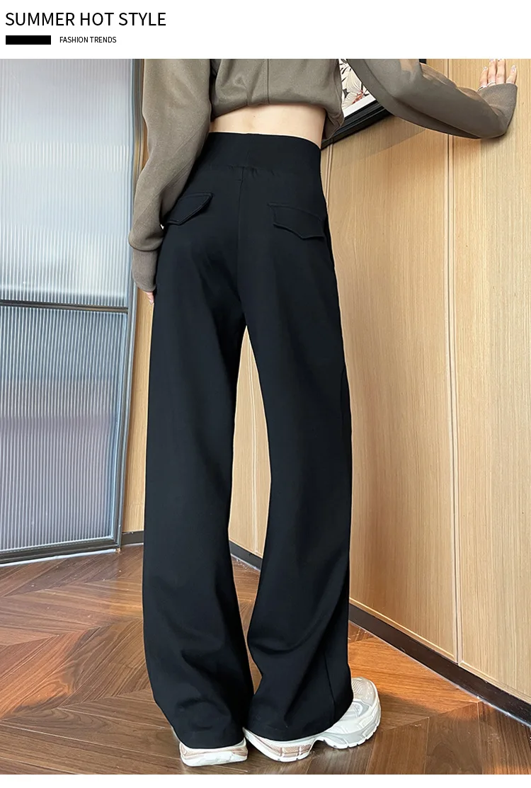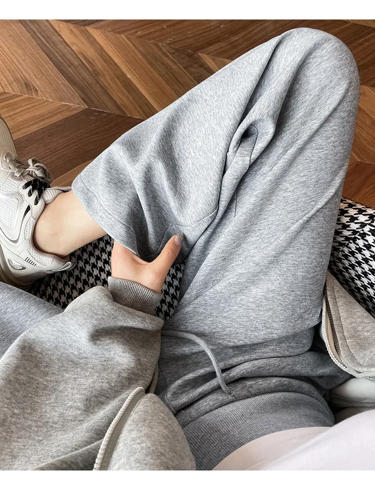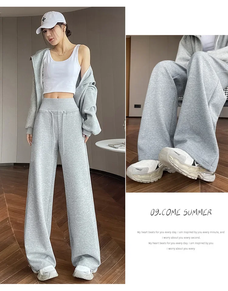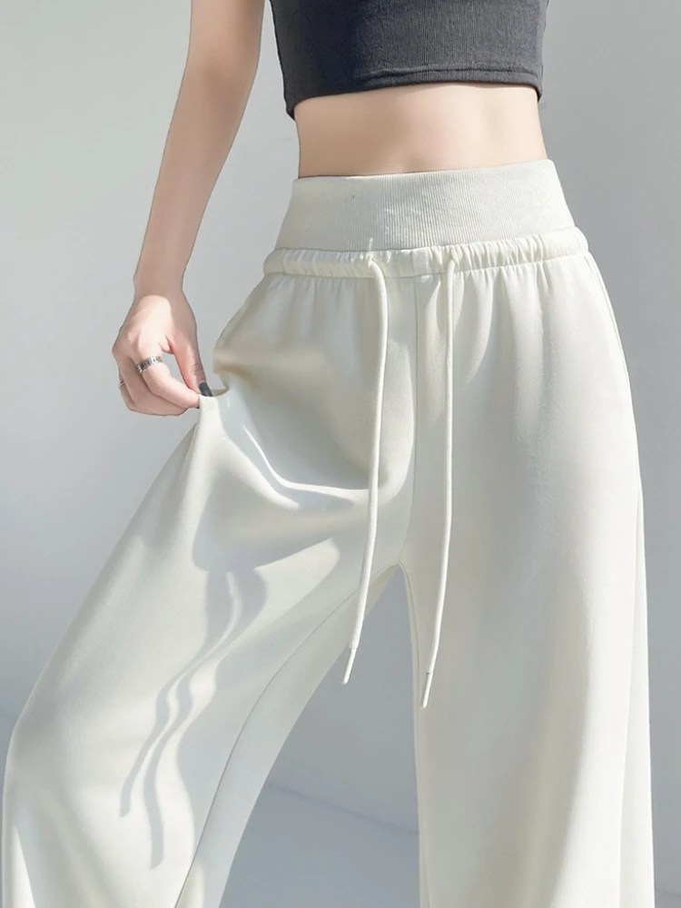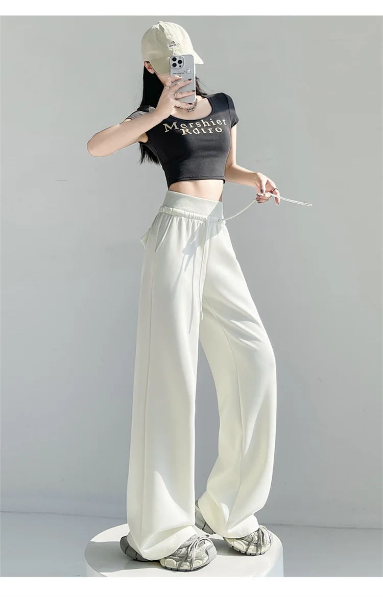 2025 Autunno Nuovi Pantaloni sportivi con coulisse Pantaloni dritti a vita alta grigi da donna Pantaloni neri casual versatili semplici da donna