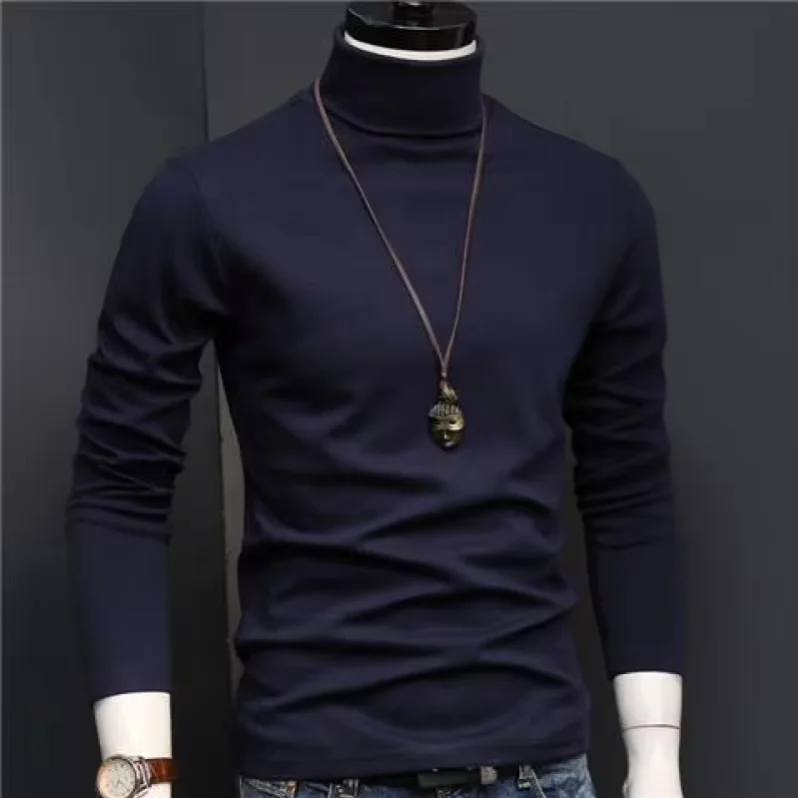 2025 biancheria intima calda da uomo in tinta unita alla moda temperamento collo alto autunno e inverno camicia base a maniche lunghe top slim fit