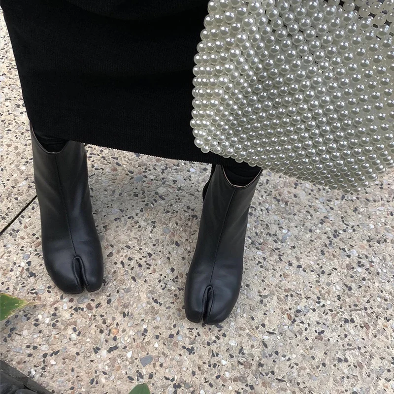 2025 Brand Design Tabi Stivali Split Toe Chunky Tacco alto Stivali da donna in pelle Zapatos Mujer Moda Autunno Scarpe da donna Botas Mujer 12025 Brand Design Tabi Stivali Split Toe Chunky Tacco alto Stivali da donna in pelle Zapatos Mujer Moda Autunno Scarpe da donna Botas Mujer