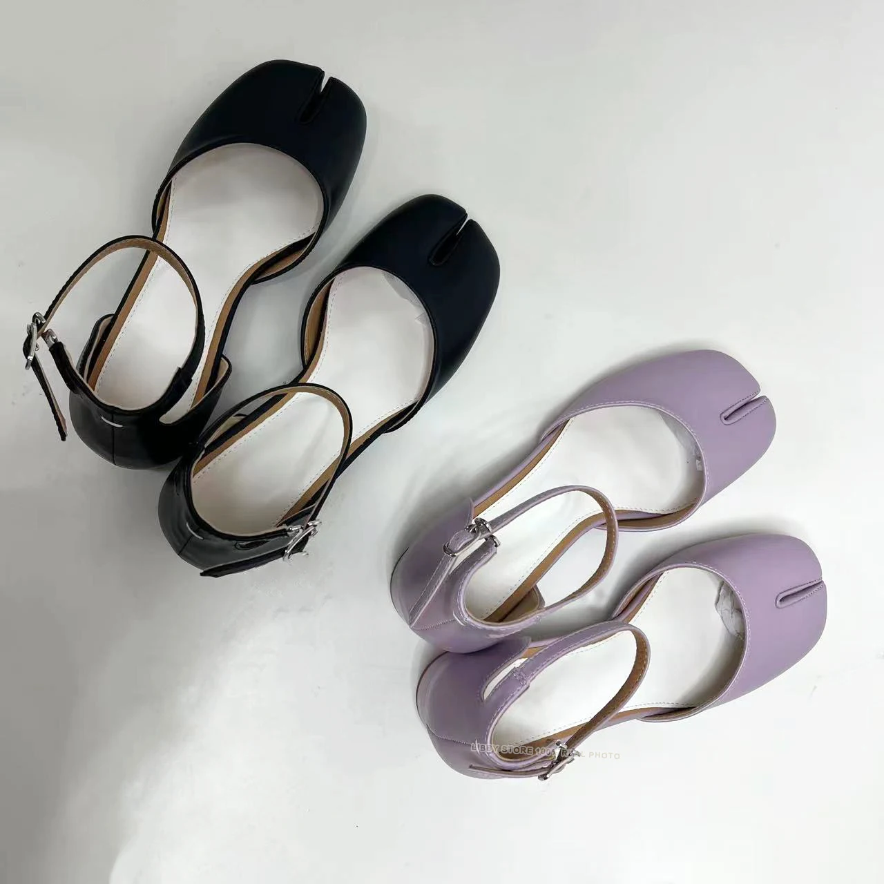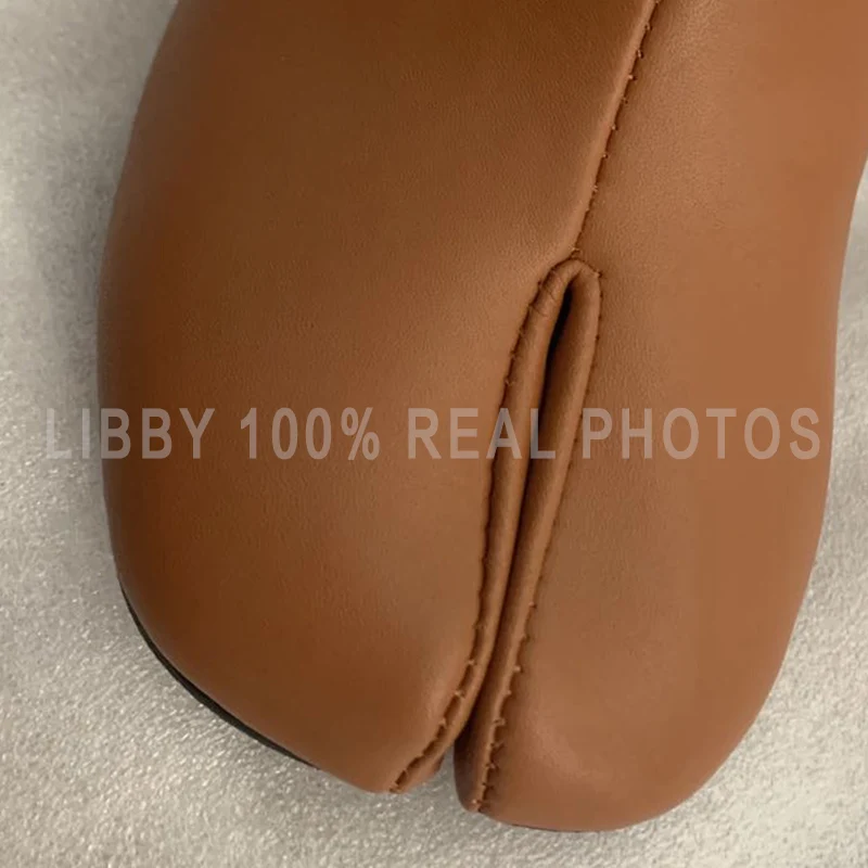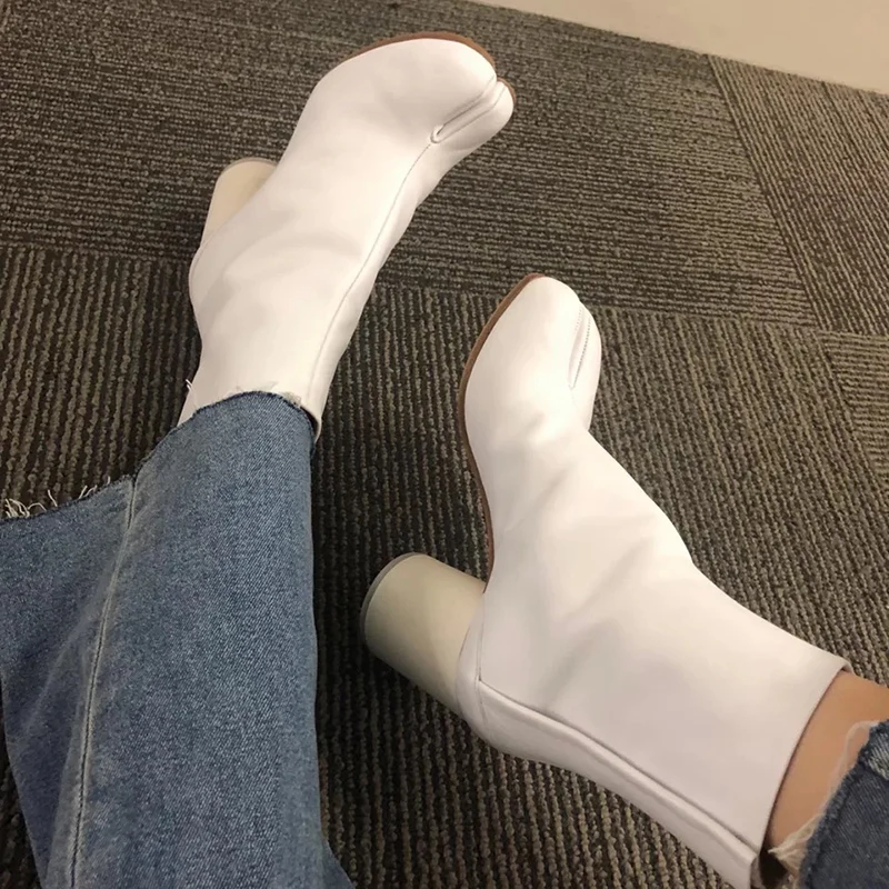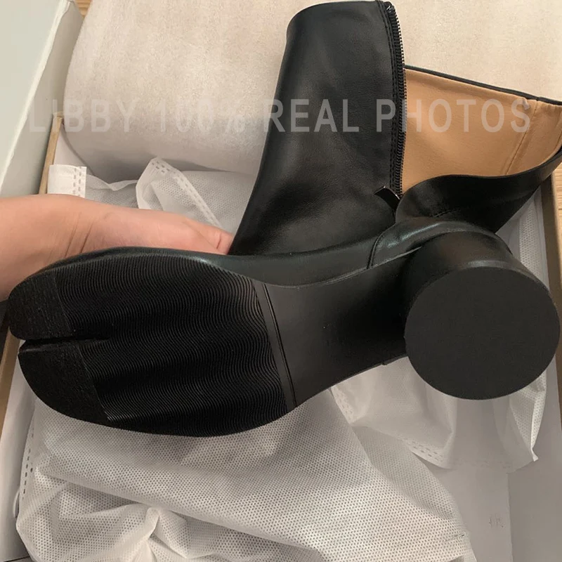 2025 Brand Design Tabi Stivali Split Toe Chunky Tacco alto Stivali da donna in pelle Zapatos Mujer Moda Autunno Scarpe da donna Botas Mujer