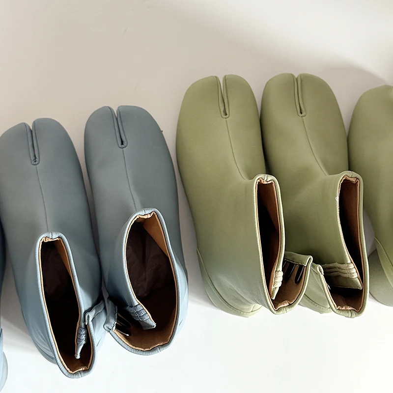 2025 Brand Design Tabi Stivali Split Toe Chunky Tacco alto Stivali da donna in pelle Zapatos Mujer Moda Autunno Scarpe da donna Botas Mujer