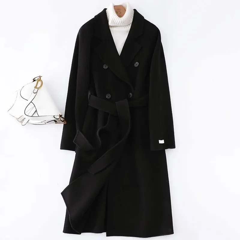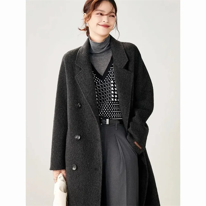 2025 Cappotto di lana double face con ondulazione dell’acqua di fascia alta Cappotto lungo autunno inverno stile accappatoio da donna per capispalla femminile