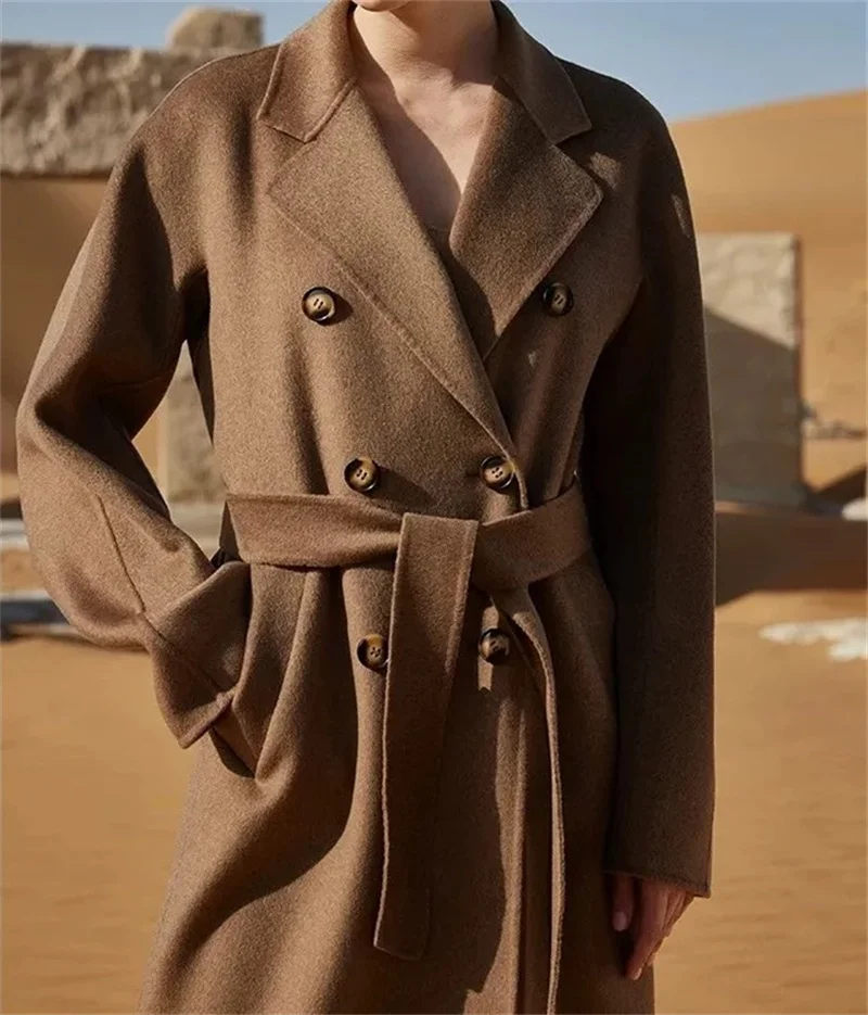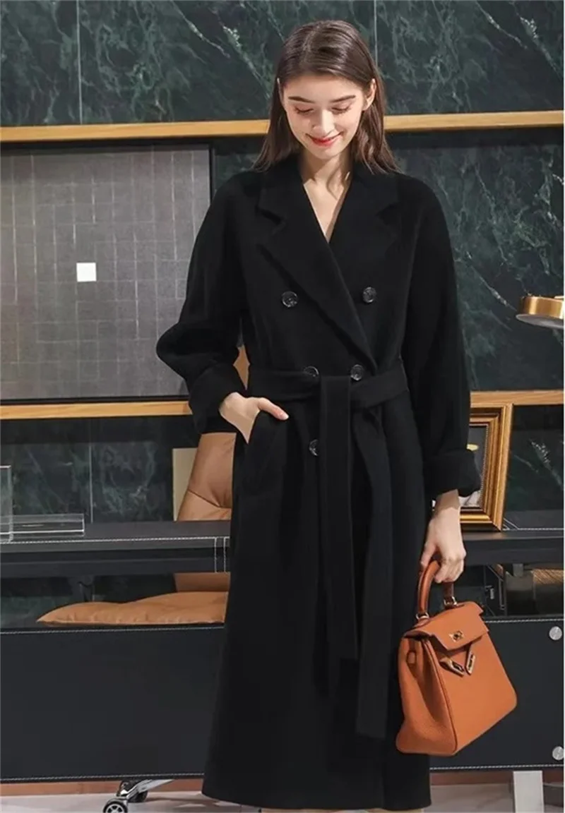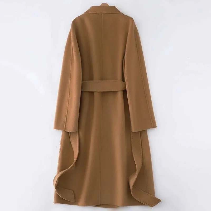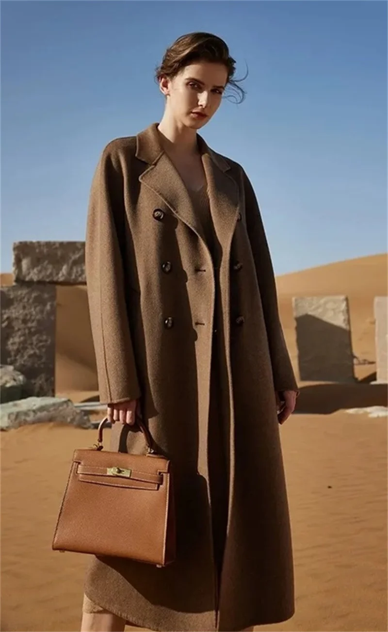 2025 Cappotto di lana double face con ondulazione dell’acqua di fascia alta Cappotto lungo autunno inverno stile accappatoio da donna per capispalla femminile