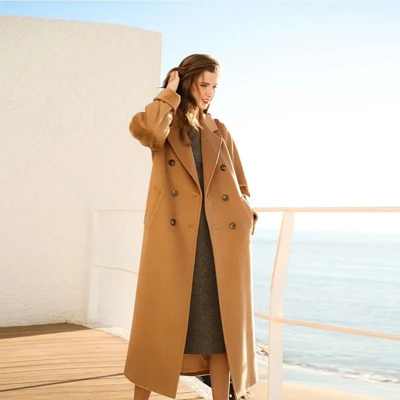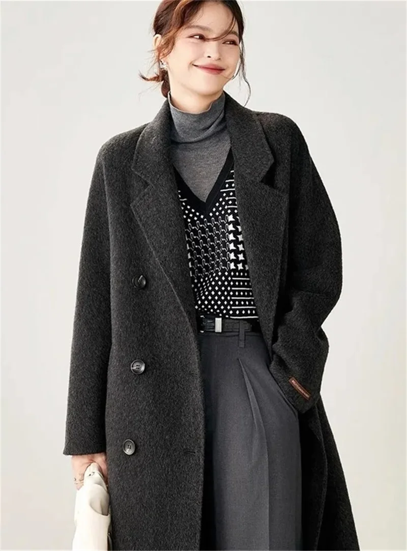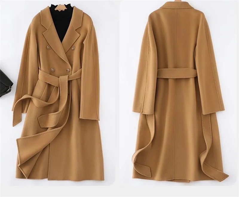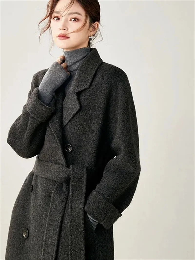 2025 Cappotto di lana double face con ondulazione dell’acqua di fascia alta Cappotto lungo autunno inverno stile accappatoio da donna per capispalla femminile