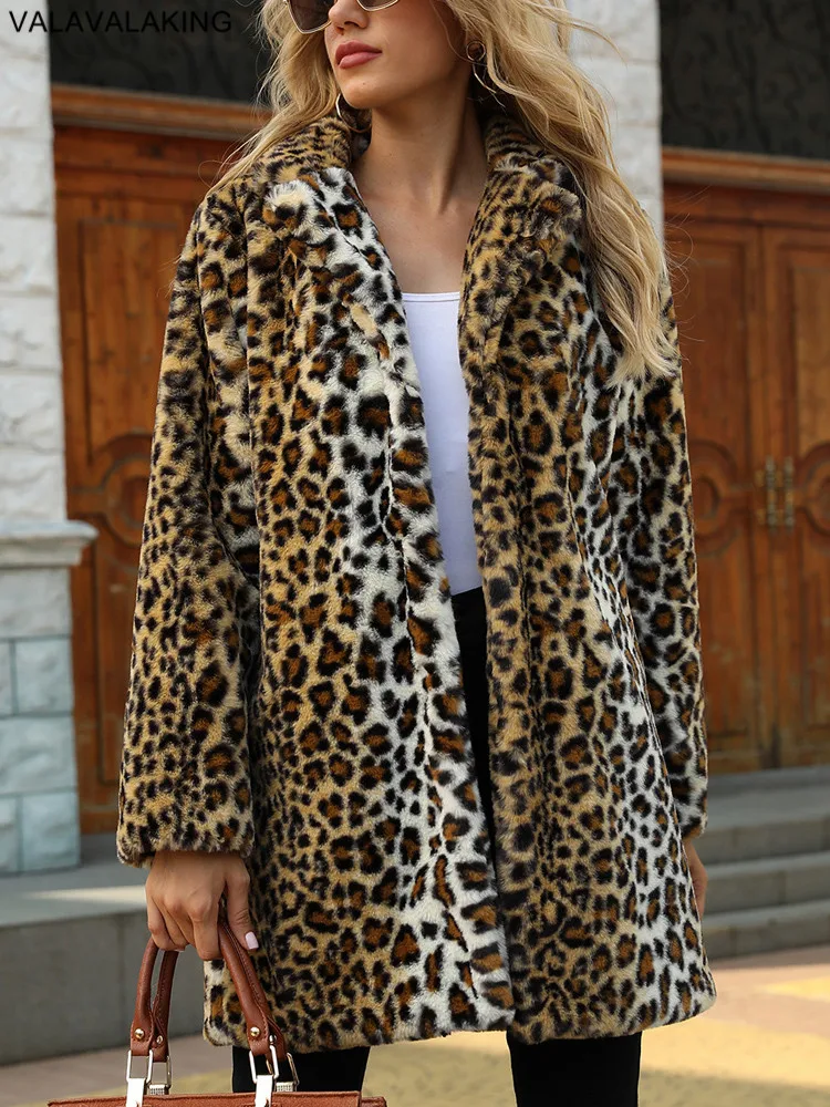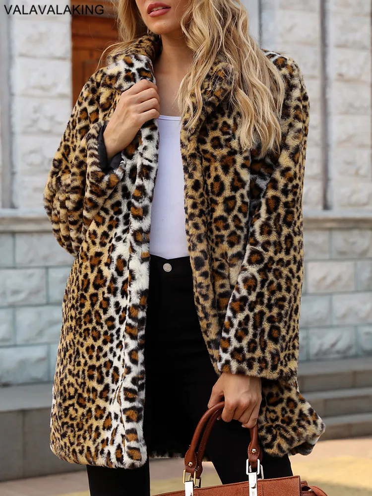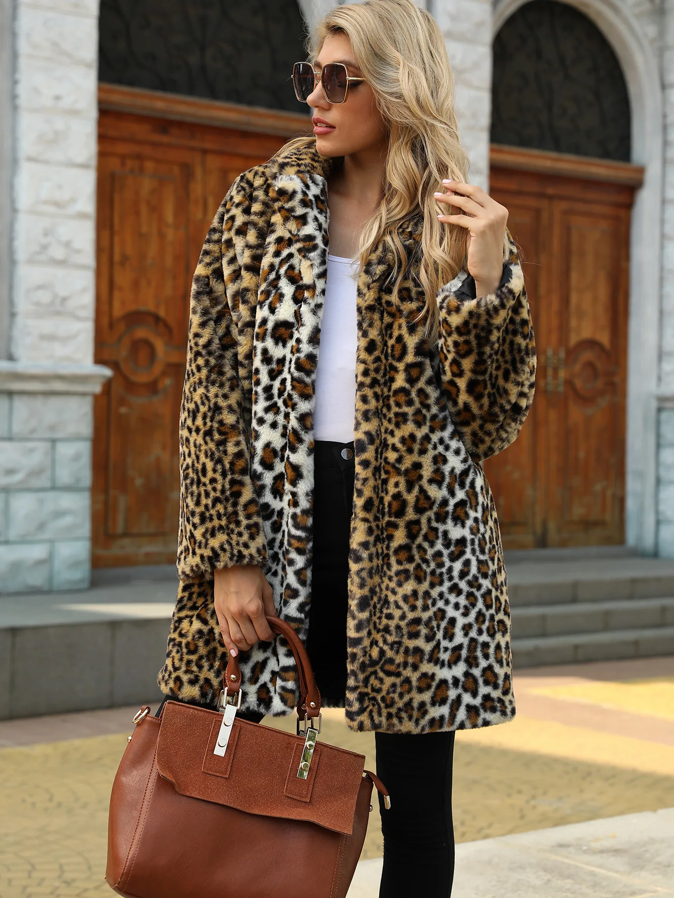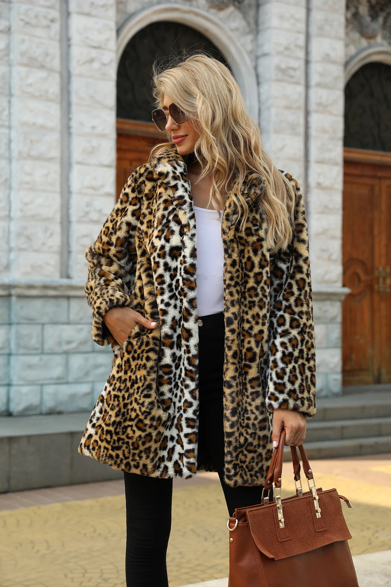2025 Cappotto invernale in pelliccia sintetica con stampa leopardata da donna Casual manica lunga soffice giacca in peluche Lady Couverture Colletto spesso peloso Outwear