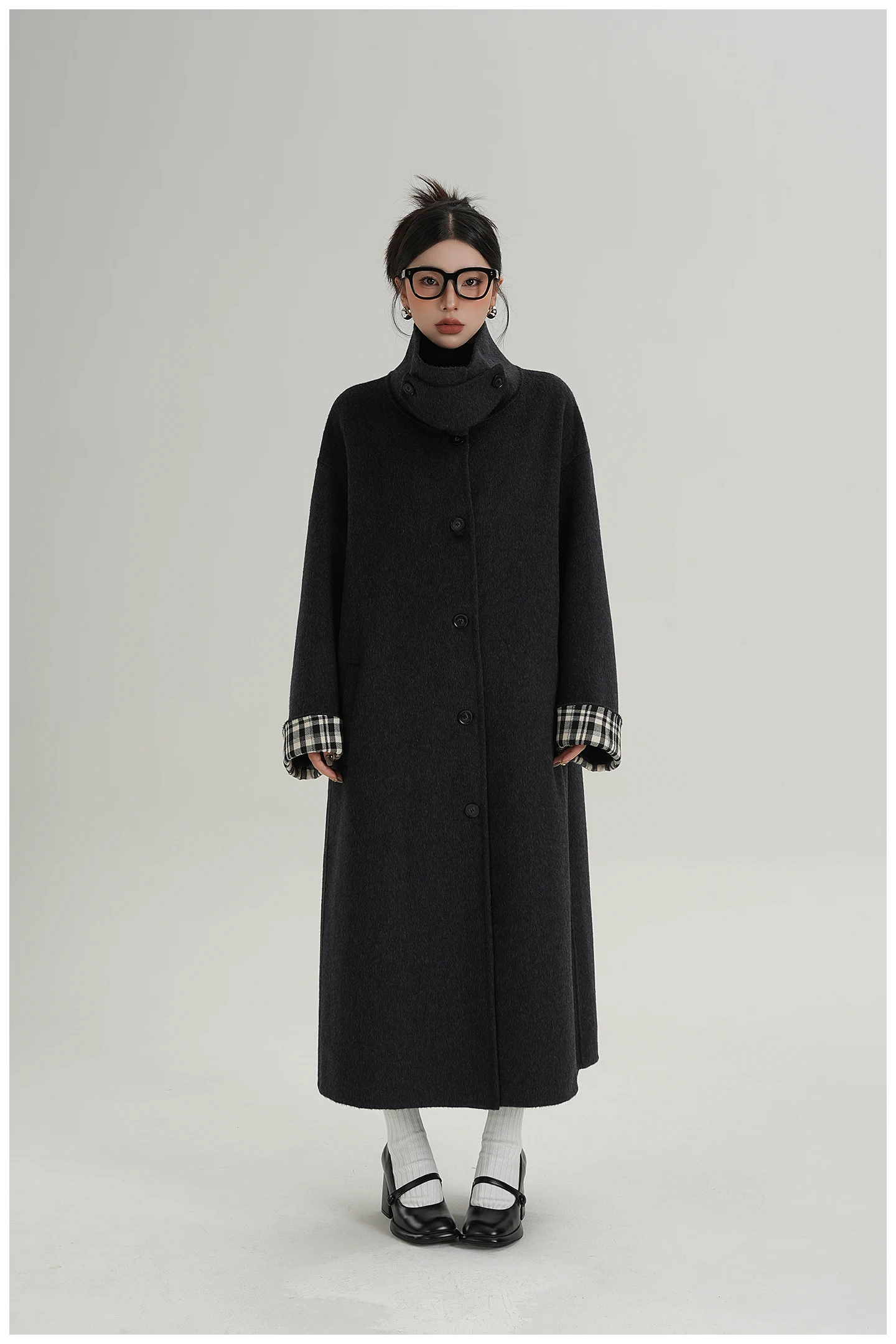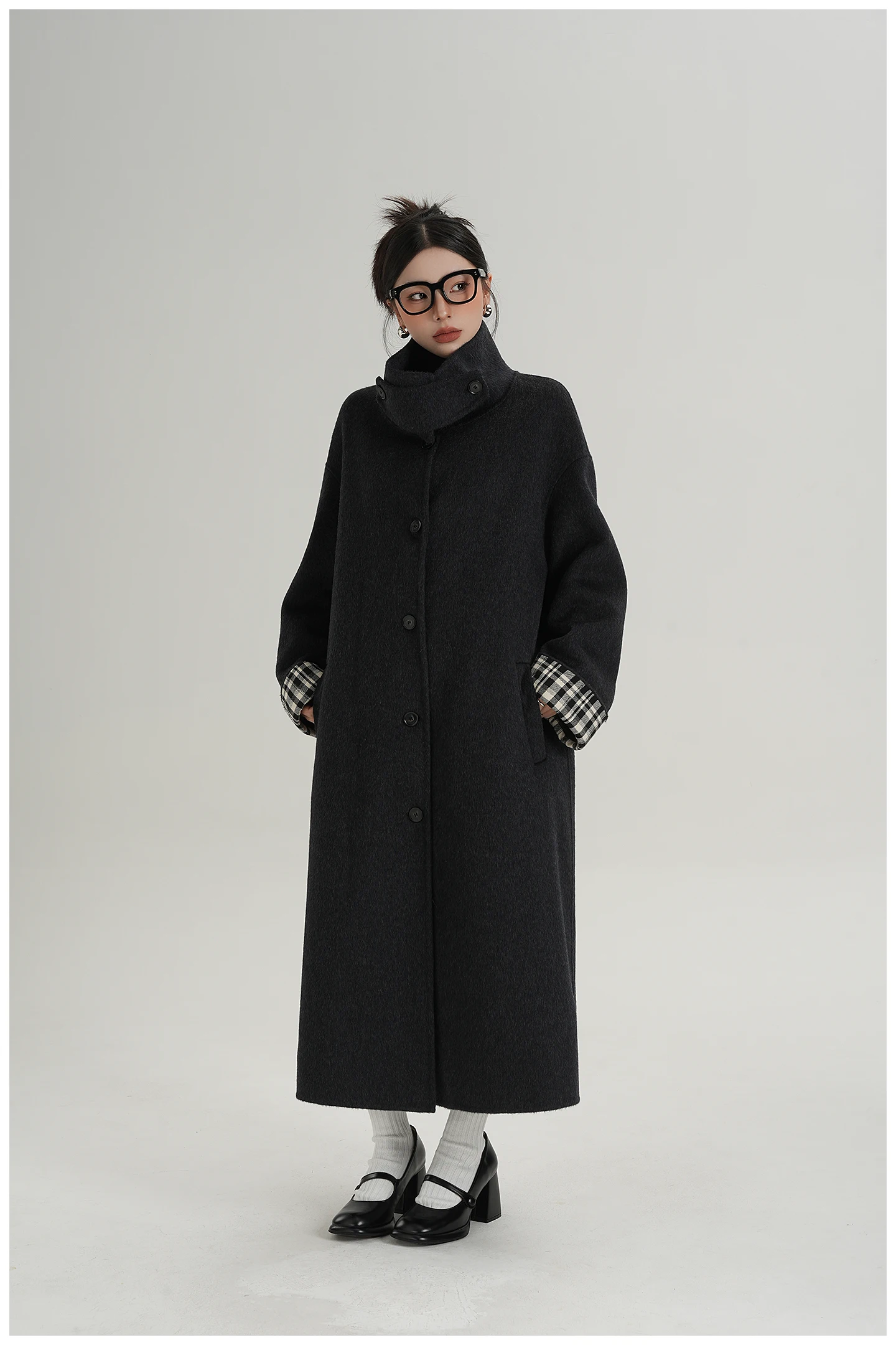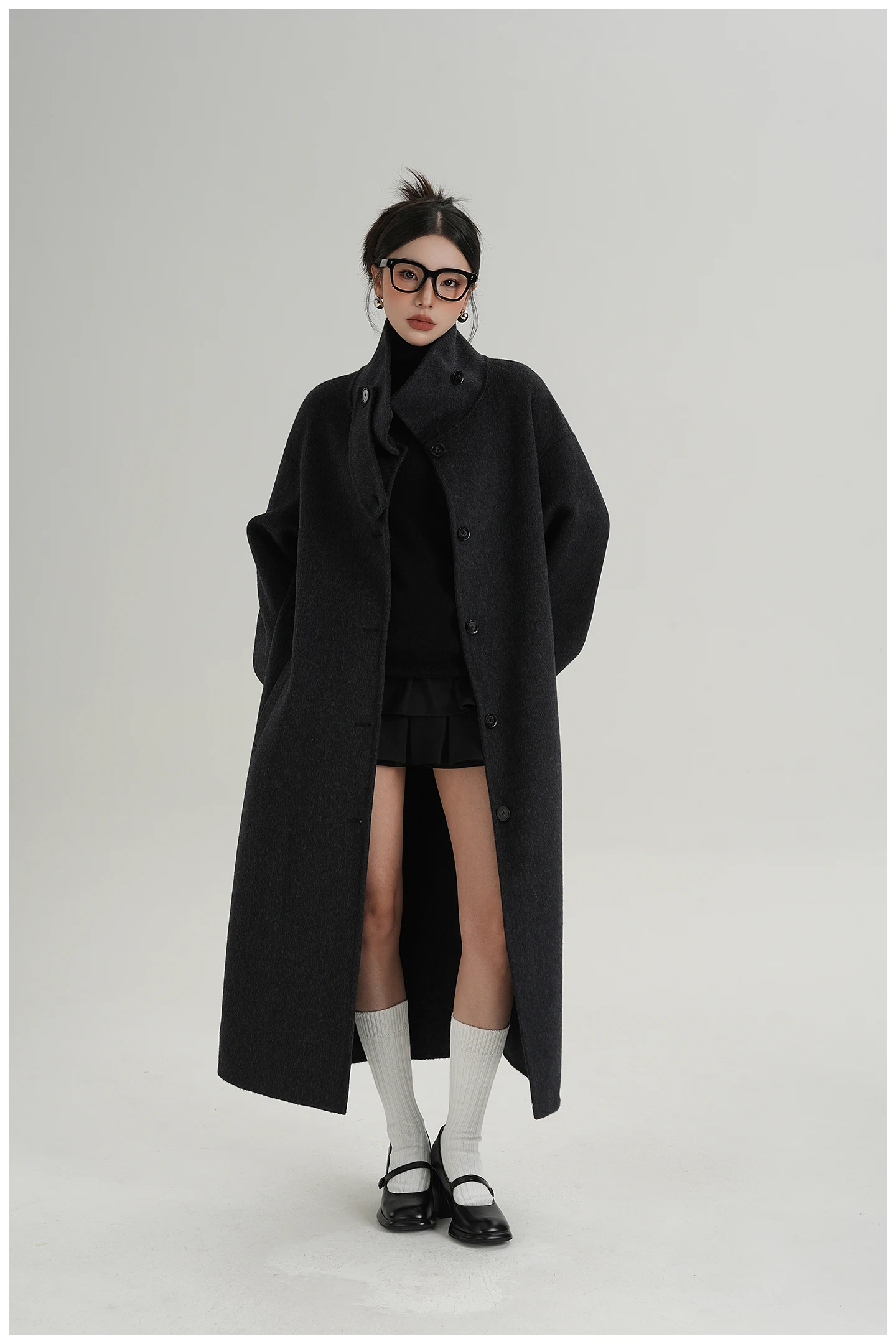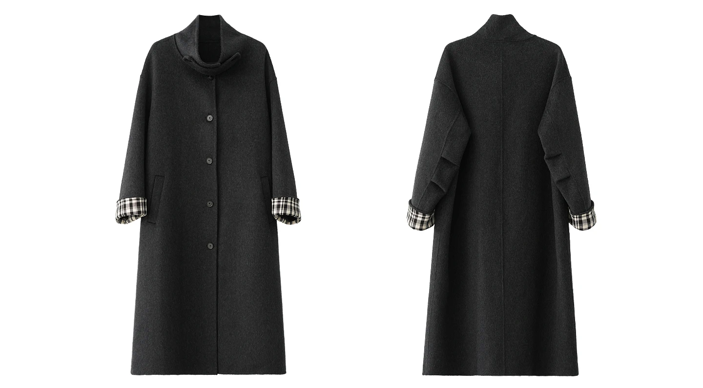 2025 Cappotto lungo da donna elegante natura 100% lana Cappotto invernale in cashmere a maniche lunghe nero Cappotto casual monopetto in lana da donna