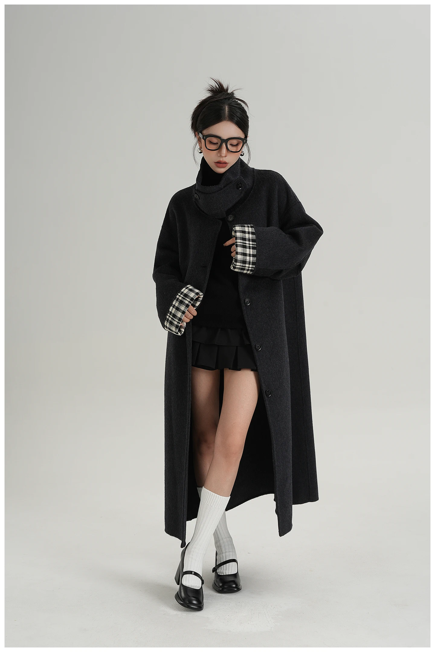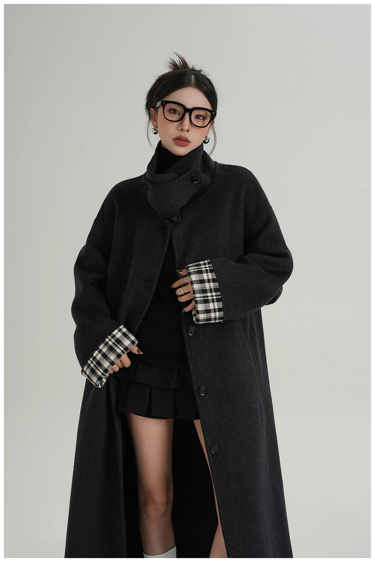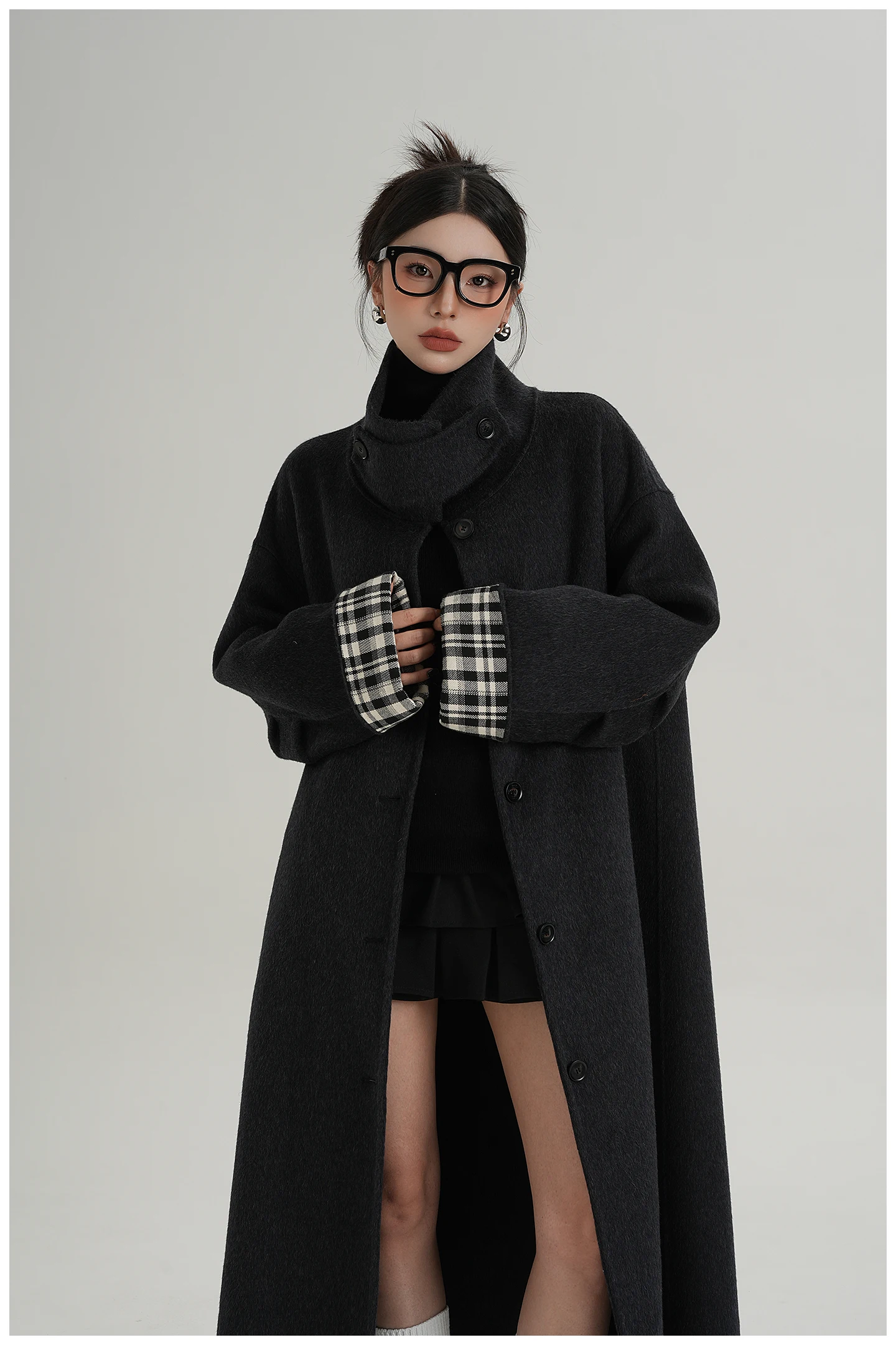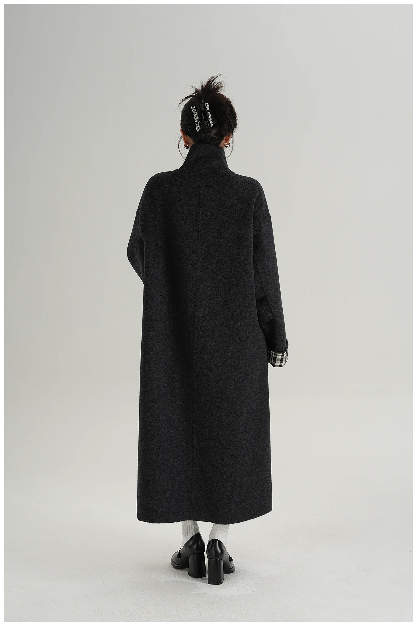 2025 Cappotto lungo da donna elegante natura 100% lana Cappotto invernale in cashmere a maniche lunghe nero Cappotto casual monopetto in lana da donna