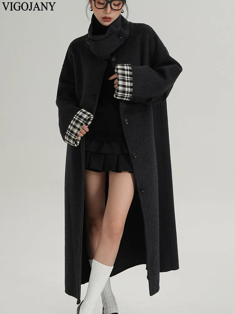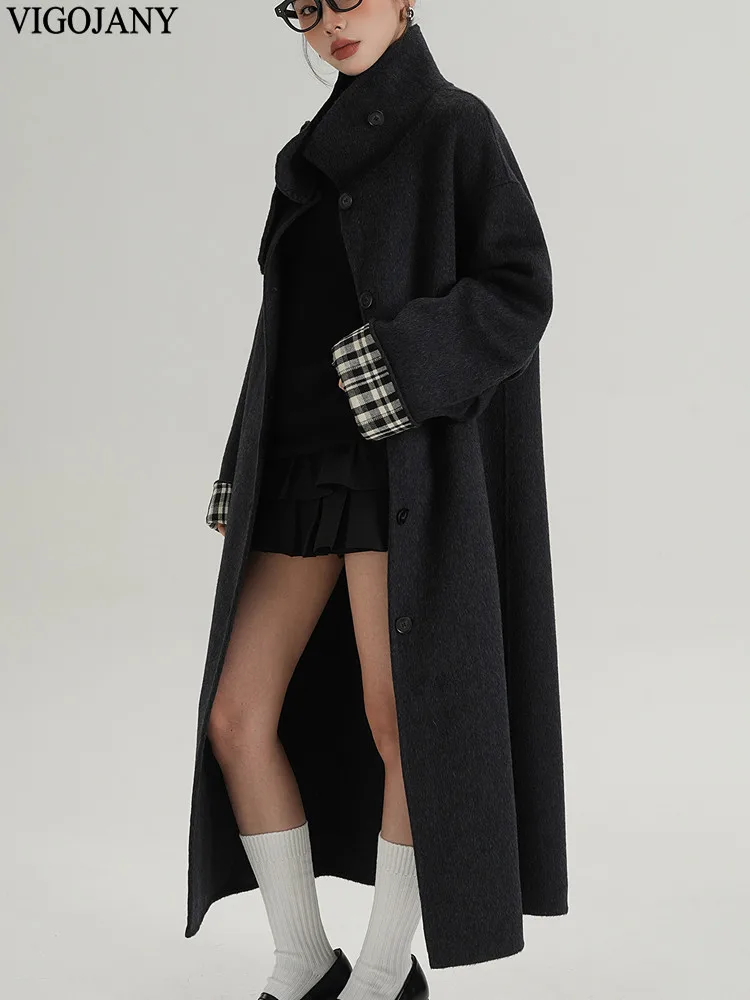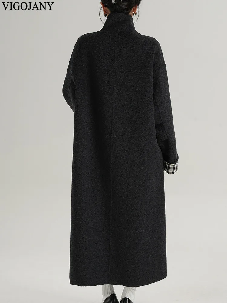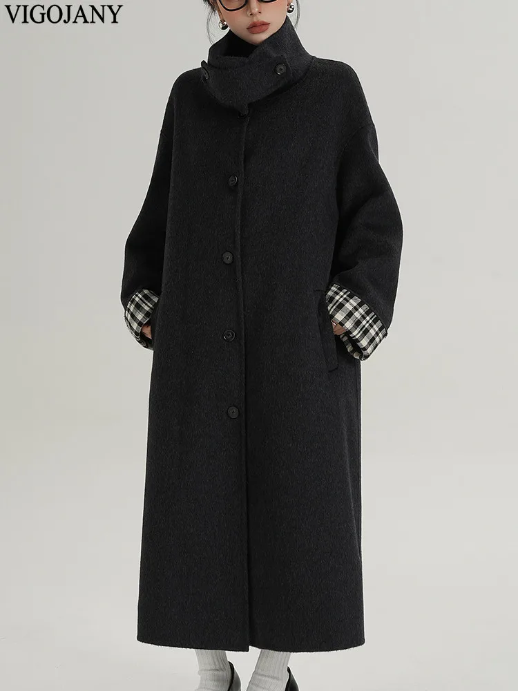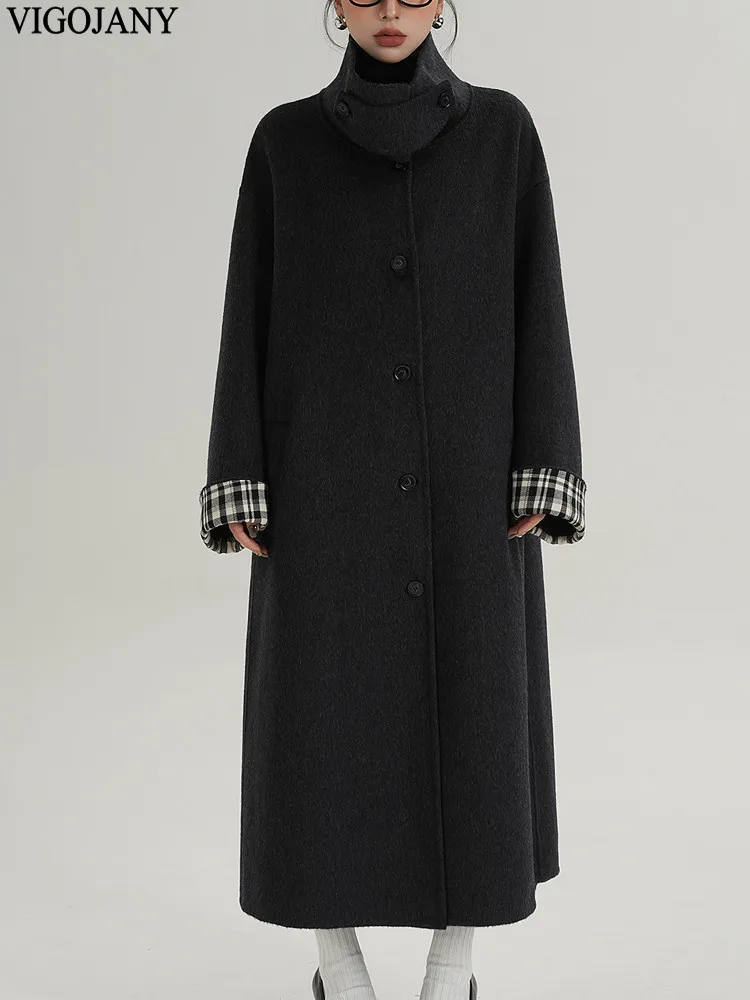 2025 Cappotto lungo da donna elegante natura 100% lana Cappotto invernale in cashmere a maniche lunghe nero Cappotto casual monopetto in lana da donna